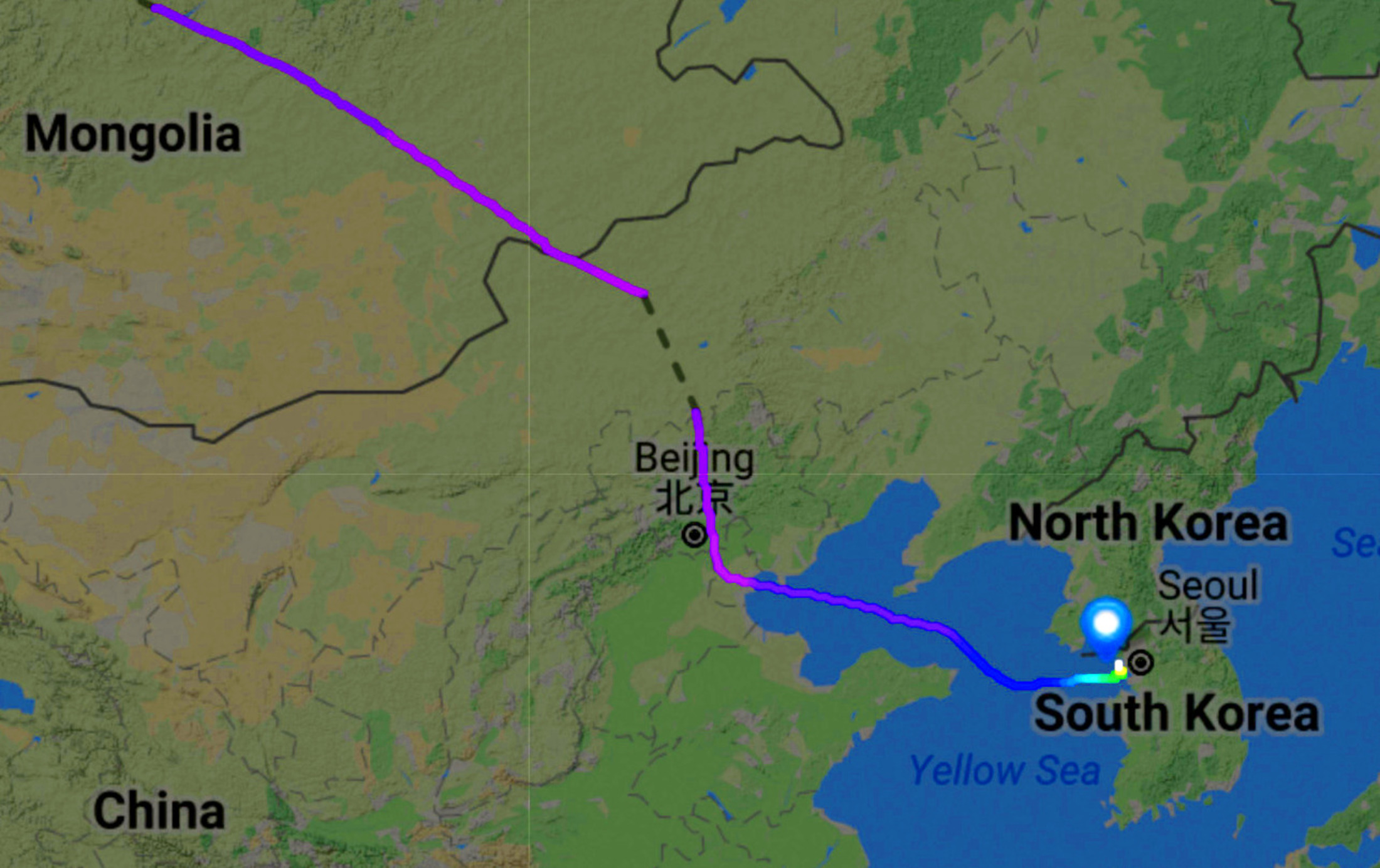The flight was uneventful, when we finally got going. I was interested to see though what kind of detour the route to Seoul makes. Stay far clear from North Korea, or Chinese military exclusion zones?