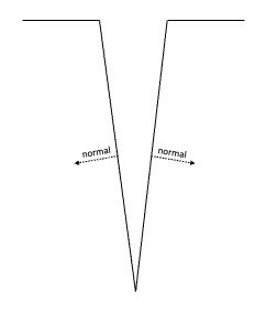 A straightforward extrusion hits multiple issues. First and most serious, in places where the form of the cave is very near the backside of a face -- as in the tip of a stalactite -- the extrusion will actually come out of the other face and show up as an error in the inside surface of the cave. Even if we never wanted to change anything in the inside.