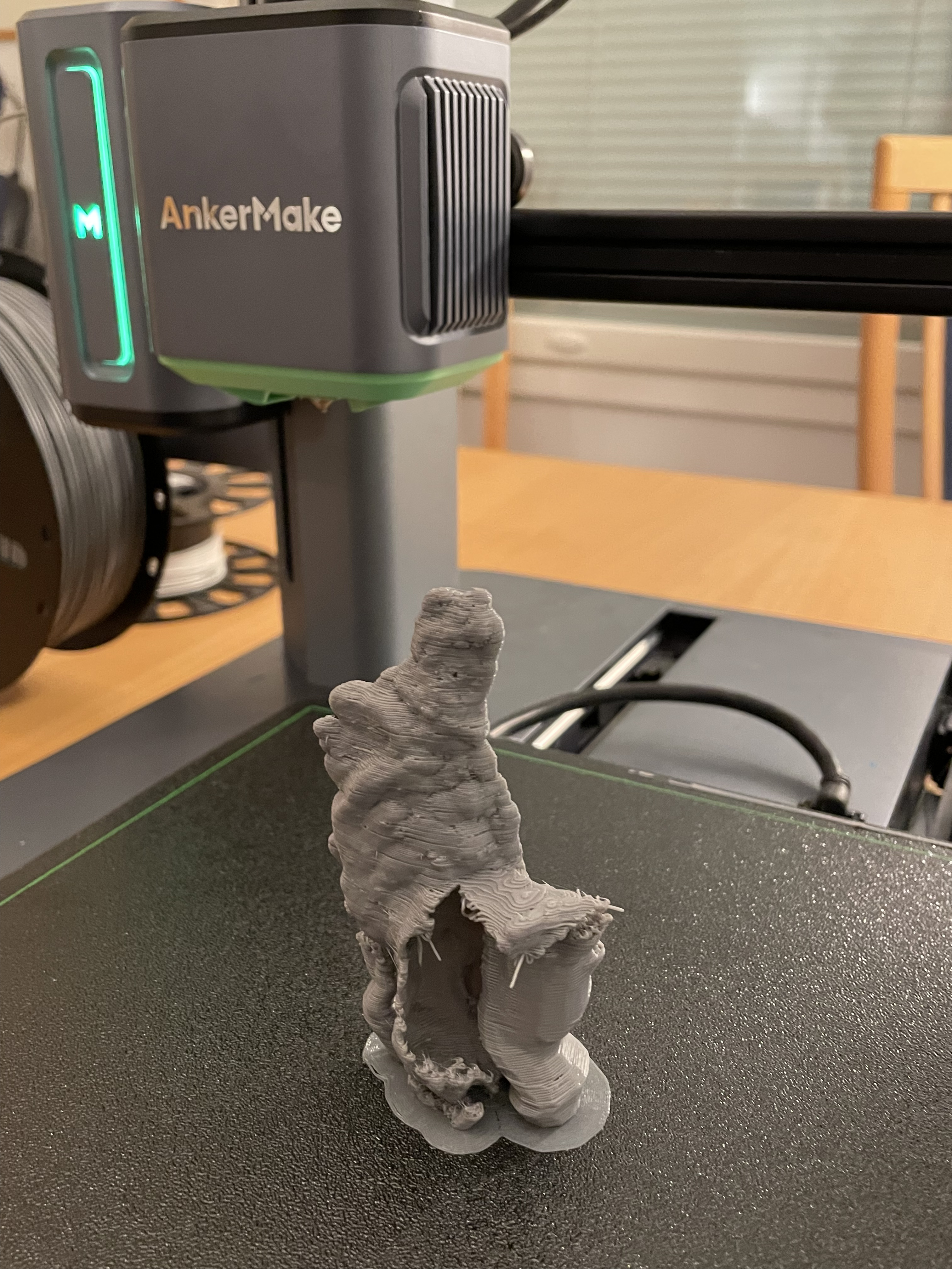 I visited Tero yesterday and we got into trying to use his 3D printer to print 3D cave models. Tero has a lot of experience with modeling and printing, but there was one difference to what he's usually printed: the models.
