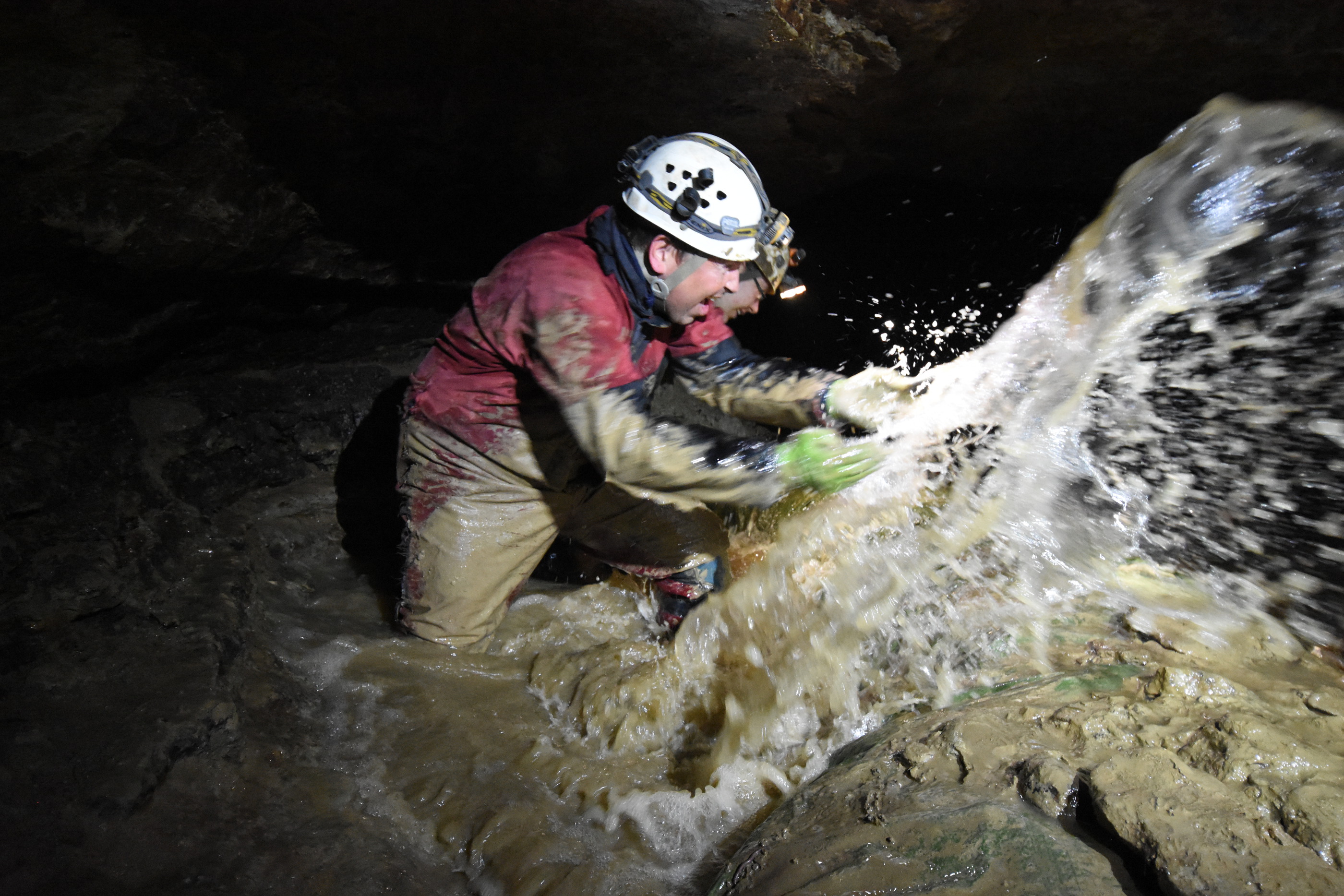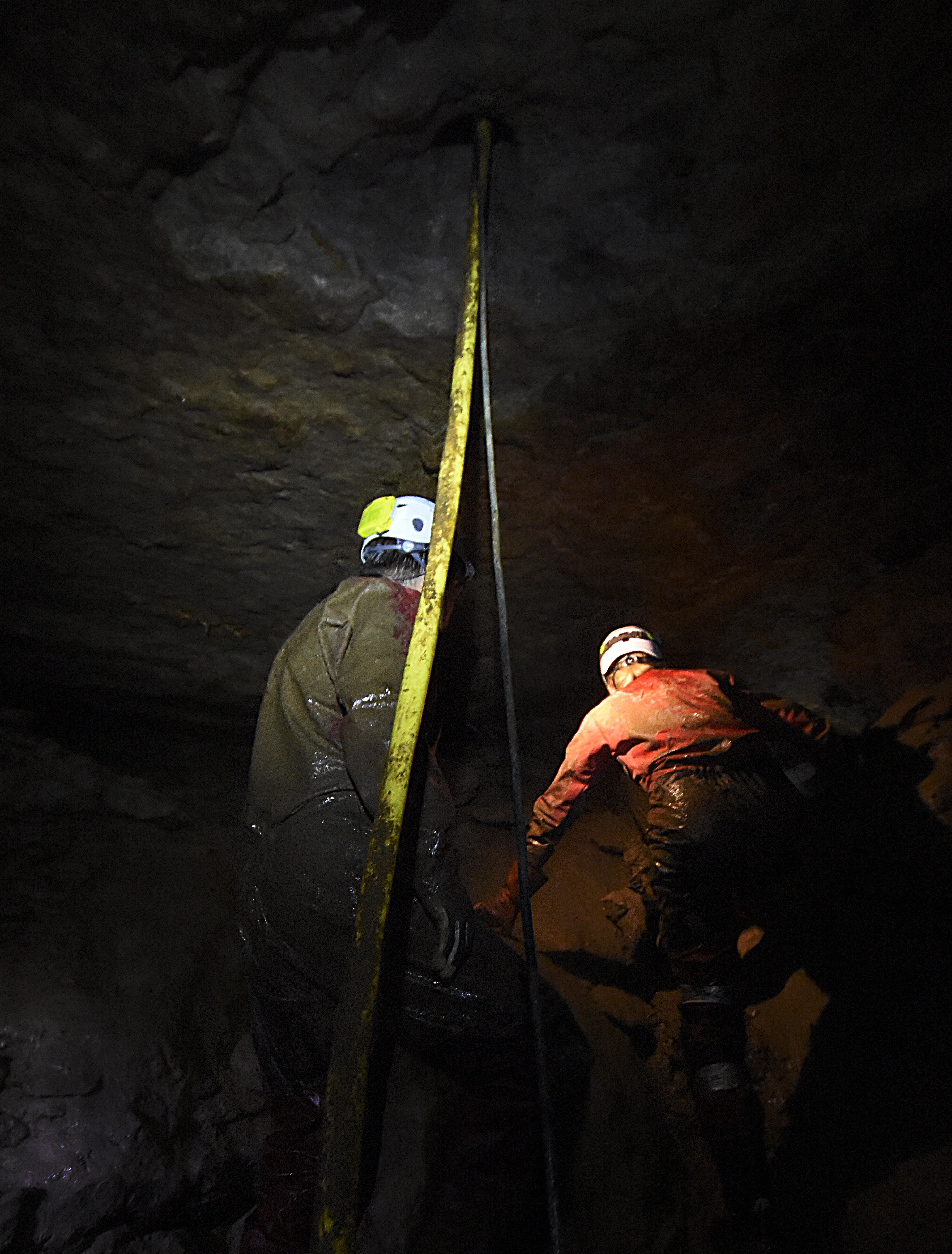 Research continues to find new cave parts. A small dam has been built to block water from going into the Rabbishålet, a low and muddy crawl to some recently found new parts of the cave. On the day that we went past Rabbishålet, the water inside the dam had not yet been pumped out, though Ralf and Tor attempted to empty the pool on their bare hands, not making much progress.