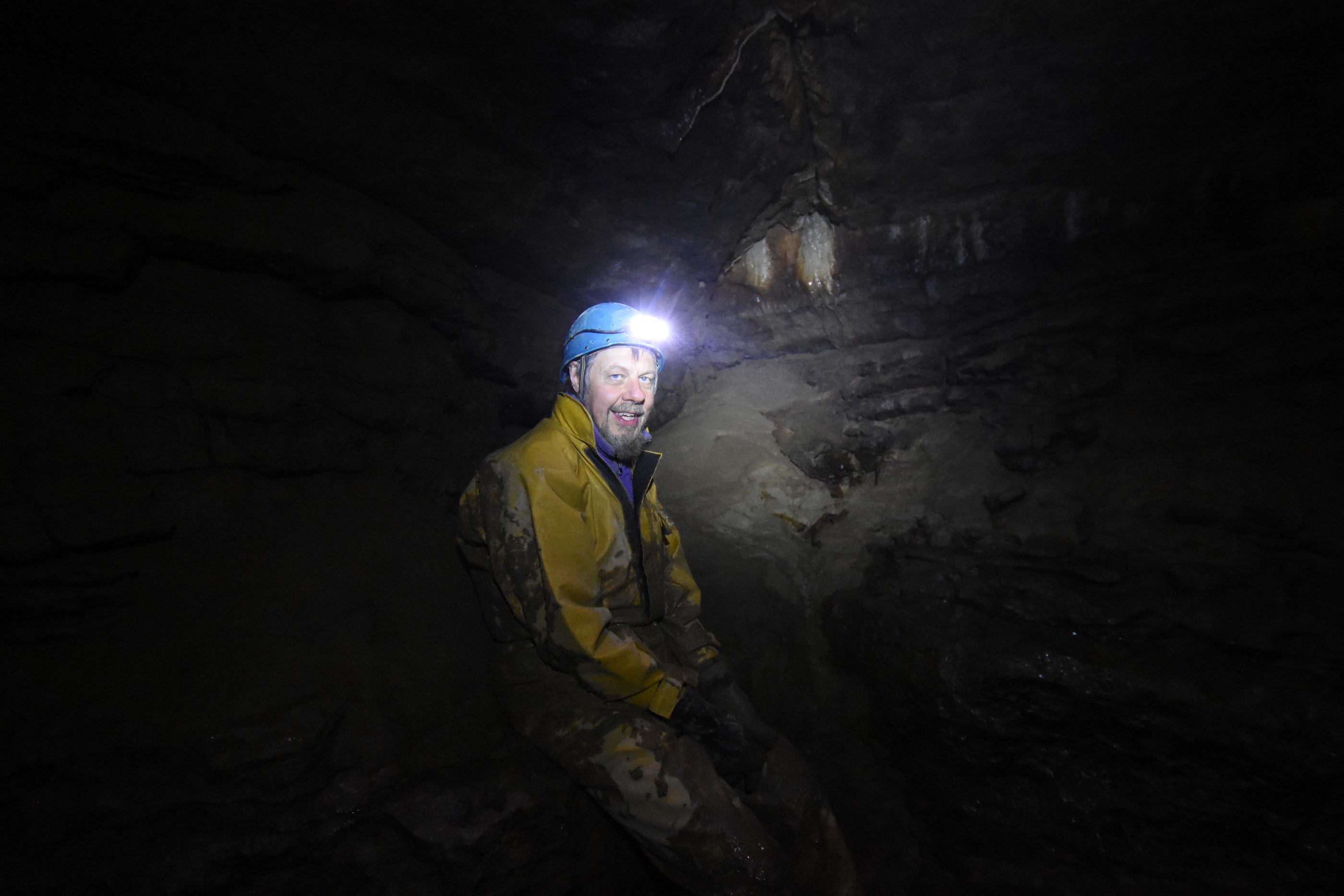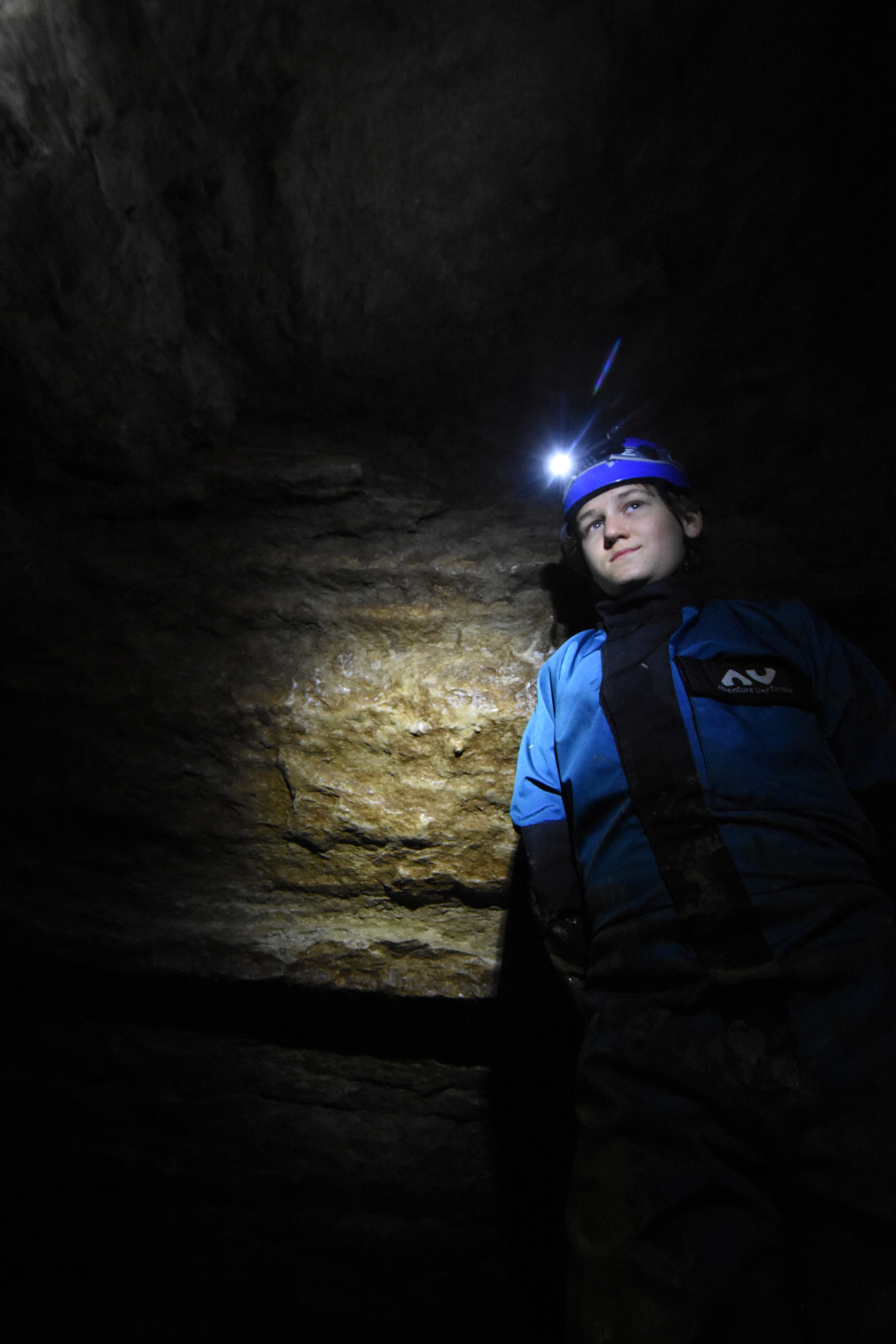 There is also dry caving on the wet side, here we are in the chamber next to Sälpromenaden: