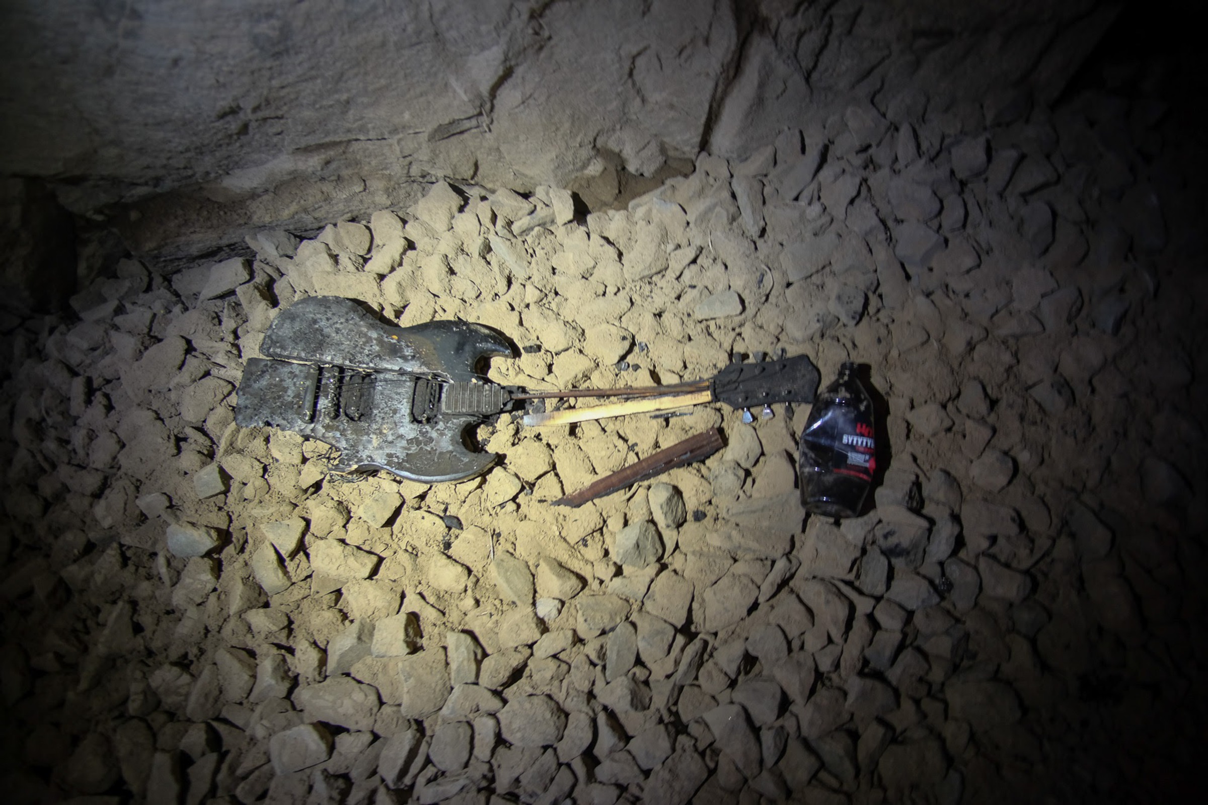 The usual city termites have been around the tunnel as well, spreading trash and burning their guitars (!) although luckily they seem to have left the darkest middle places of the tunnel alone. And who burns guitars?!? We found two burned guitars in the tunnel.