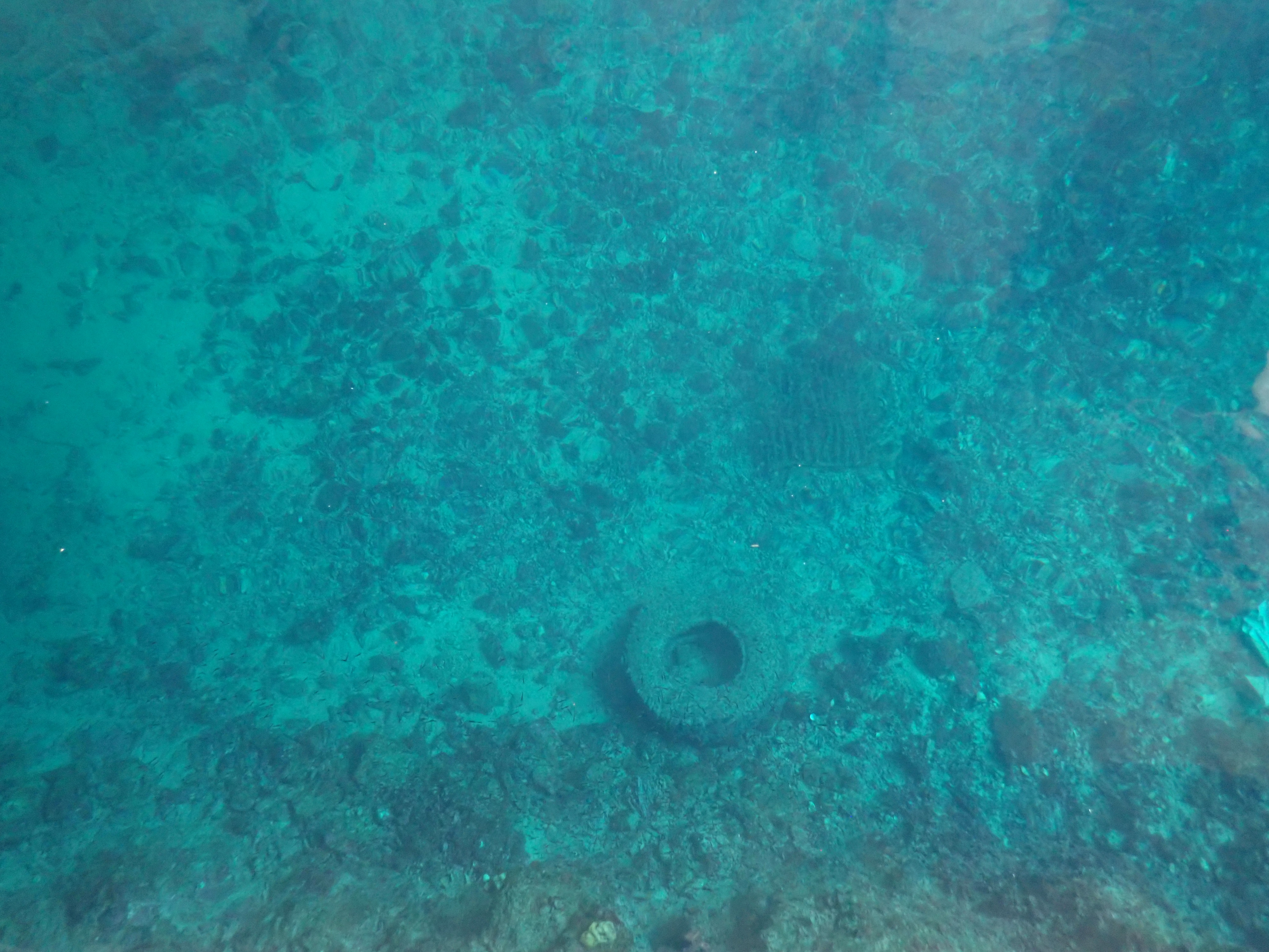An interesting place, of course. A number of side tunnels, connecting an underground hangar carved into the mountain that would protect any maintenance that you needed to do on the subs. Darkness. But very clear water, even if one could see some submarine and docking junk at the bottom. Clear waters.. probably 10 meters or so deep, clear visibility to the bottom.