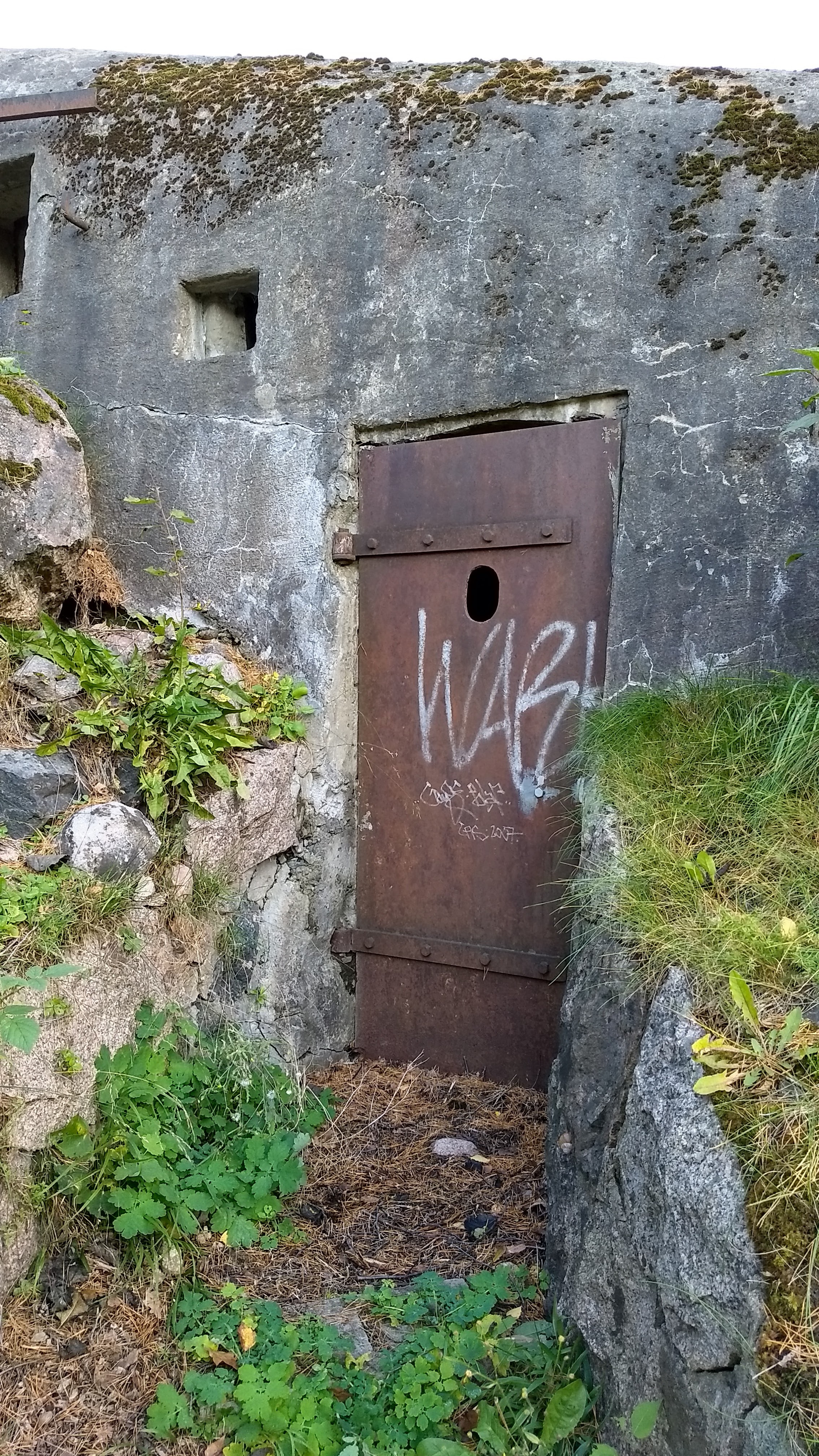 Västrä Arningefortet is maintained by the landowner, and in reasonable condition. But, unfortunately it also locked and impossible to enter. Sad. Östrä fortet was supposed to be a half-collapsed structure, but by now I was starting to run out of the 20 minutes I had for the stop in Arninge, and would soon have to get to the airport and start my conference calls. I kept crisscrossing the thick forest, but found nothing, except a trench. I must have been close, but the almost impenetrable forest perhaps kept me from finding the actual bunker.