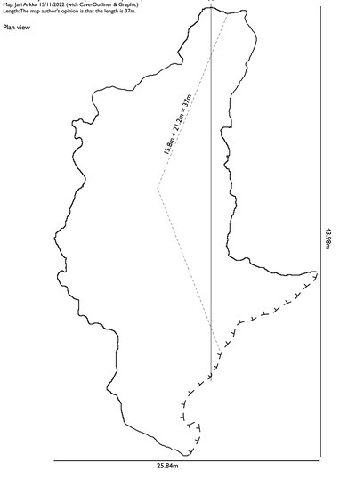 The basic idea is that one can scan a cave with the iPhone on site, which for small and moderately sized caves happens quickly. And then the resulting 3D model files can be exported to computer, and later processed by the Cave Outliner software to turn them into plan view maps and cross-section images, automatically. The software is not perfect, and neither are typically the scans, so typically some manual adjustments are necessary. However, what's nice about this approach is that it can very quickly produce very realistic shapes of the cave forms, including cross-sections from any number of points.