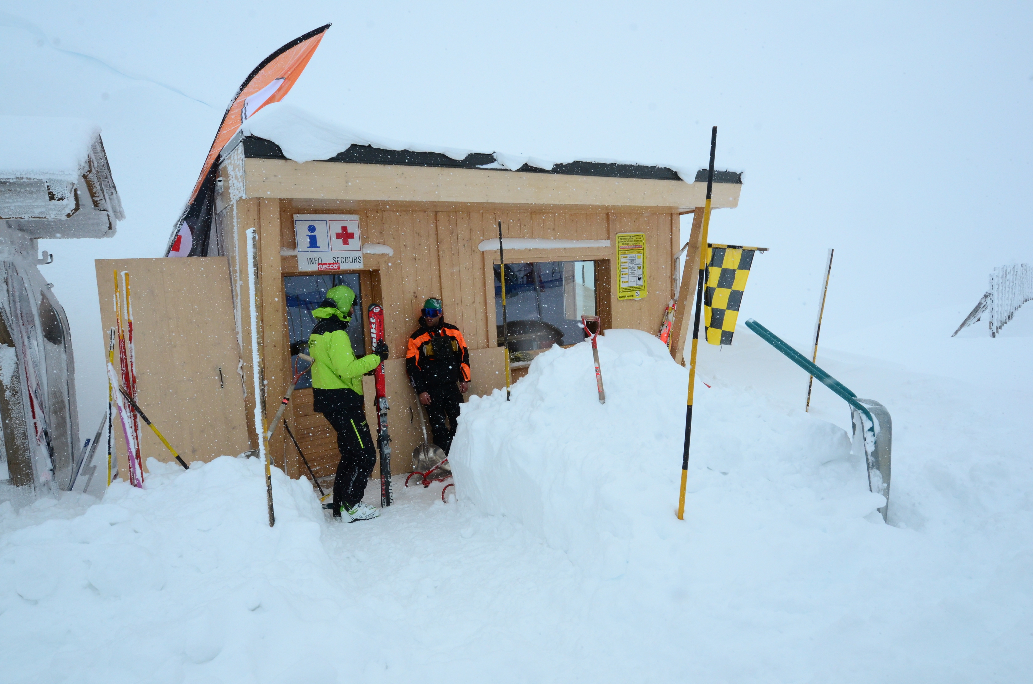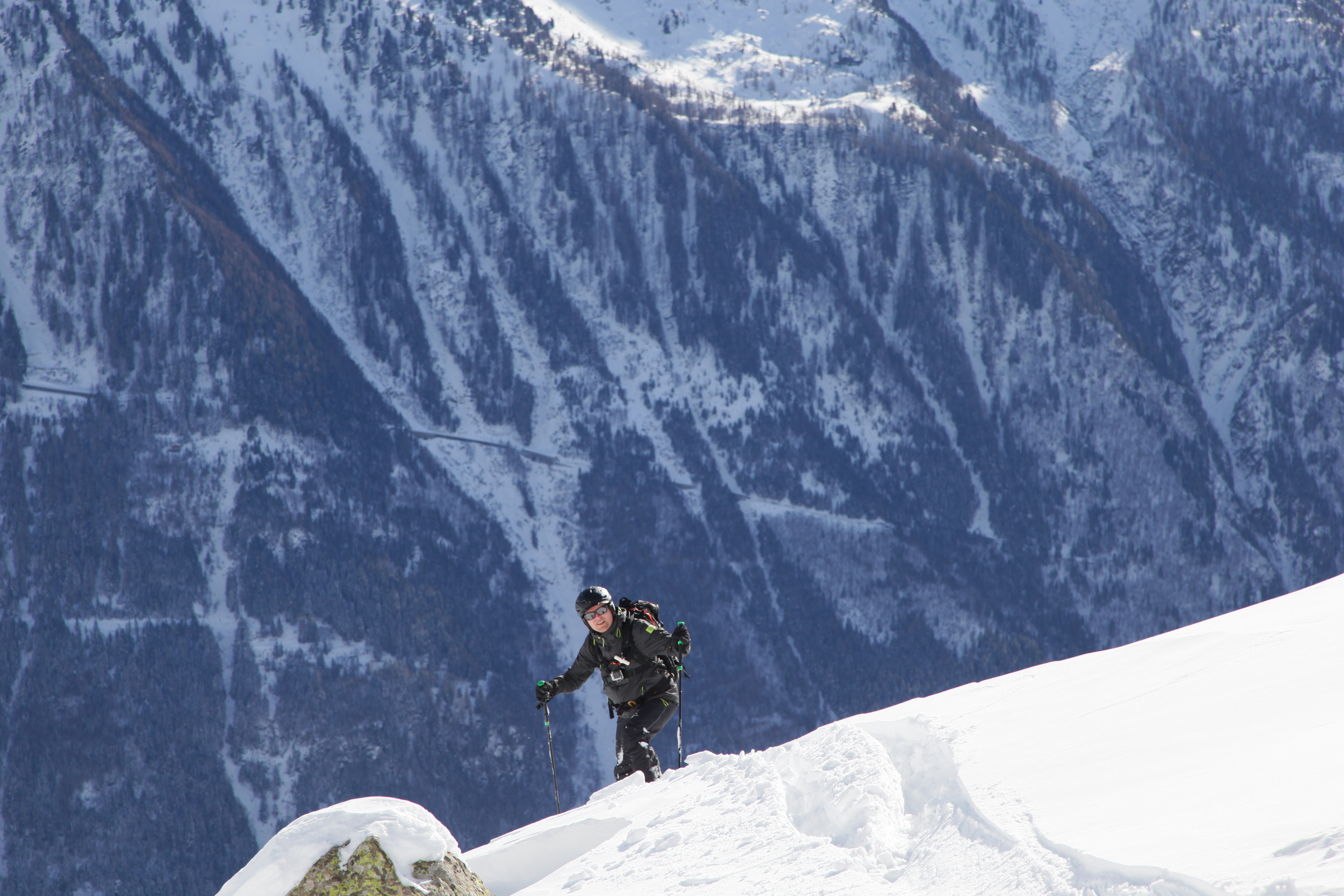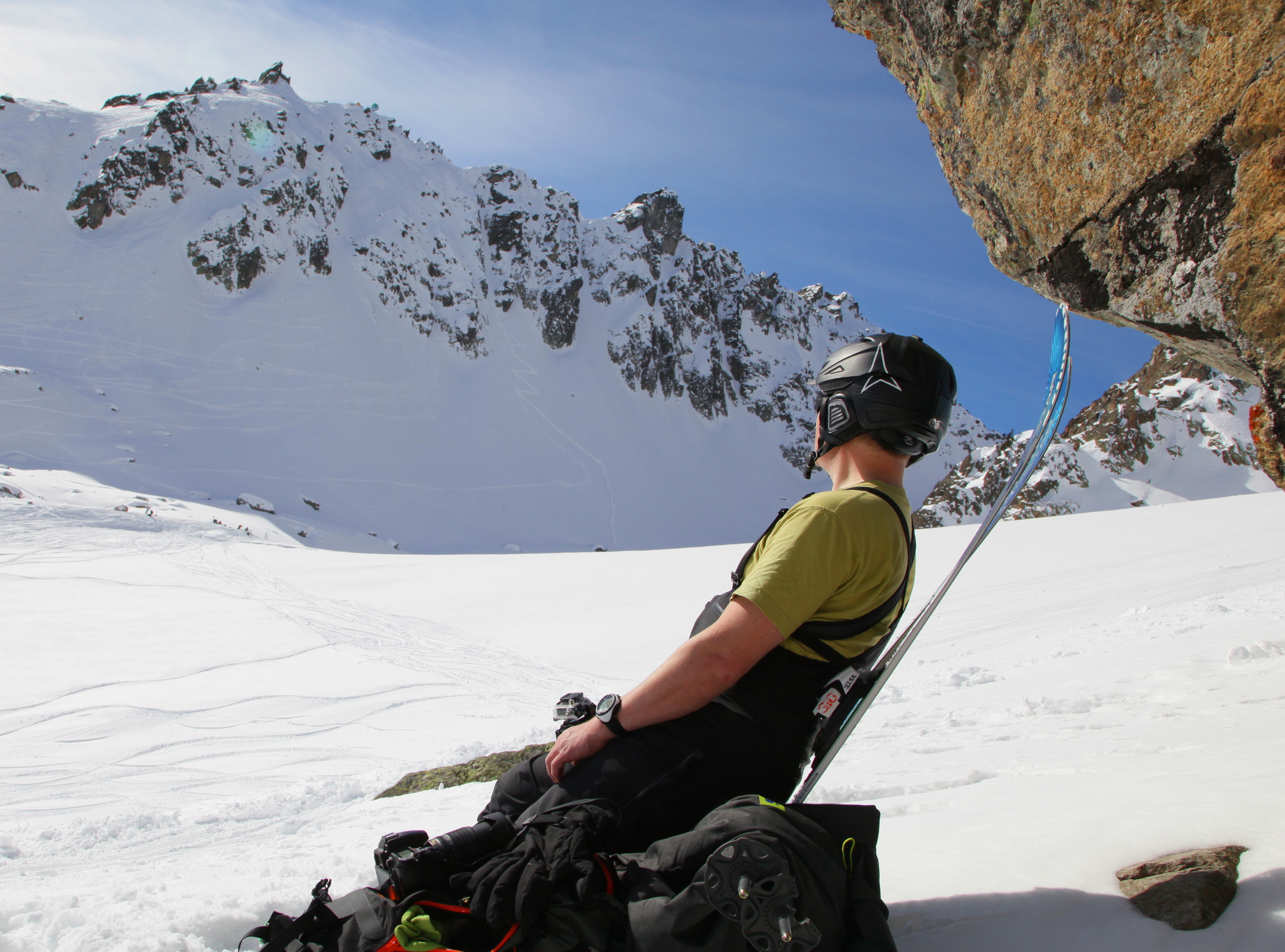I had an avalanche backpack, but I did not have time to do anything after seeing the avalanche, other than to instinctively ski a bit towards the side of the couloir. Our guide saw the avalanche a little bit before us, and was not hit by the avalanche at all. I was just four meters after him, but was almost completely covered, apparently only moved a bit by the avalanche. Jarmo was behind me and under the fuller force of the avalanche.