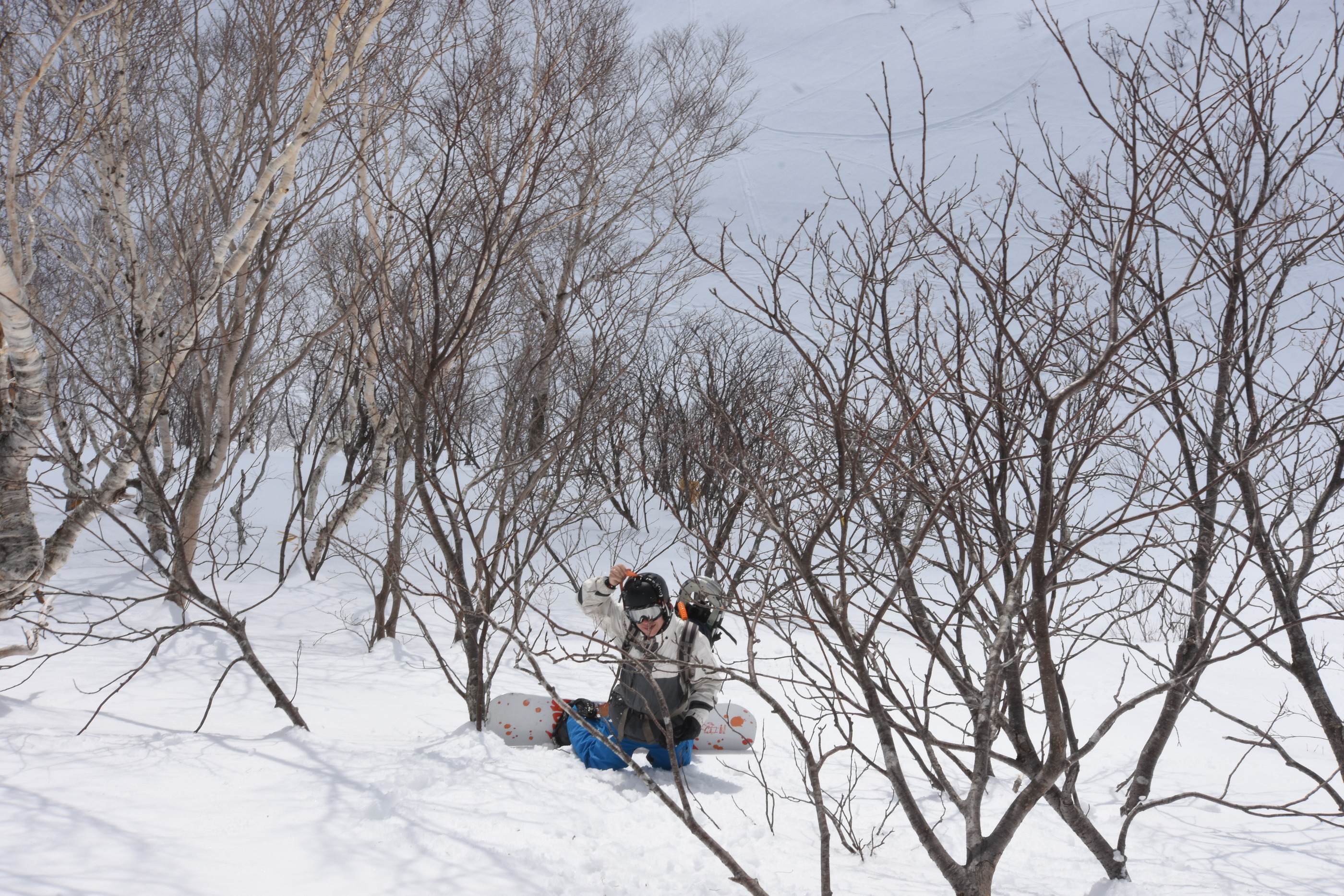 Skiing down from the ridge between the Onsen and the ski area, we encountered some bushes: