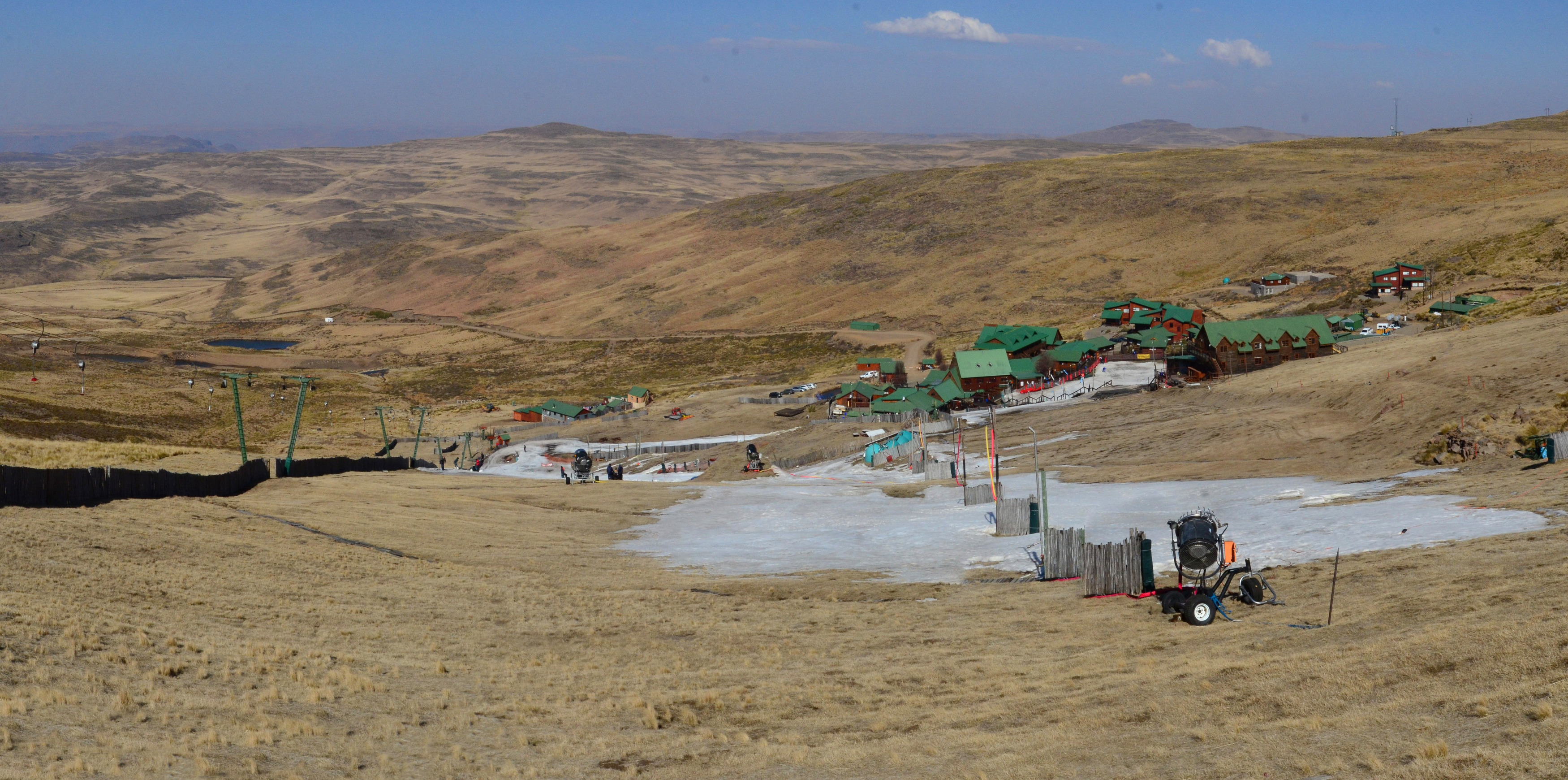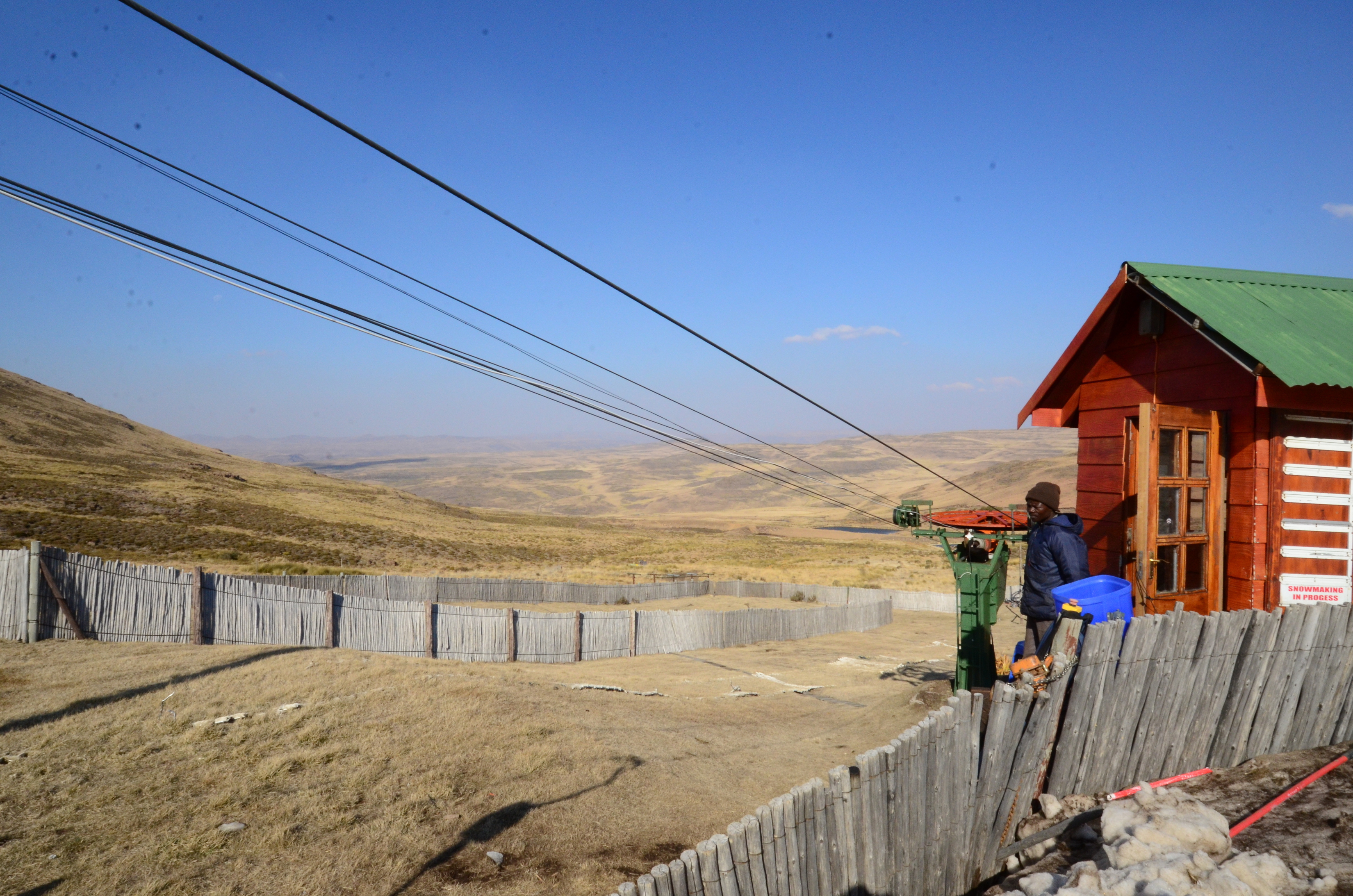 Grass. Sun. Lonely wilderness. 4x4 transport. You would expect to find those in Africa. And I did. But I also found mountains, a ski area, olympic athletes, and snow. And the highest bar in South Africa. I'm in Tiffindell, South Africa's only ski area that re-opened this year, after being closed for a couple of years.