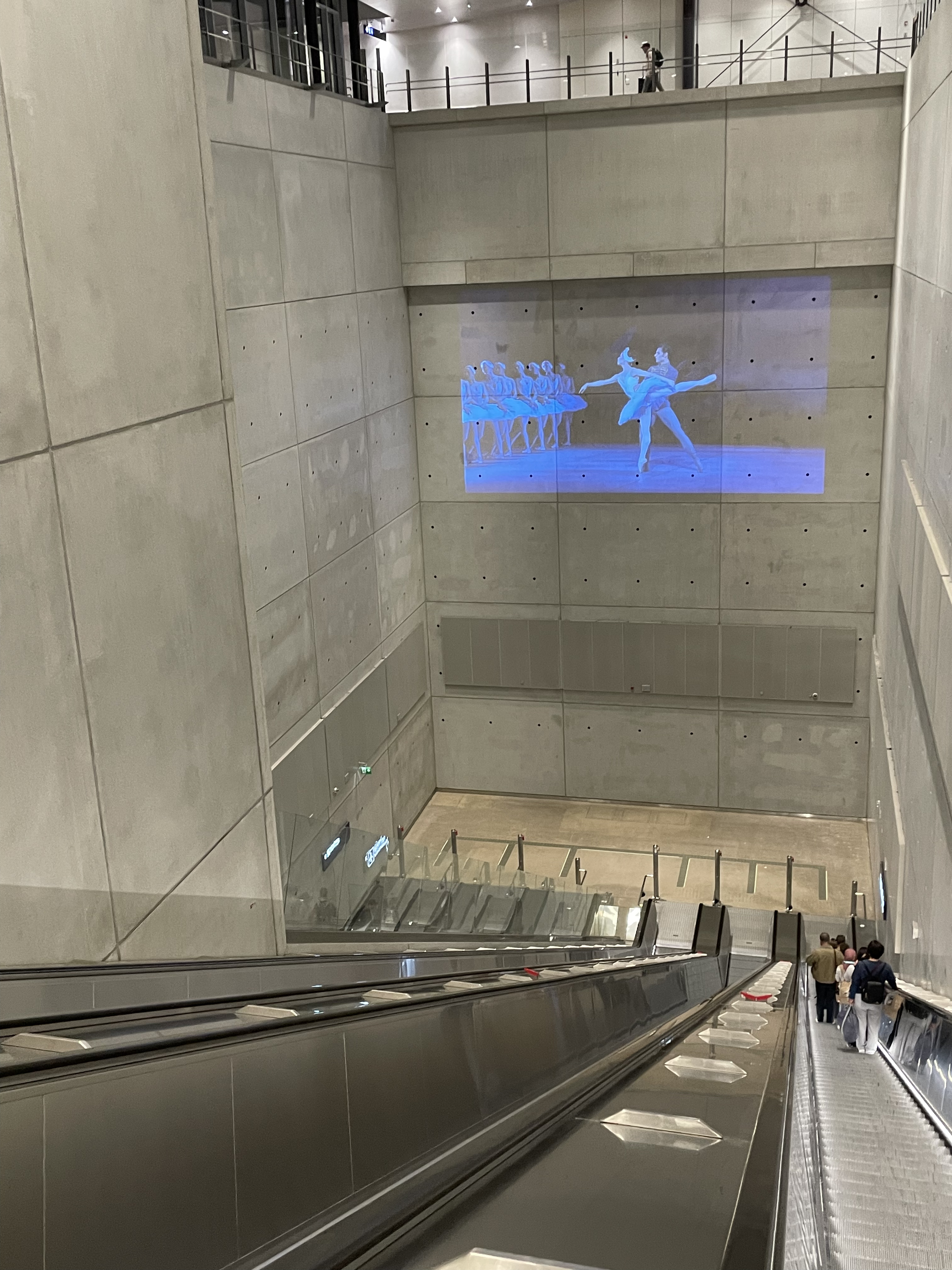 I was traveling home from the Helsinki-Vantaa airport, by train. And it was such a wonderful experience. First off, I made the exit from the plane to the train in fifteen minutes, and caught my other train by running with luggage. But, I also admired the smooth concrete in the new airport underground train station, along the ballet video they were display on it. Nice!