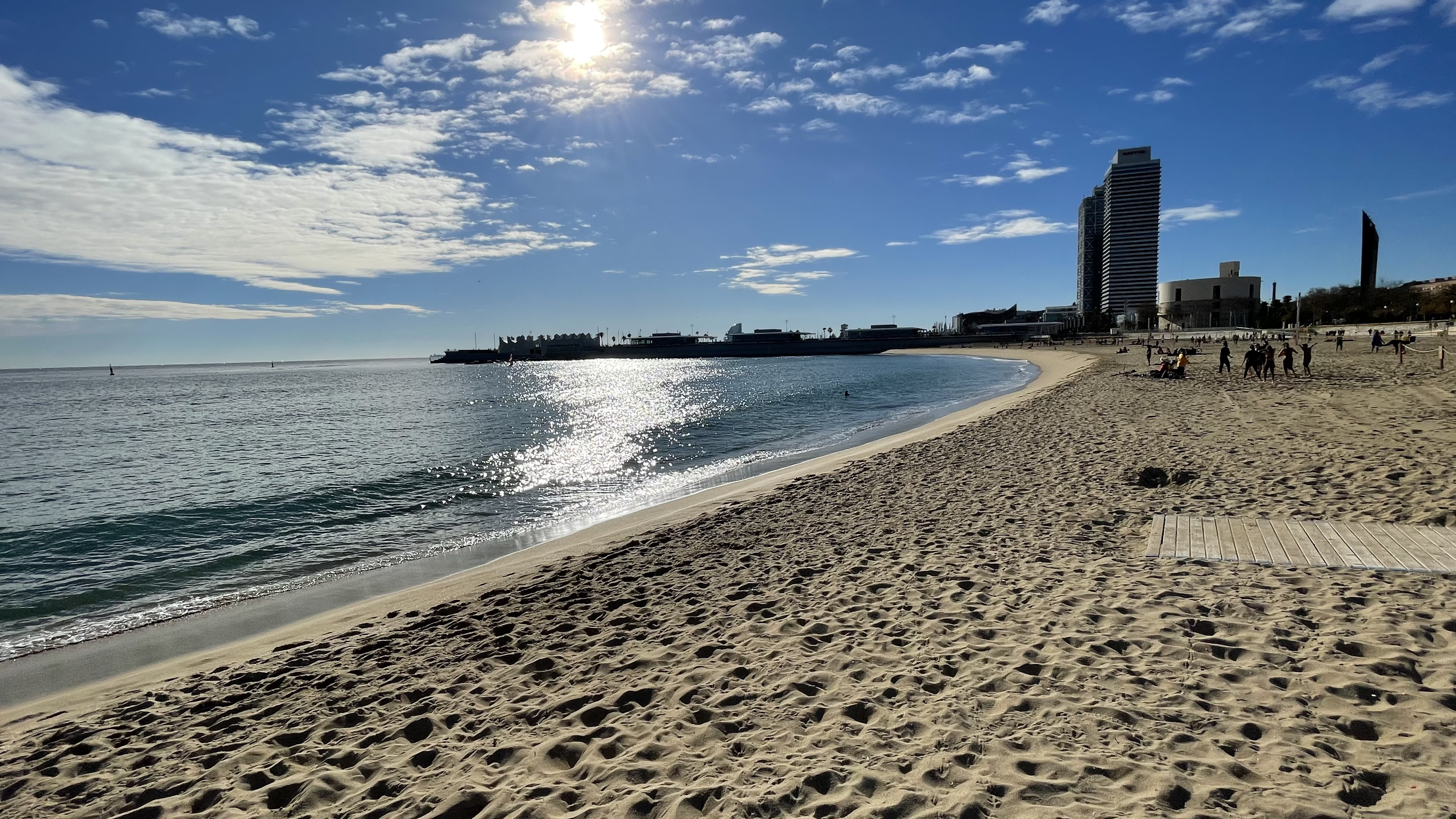 We were at the Nova Icaria Beach in Barcelona. The local name of the beach is Platja de la Nova Icària. More information from the beach can be found from the Barcelona tourism page or the Lonely Planet page.