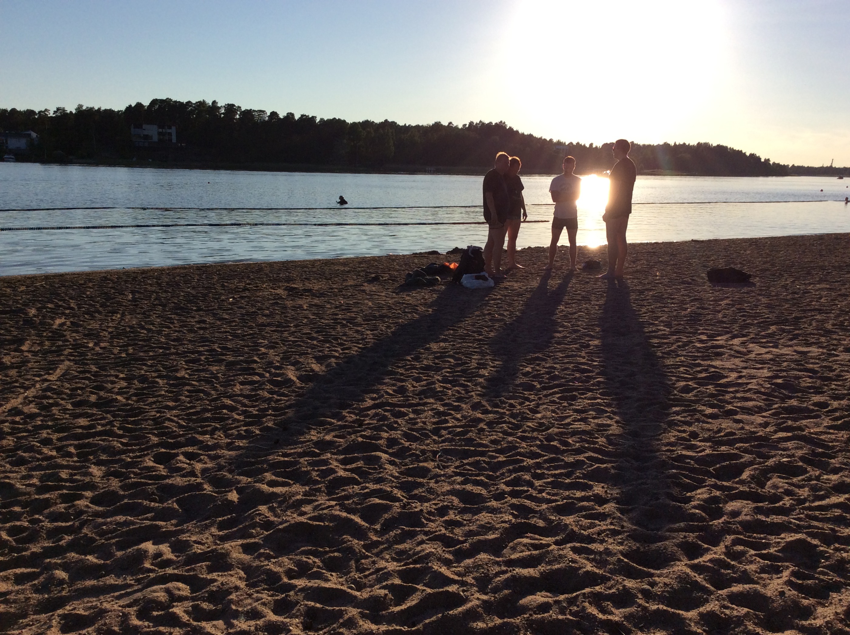 The 12-hour course day ended with a refreshing dip to the sea at the nearby Ispoinen sea beach. After caving and walking on a hot day, this much was much needed.