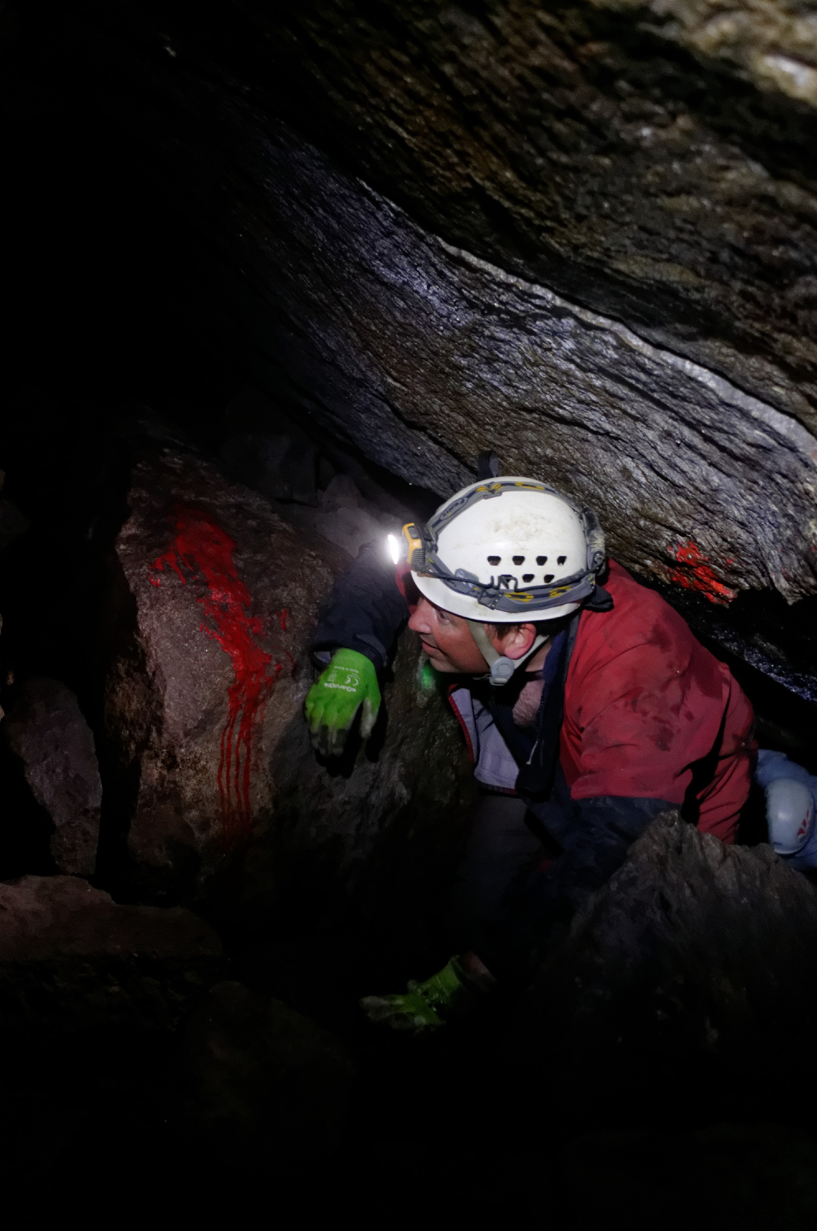 All the participants were eager to crawl even the tightest passages in the cave. In the right hand side of the cave there's a drop to a small lower room that I had not dare to go in on my earlier visits with just my son. But with this group we knew what we would find there.