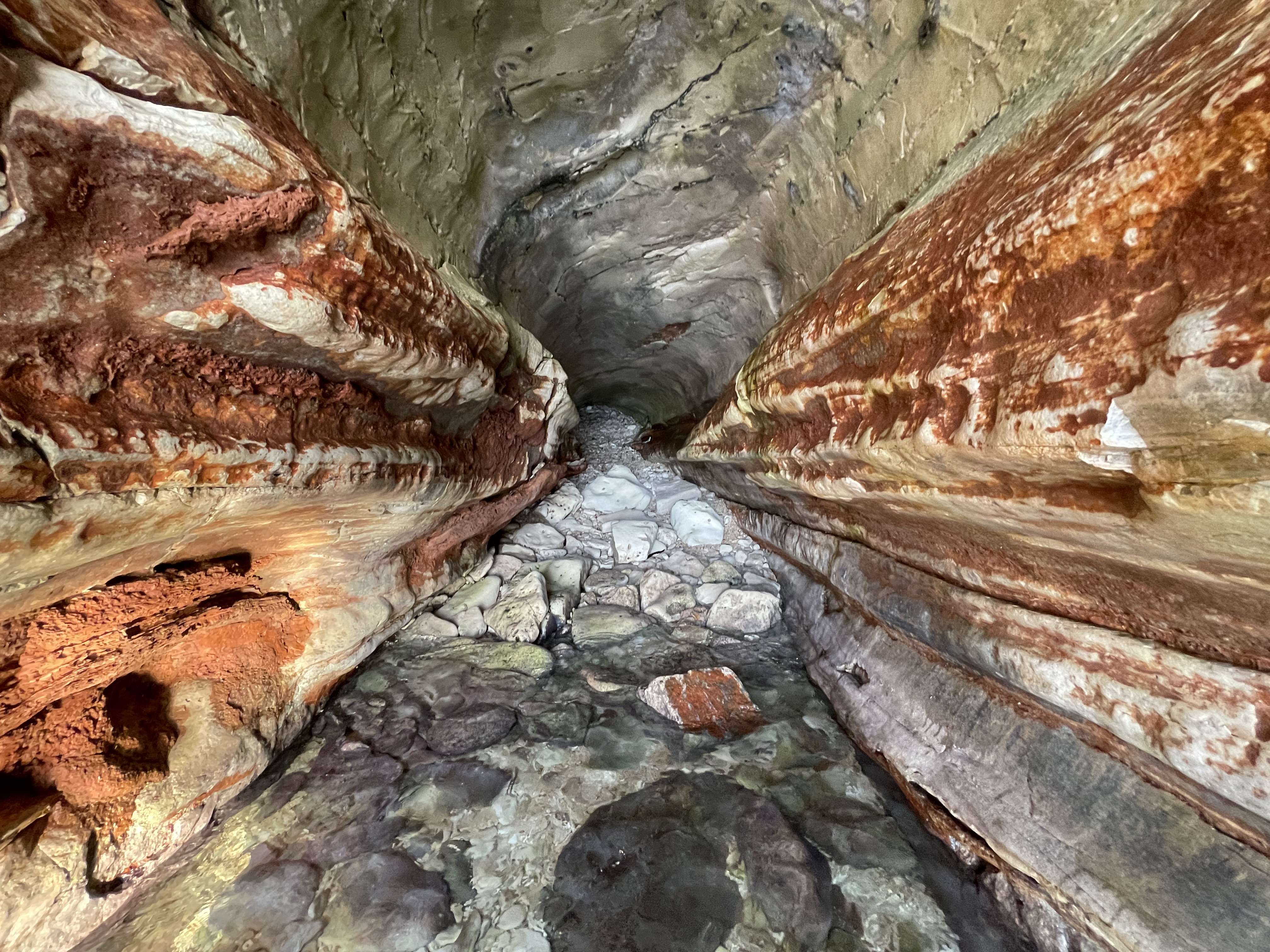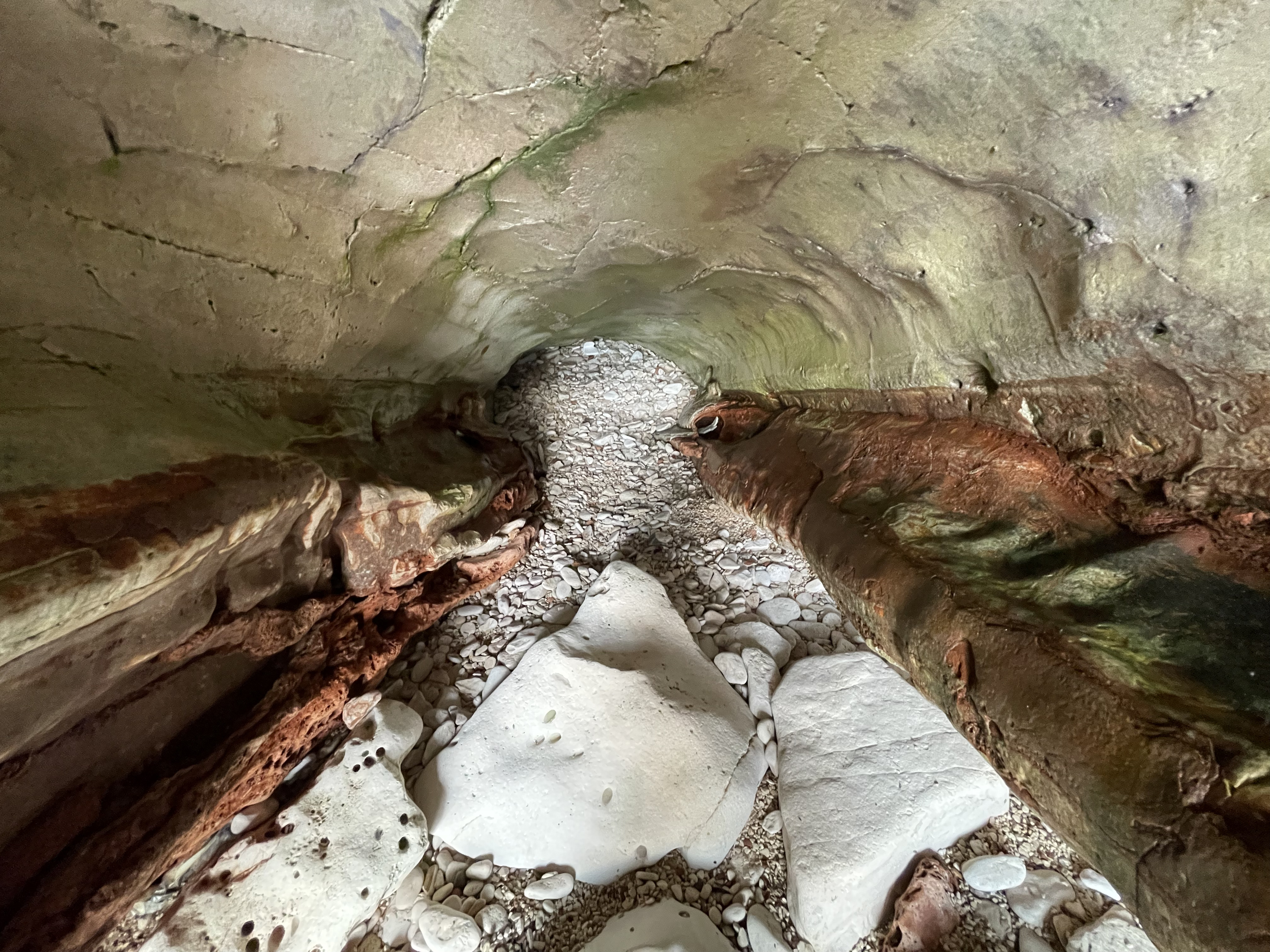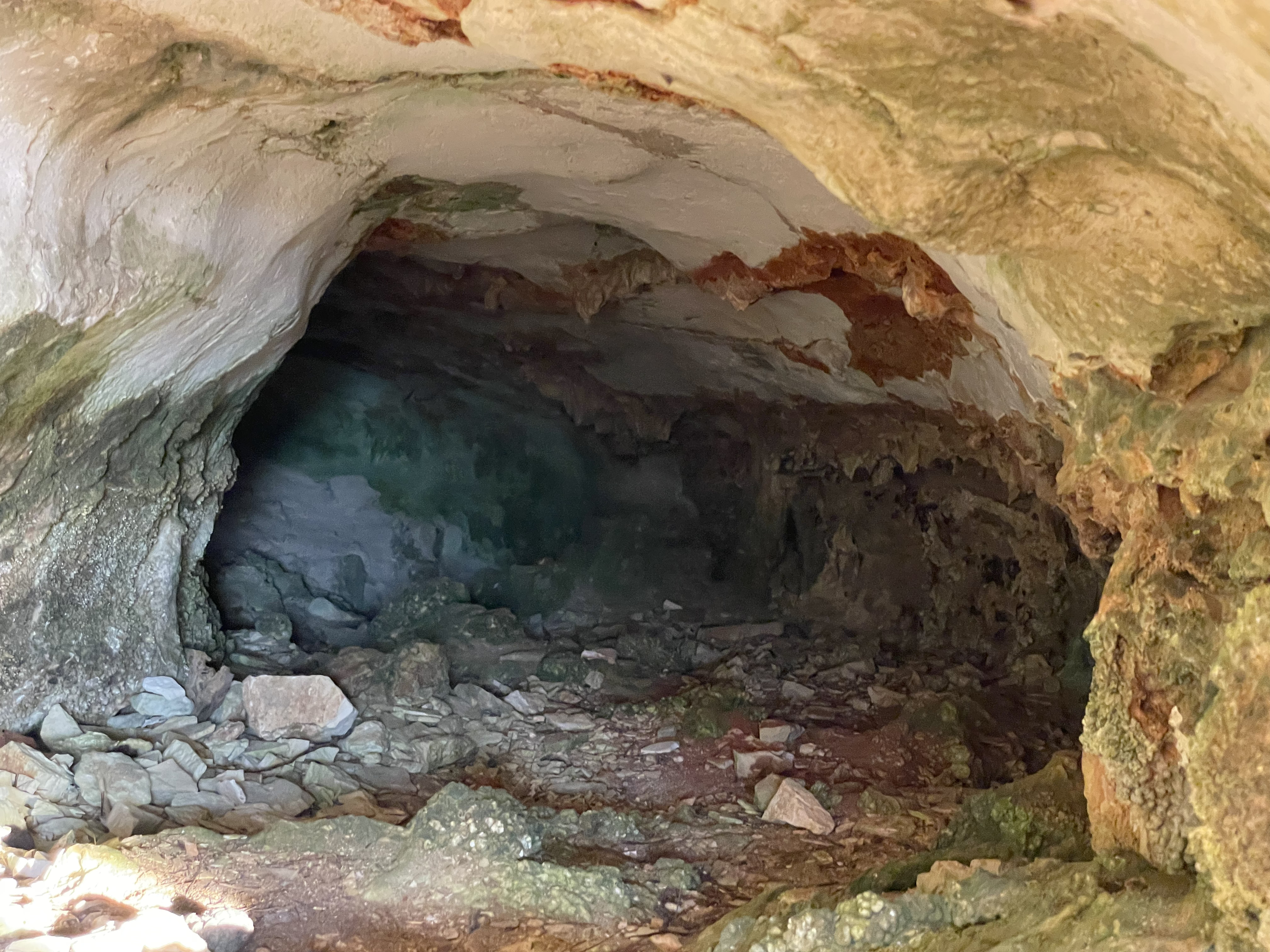 The main cave is approximately 11 meters long, but beautifully formed. I also recorded a 3D model of the cave, shown below. Load the model from this link in GLB format. Or rotate it on your browser's screen with this link. There's also a map, picture below but the high-res version is here.