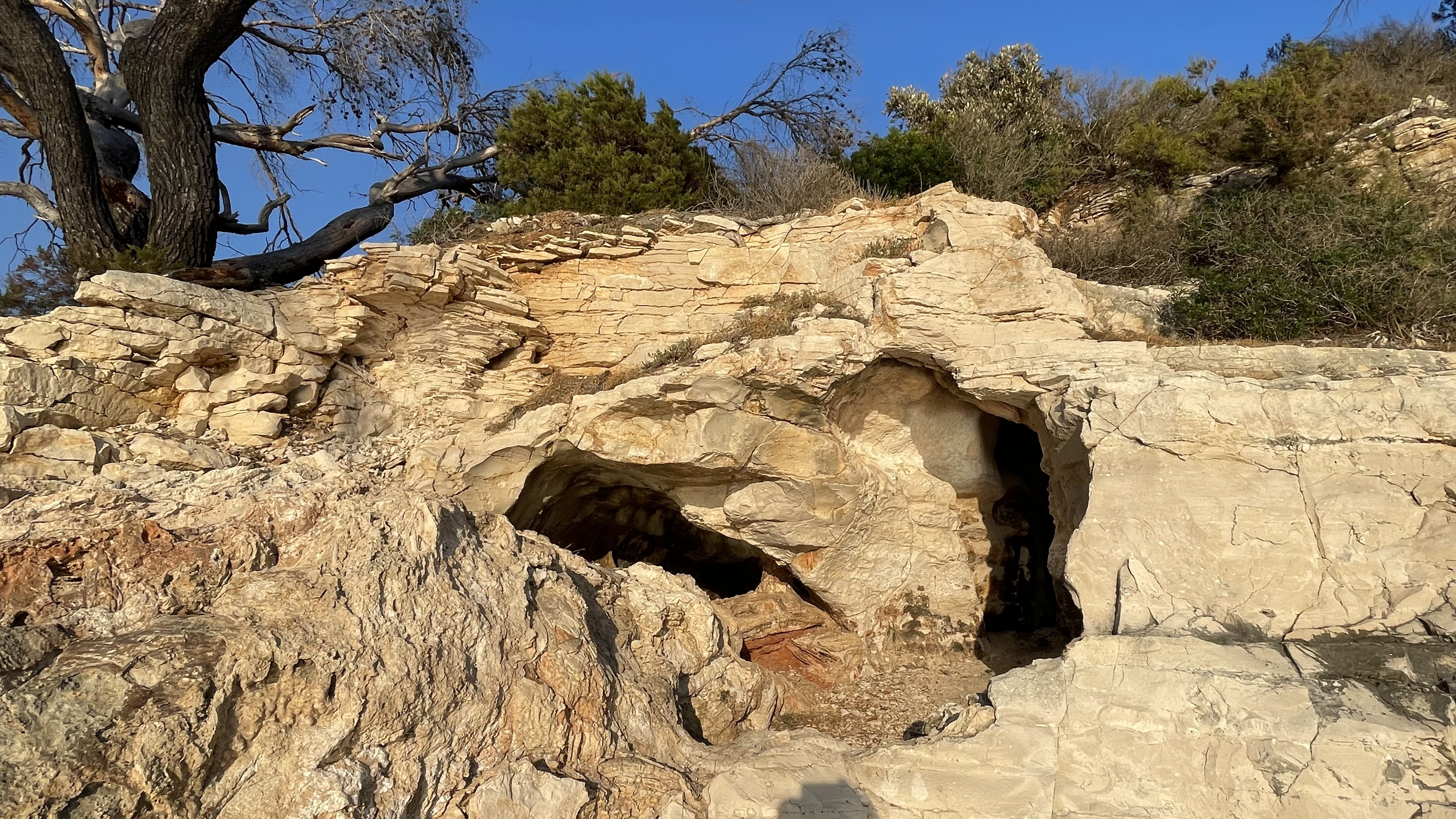 The main cave is at N 43.019399 E 16.204786. The small side cave is at N 43.019815 E 16.205279. The beach is at N 43.020619 E 16.205317. There's parking a couple of hundred meters from the beach, and at the beach there's a bar and some toilets. You may also rent beach beds for 10€ per day.