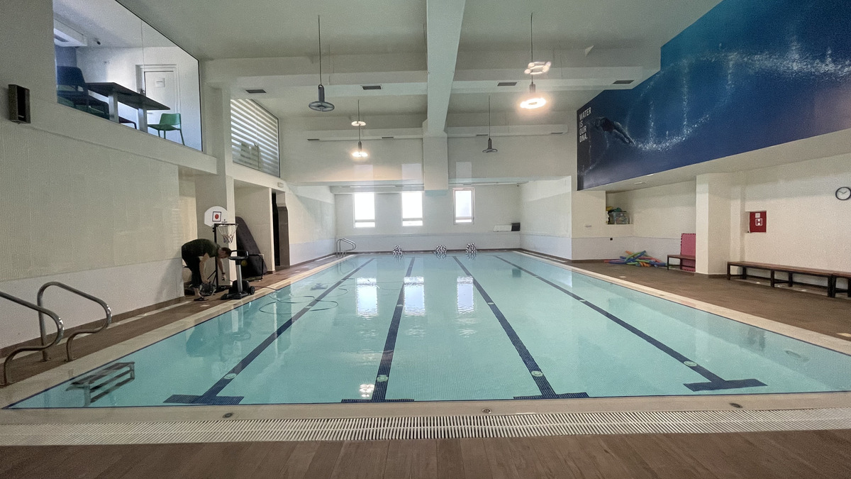 There's two pools, bigger 16-meter one and one children's pool. The bigger pool has four tracks.