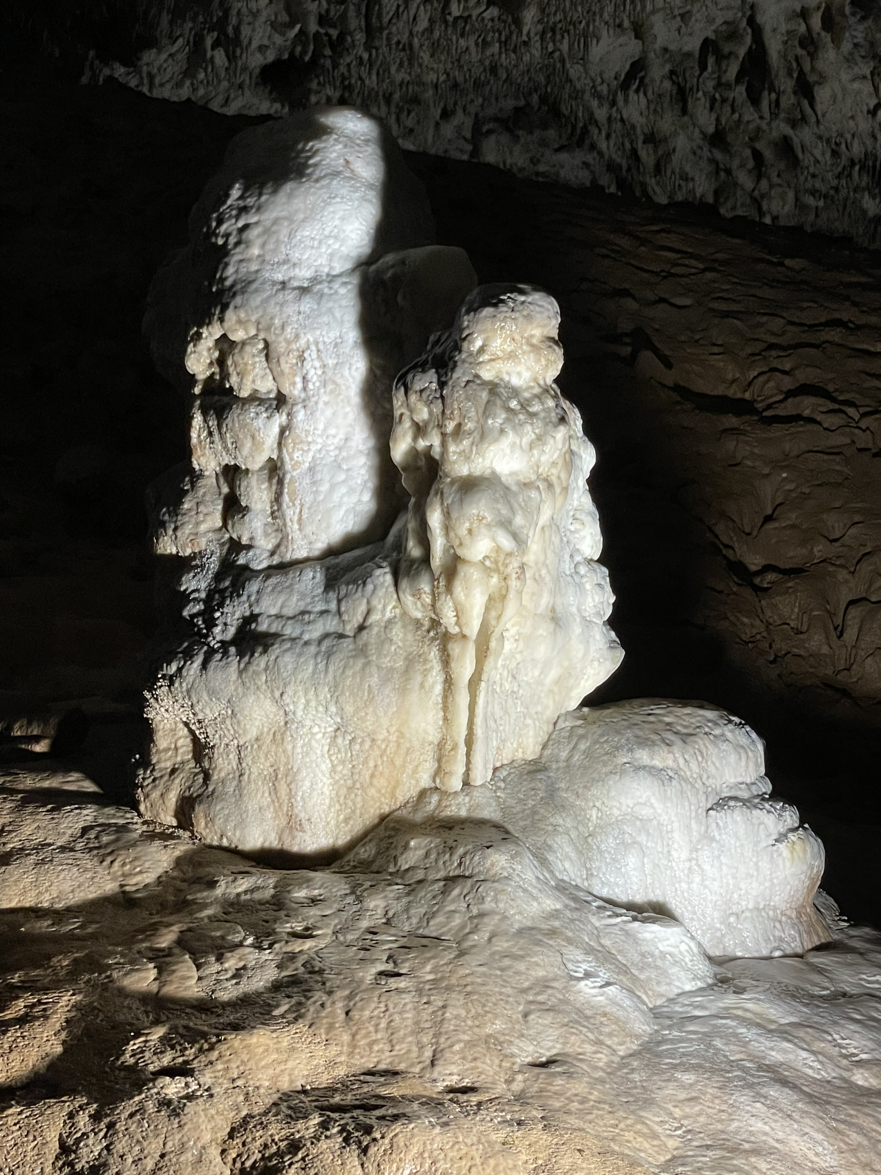 And in those massive halls there's not only a caveman, but also a girl appearing in a stalagmite!