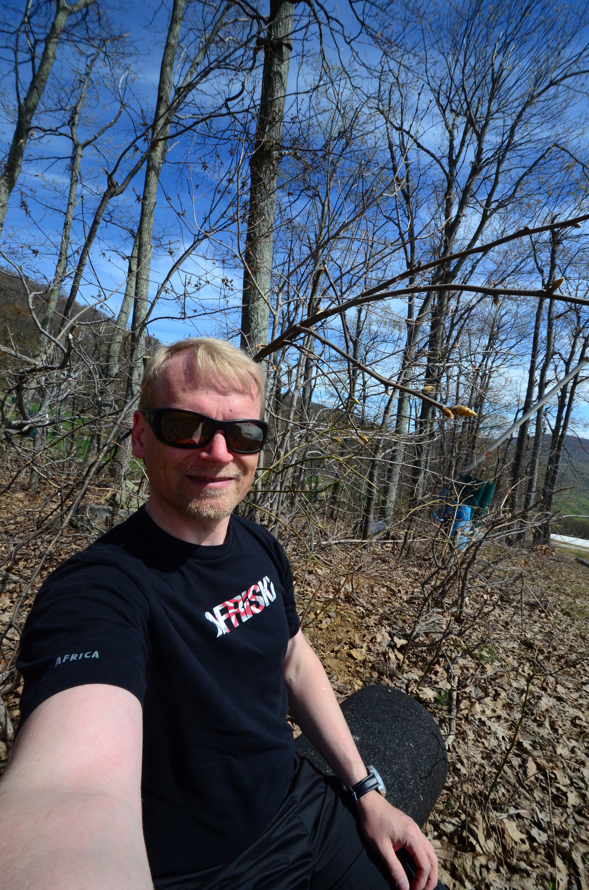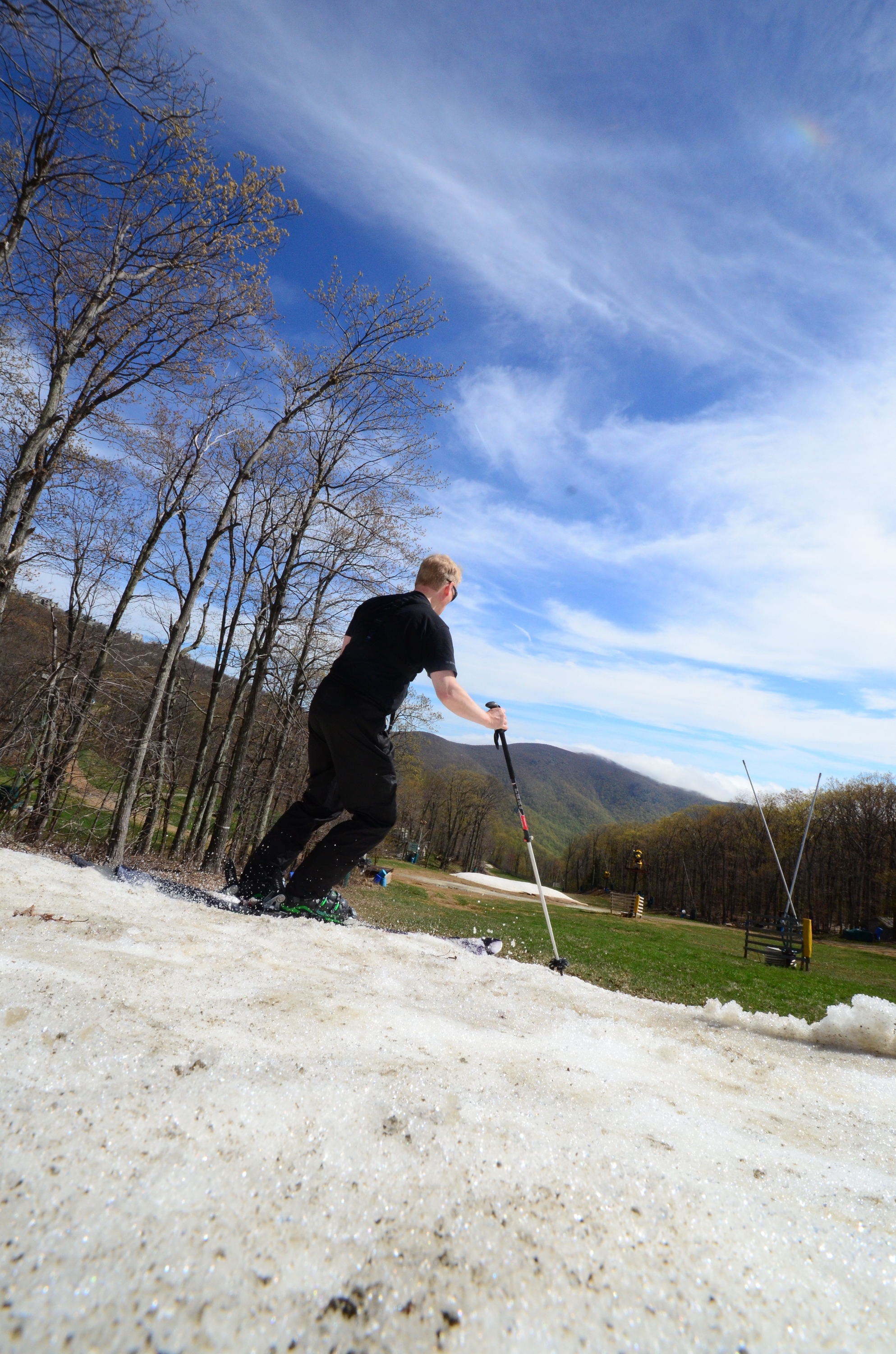It took only six hours to drive to the Wintergreen resort and back, but it was worth it. The white spot was snow*. A two second run down the snow, and I need to head to the airport. Gotta admit the ratio of skiing time versus travel time was on the low side, though.