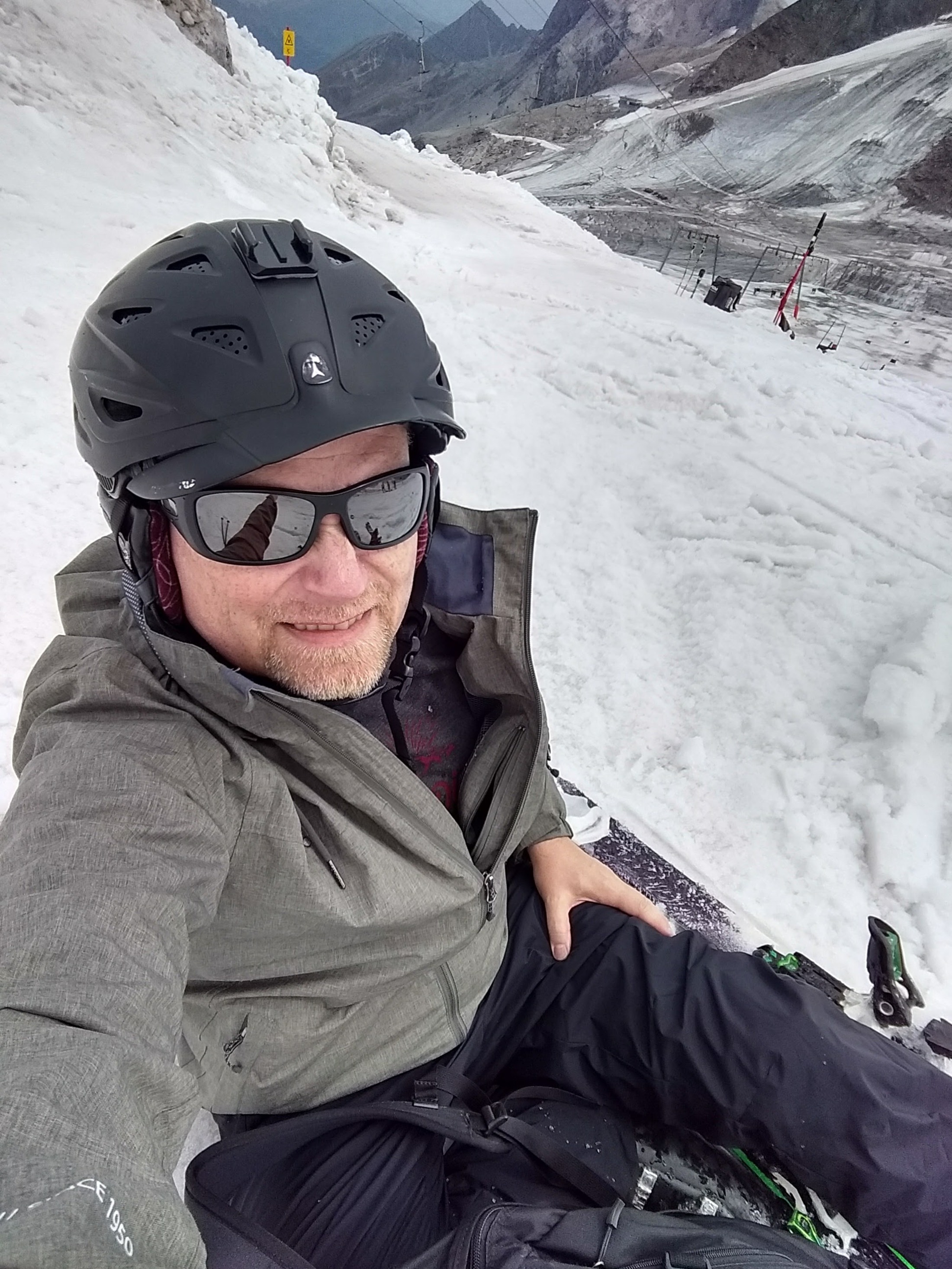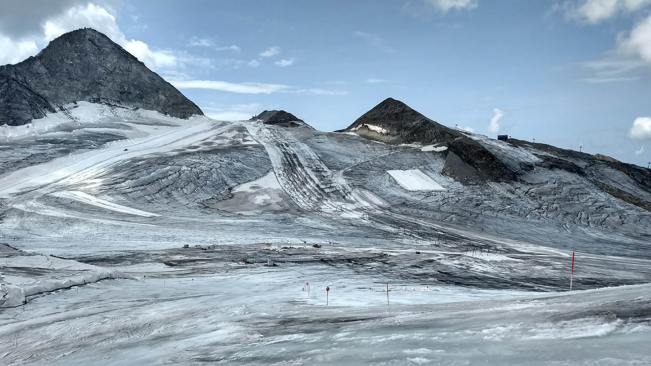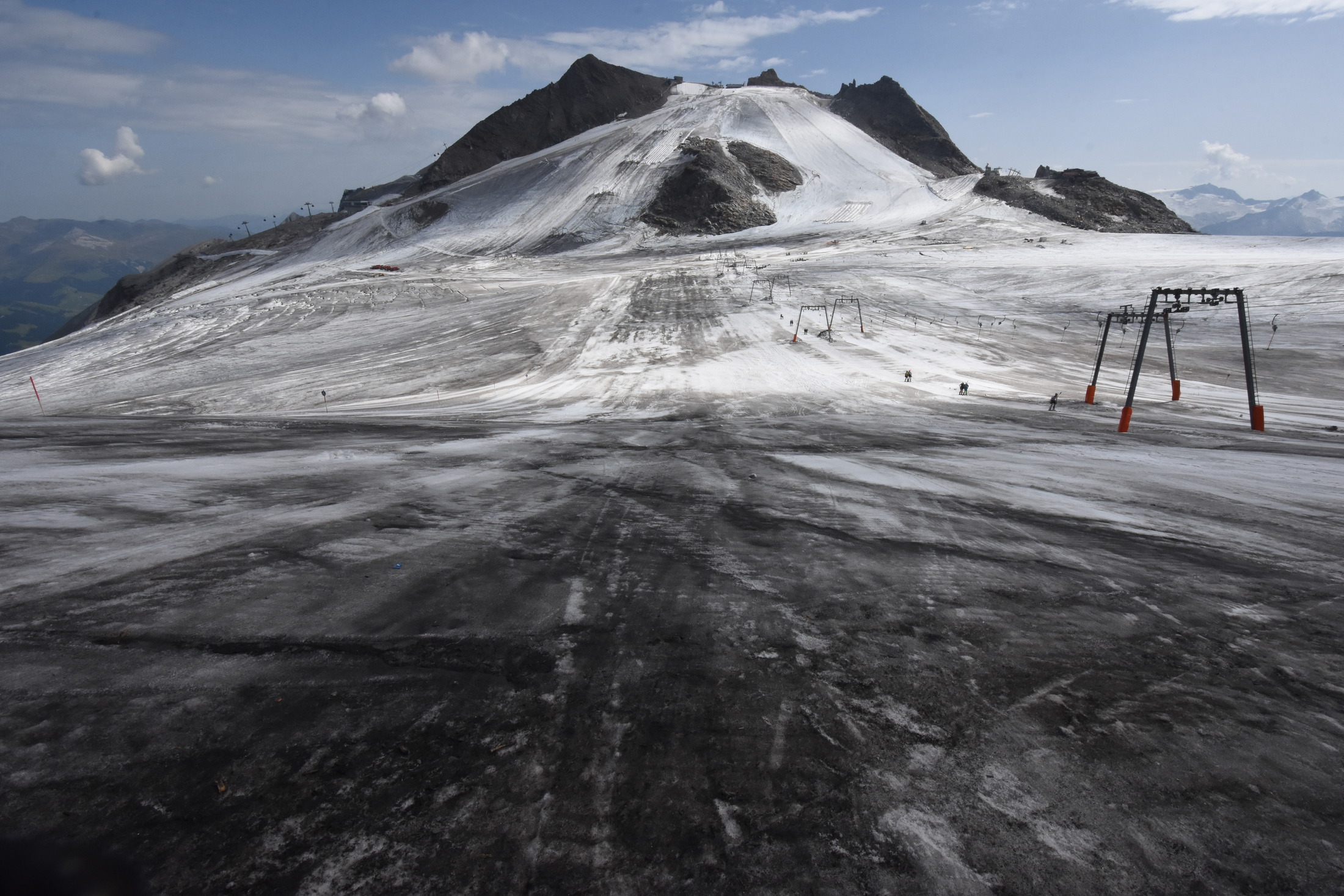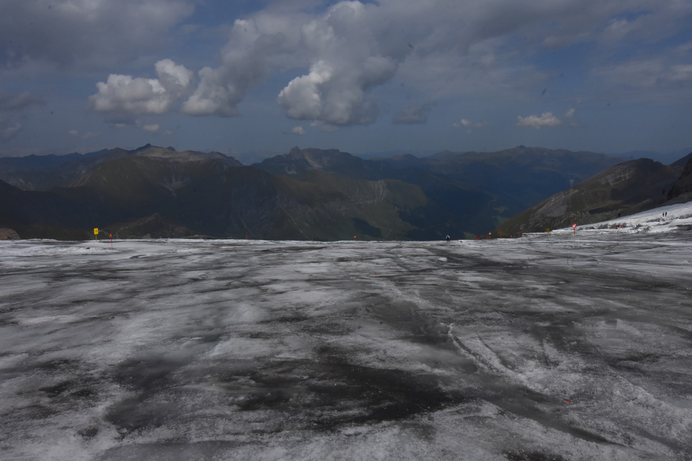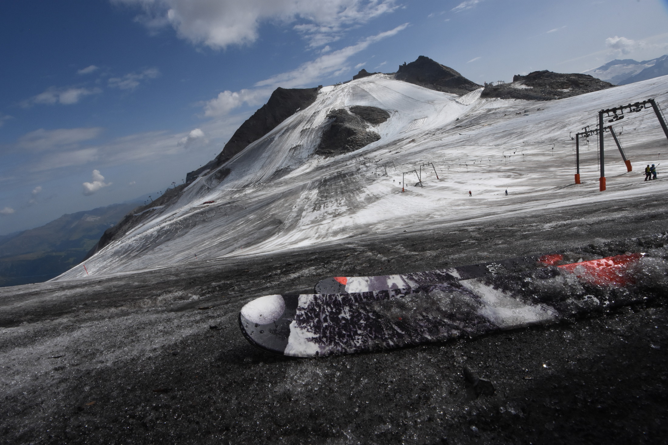 End of August is not great time to ski in the northern hemisphere. One of the few open places is Hintertux Gletscher in Austria. But even they have mostly melting ice and accumulation of dirt. Black snow.