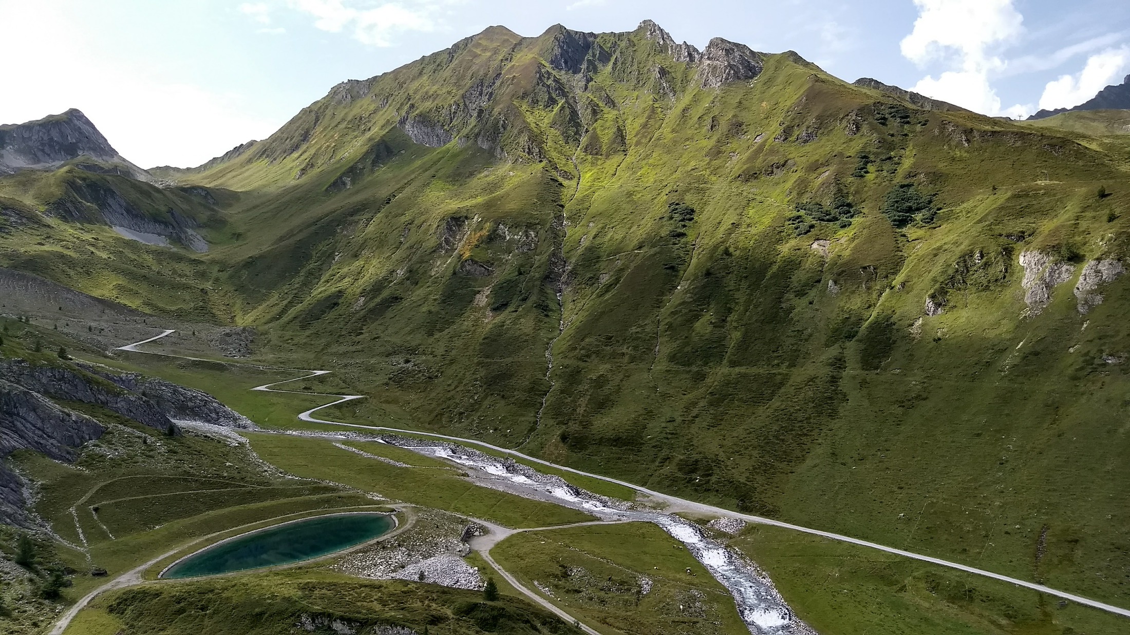 Further down in the slopes there's really only dark ice underneath. And it is difficult to distinguish the slope from the equally grey rock fields next to it.