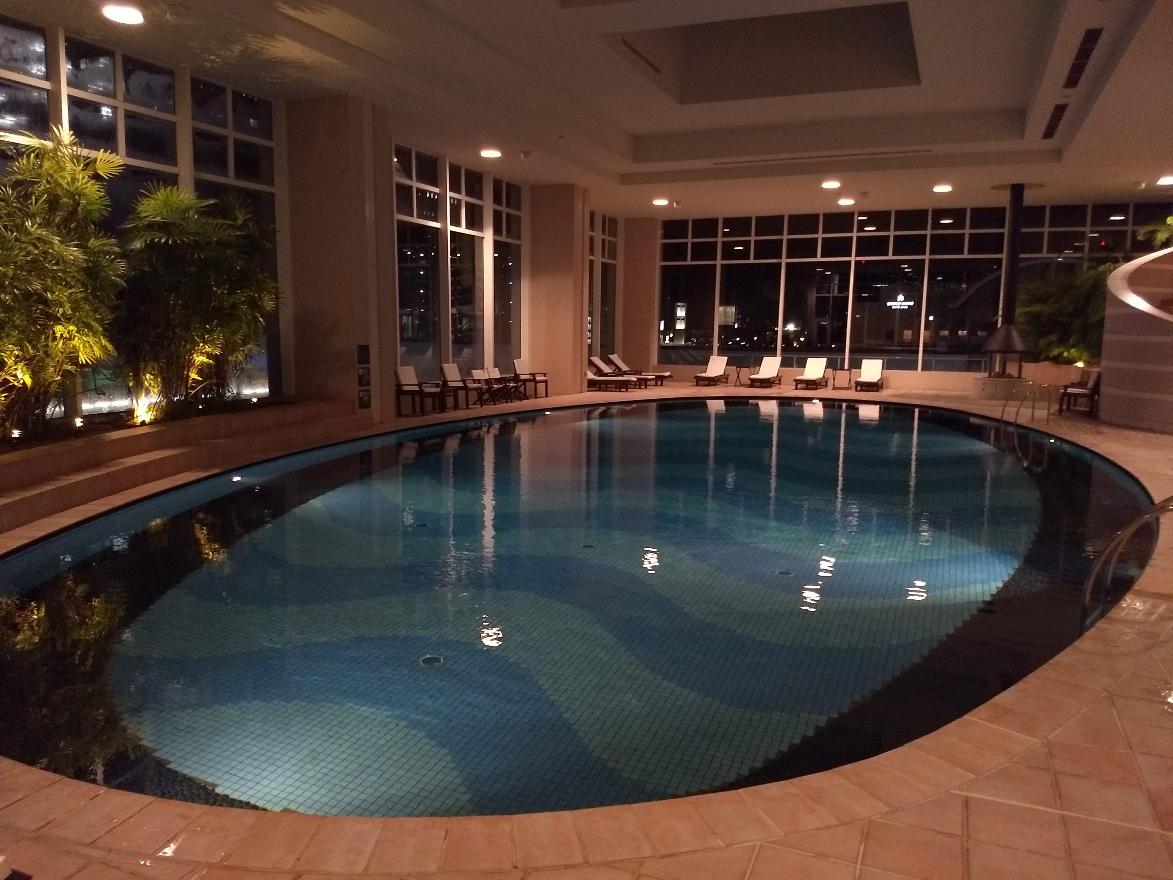 There is the hot outdoor pool, a slightly less hot indoor large jacuzzi, a large and very nice oval-shaped indoor pool, a steam sauna and the hot sauna.