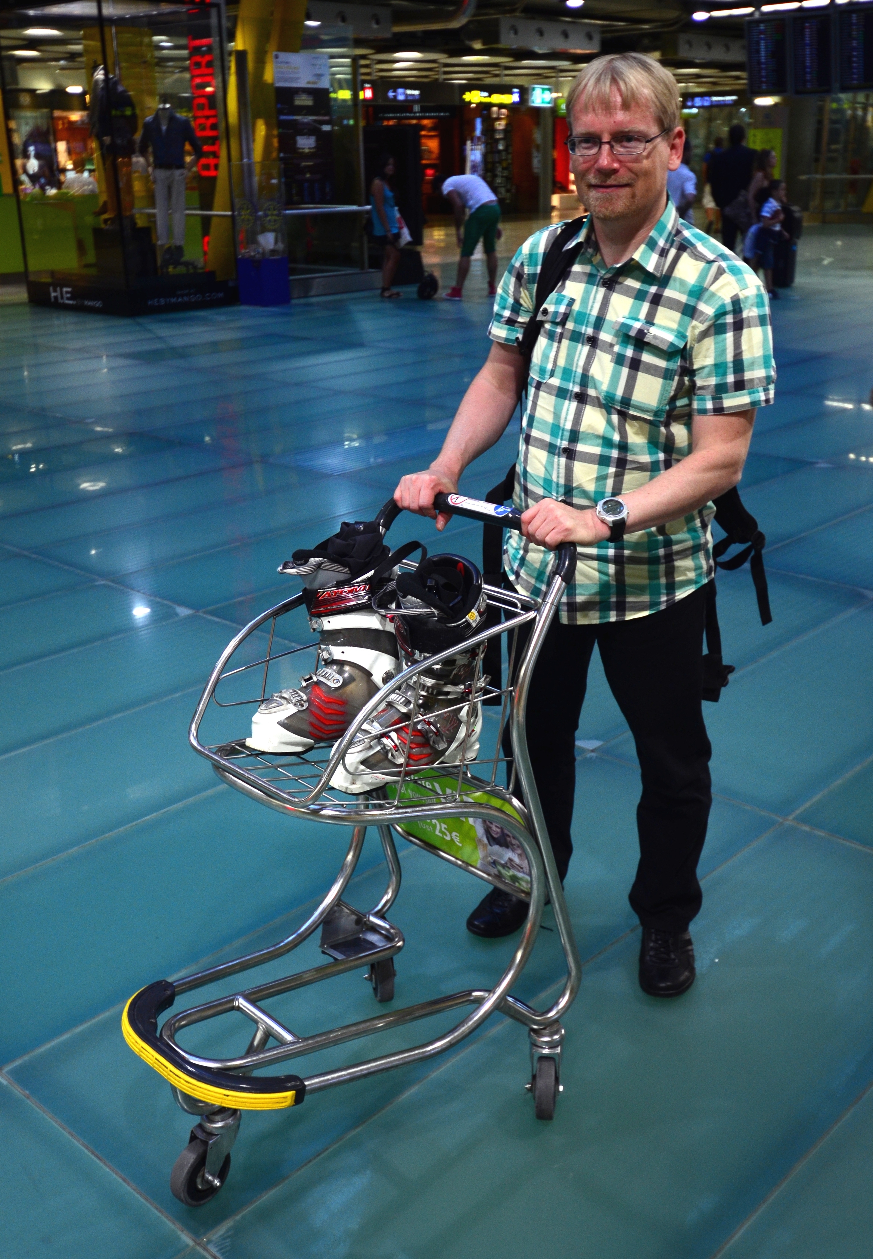 But it will be a long trip, over 33 000 kilometers again. We are also prepared for the eventual airline mistake. As is usual in my travels, I keep my ski boots in the cabin with me. The boots are filled with essential gear, like my ski pants. My backpack contains the jacket, gloves, and my camera gear. I left the ice axes in checked luggage, however.
