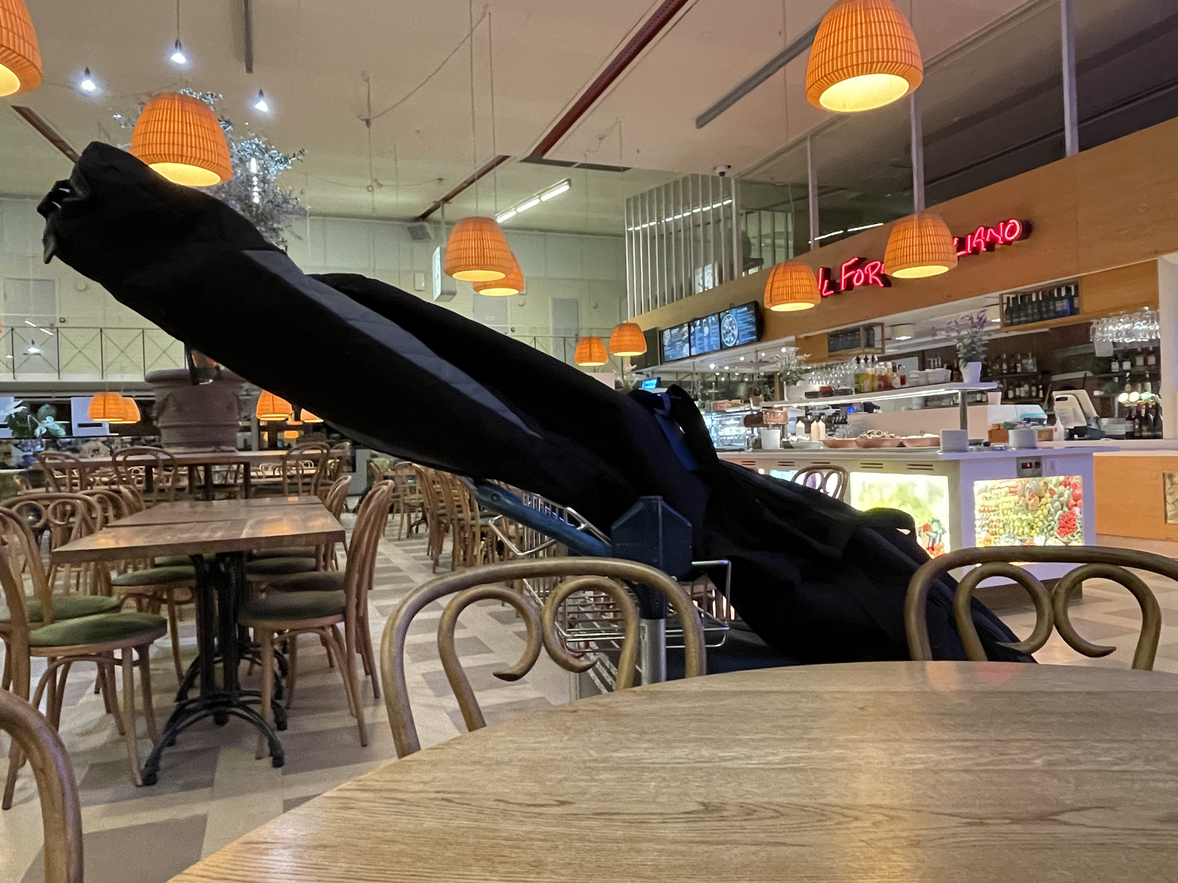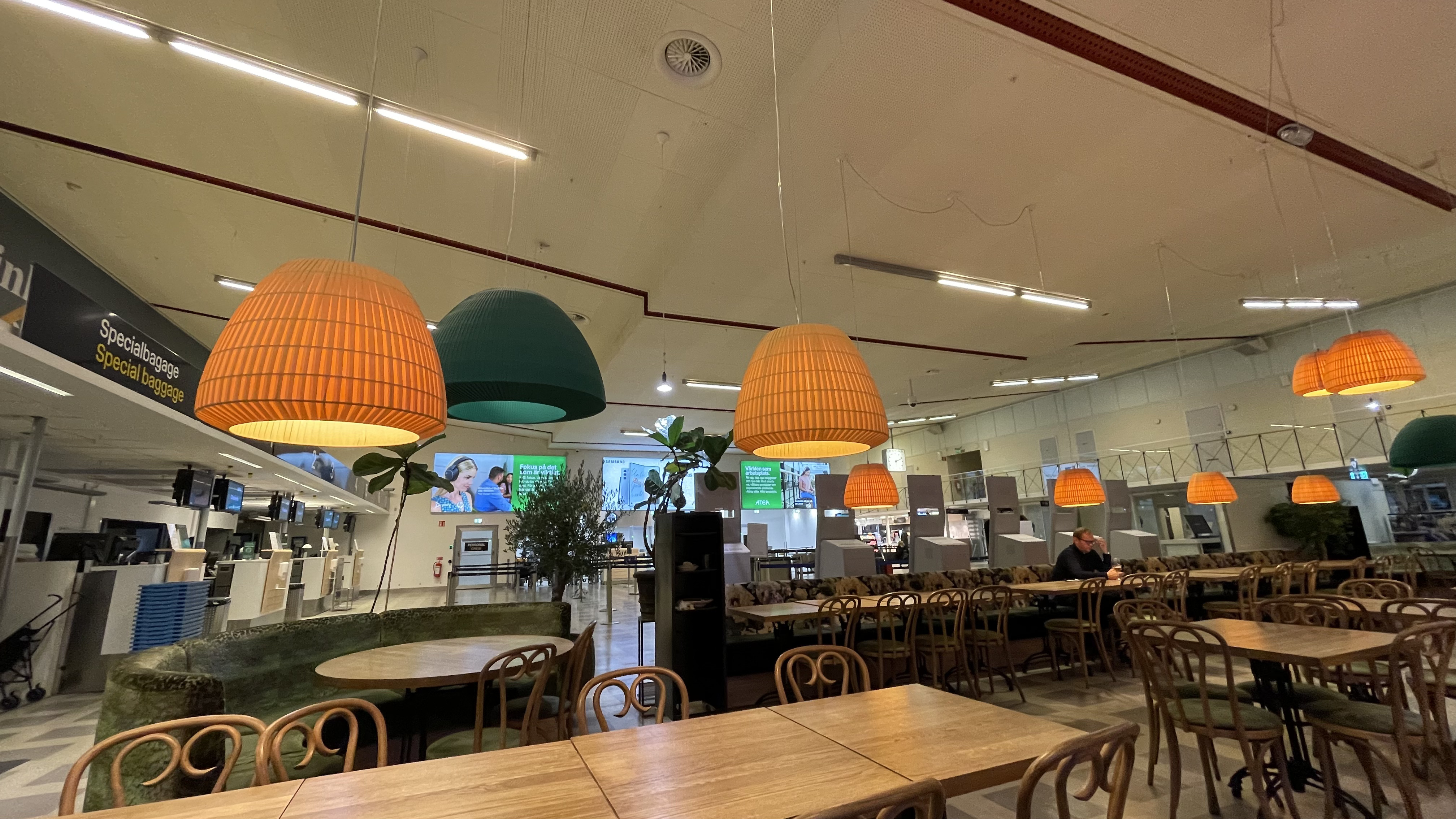 On the way in I had plenty of luggage (due to the skiing adventure during one of my evenings). And the checkin was not open yet. I ended up sitting in the empty airport, in the empty restaurant, enjoying a meal of Swedish meatballs :-) Fortunately I had a my friend, the Skibag with me sitting in the table. The conversations we had!