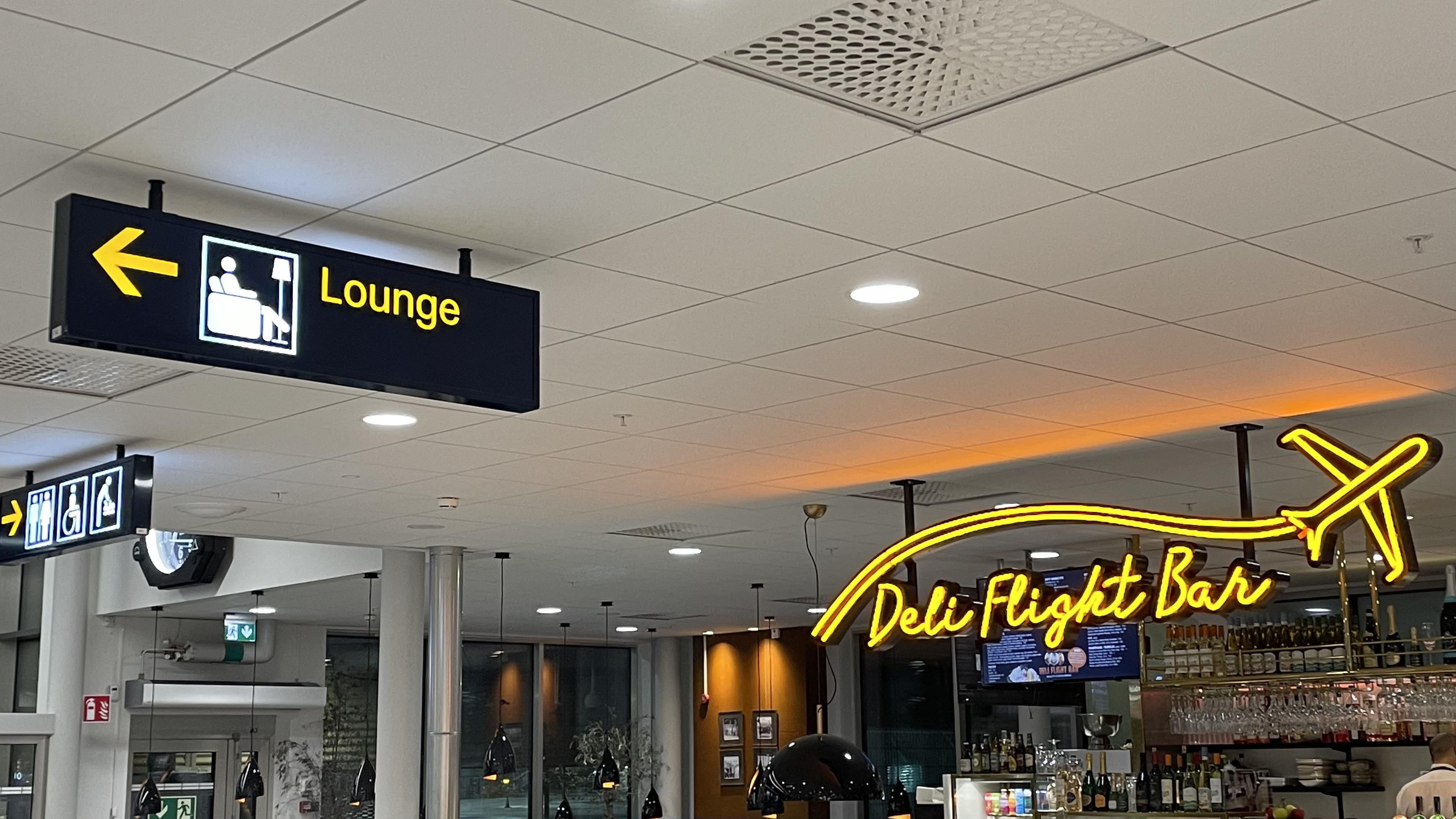 The lounge is small, but has some sandwiches, juice, coffee, has bathrooms and WiFi. They could have more power plugs though. Only few of the tables had them, and not the ones where it was comfortable to sit :-)