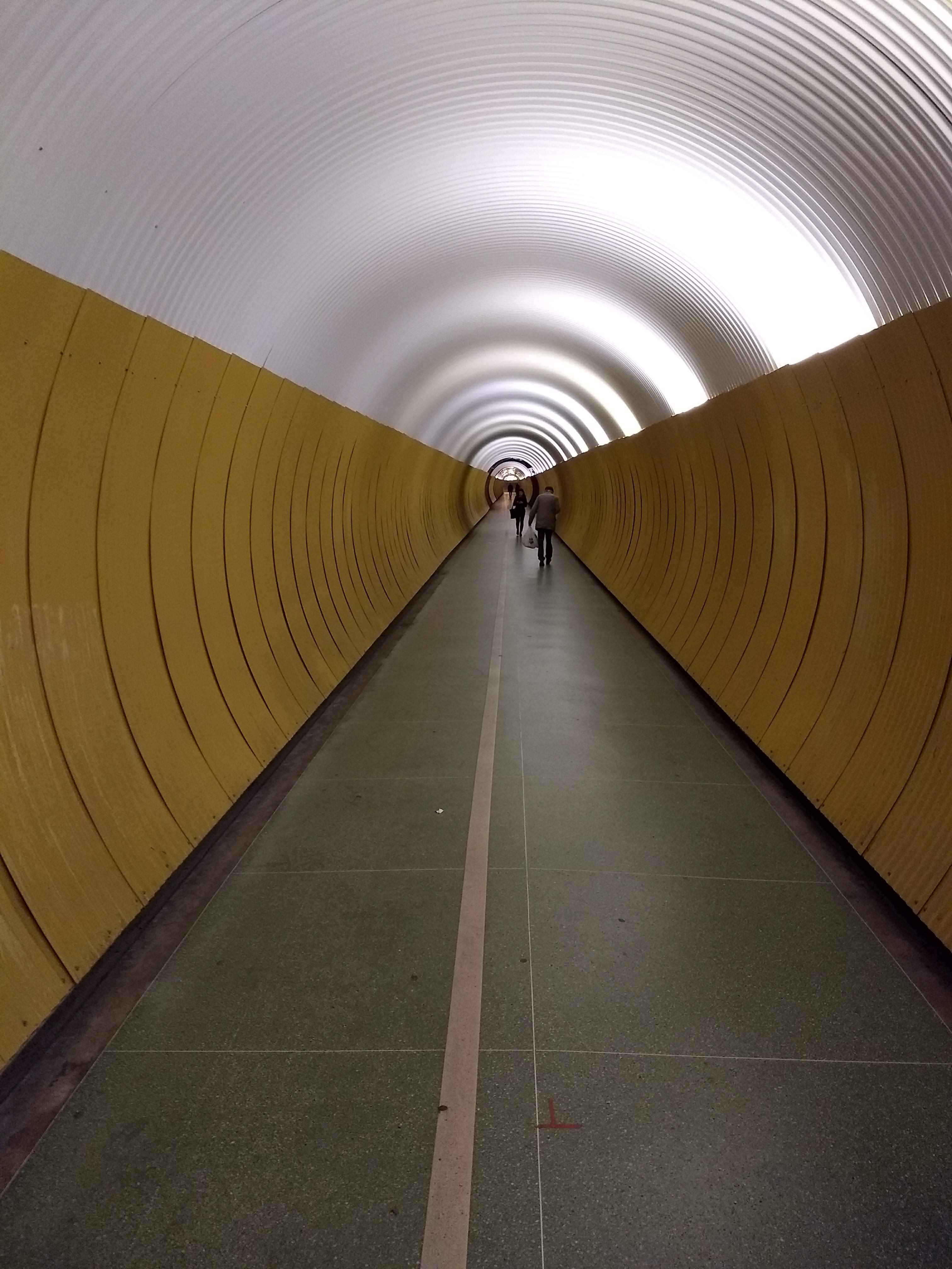 This week I'm working in Stockholm, and did not manage to get my usual cheap hotel near the office. Staying at the city center, I noticed a tunnel that I had not seen before: Brunkebergstunneln. A nice walkway from 1880s, 231 meters long.