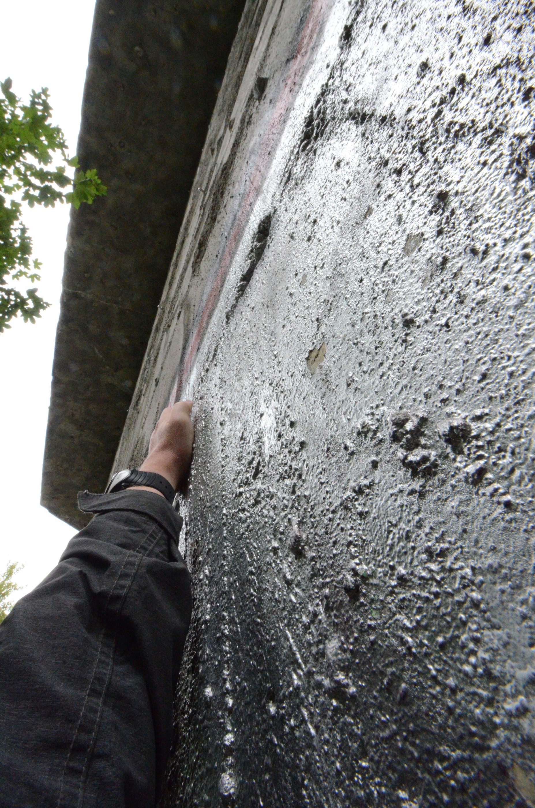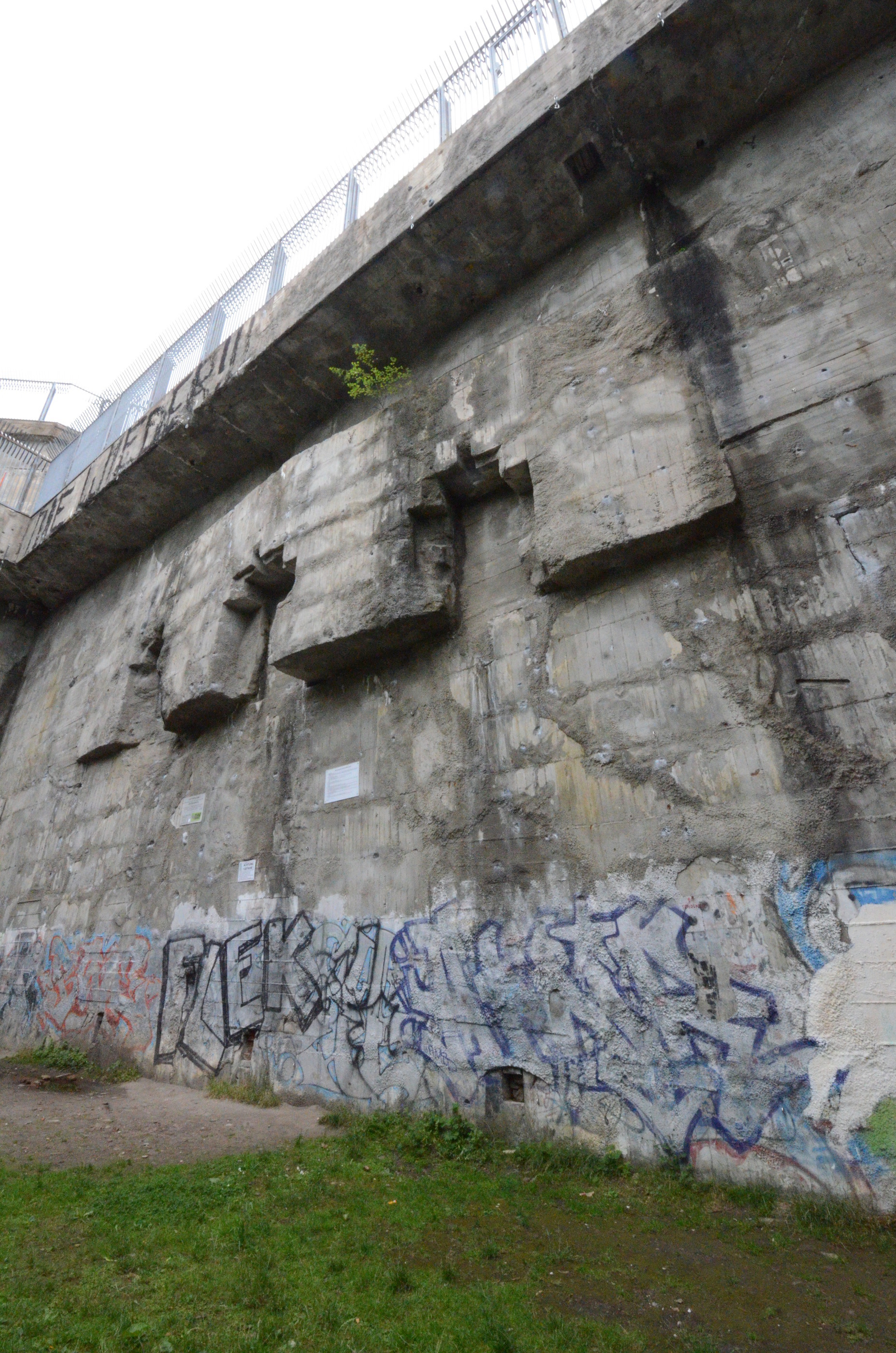 A blown-up bunker. Debris. Darkness. Bats. Concrete rising to the heights. Walls hanging where they should not be. An ideal climbing place, if it wasn't for the grim past of this place and the morbid pictures of soldiers.