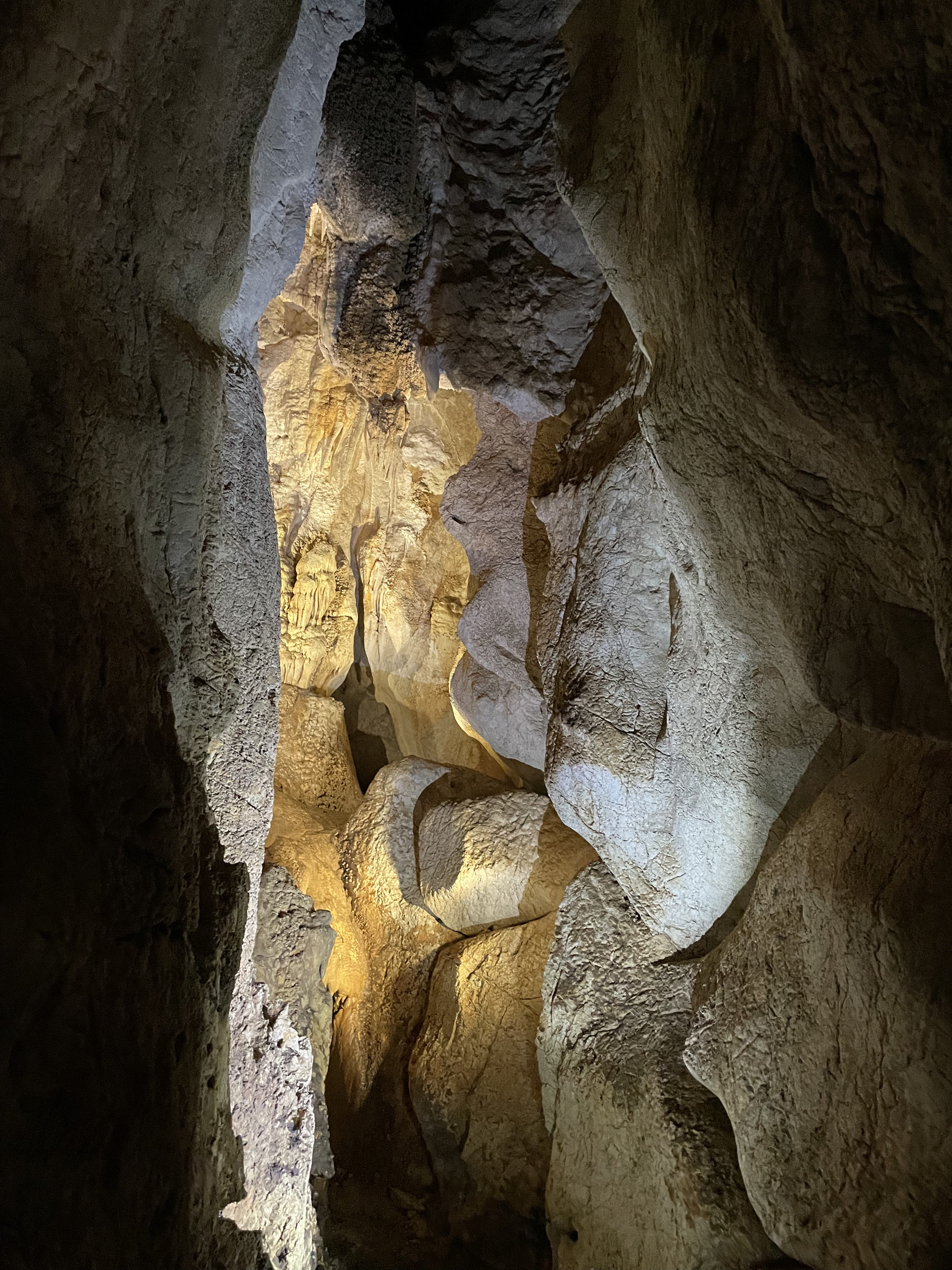 And so many things to talk about. Encounter with a snake while crawling. The roots everywhere in the cave, despite being high (up to 30 meter high rooms) the forest above the cave sends its roots down for water, I guess. There's a nice little restaurant/bar and a gift shop, easy parking... In the neighborhood there's also the Mt. Etna Caves national park.