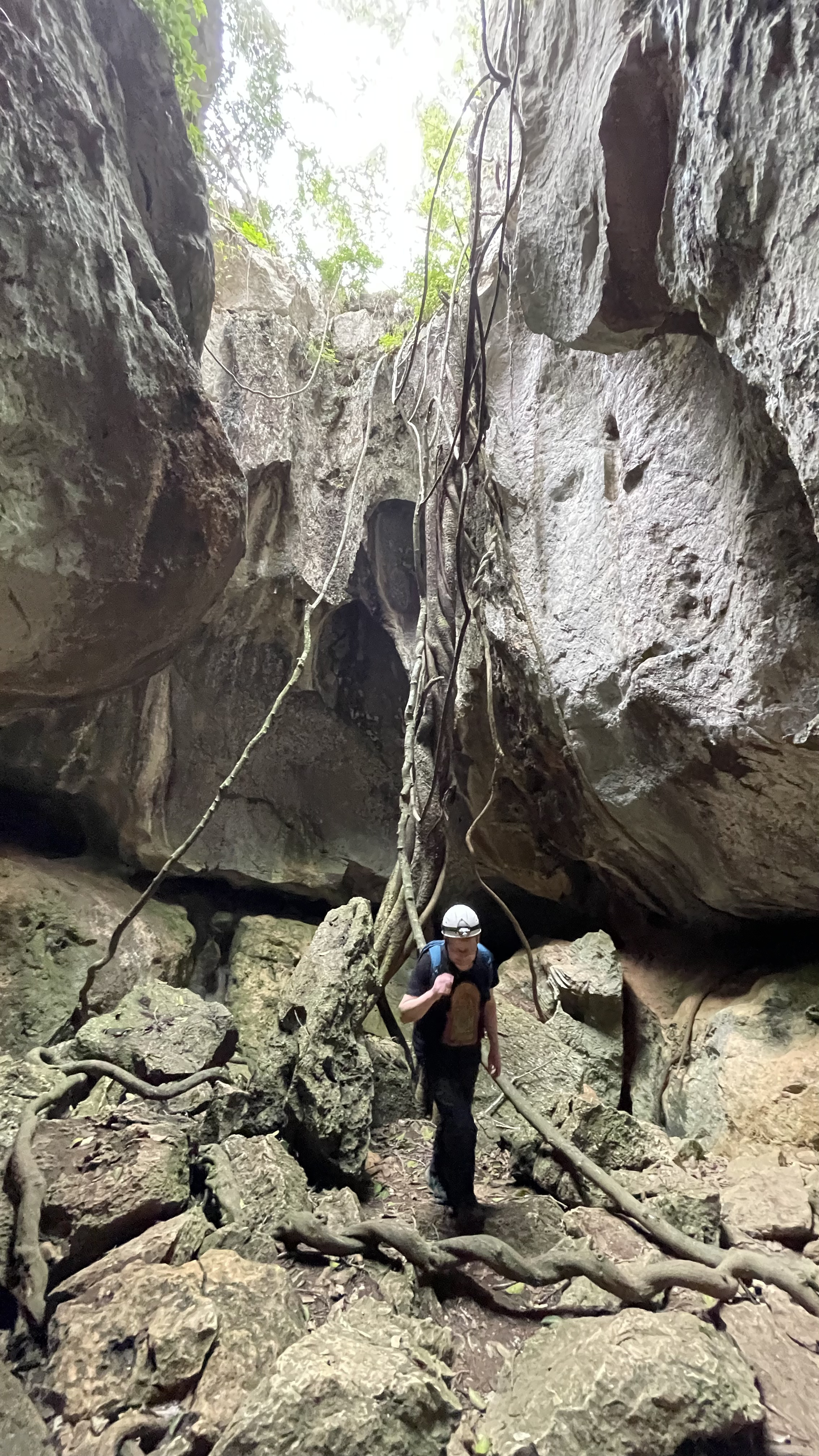 Capricorn Caves is a limestone cave under a hill a town called The Caves, Queensland, Australia. This is a small town about 30 kilometers north of Rockhampton. A wonderful little town... with The Caves elementary school, The Caves bar, etc. But the cave! Such a nice place to visit. It is a commercial show cave with a variety of tours, from the basic tourist walking tour to more adventurous tours. I did both actually, was lucky to be able to reserve a slot in the adventure tour as well as they only do them if there's enough participants.