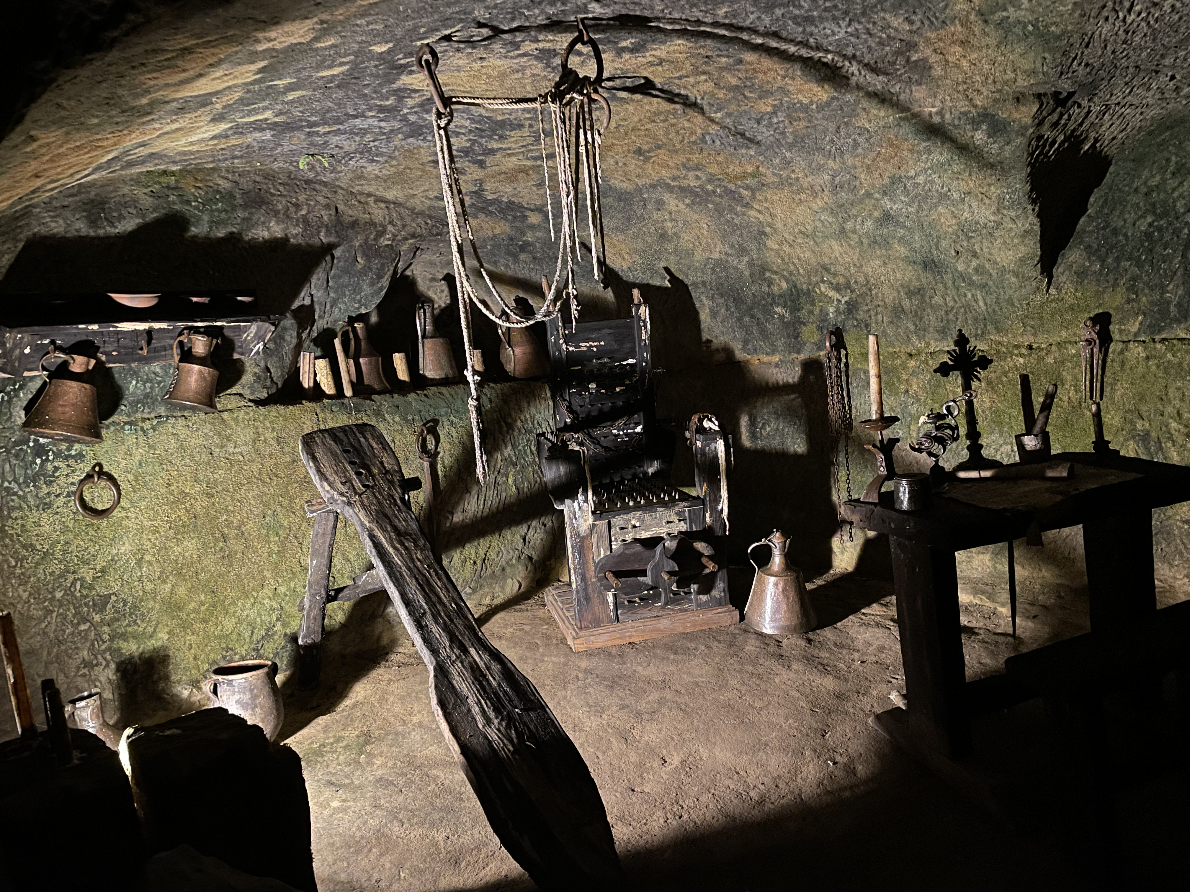 I had an opportunity to visit castles in Czech Republic this summer. The first one we went to was Hrad Trosky, the ruins of an amazing two-tower steep clifftop castle. What a magnificent, for defense business -only castle! The second castle, Hrad Kost was a more full-service one, and was used as an administrative base. With a torture chamber, of course. (Is there any other kind of administration???)