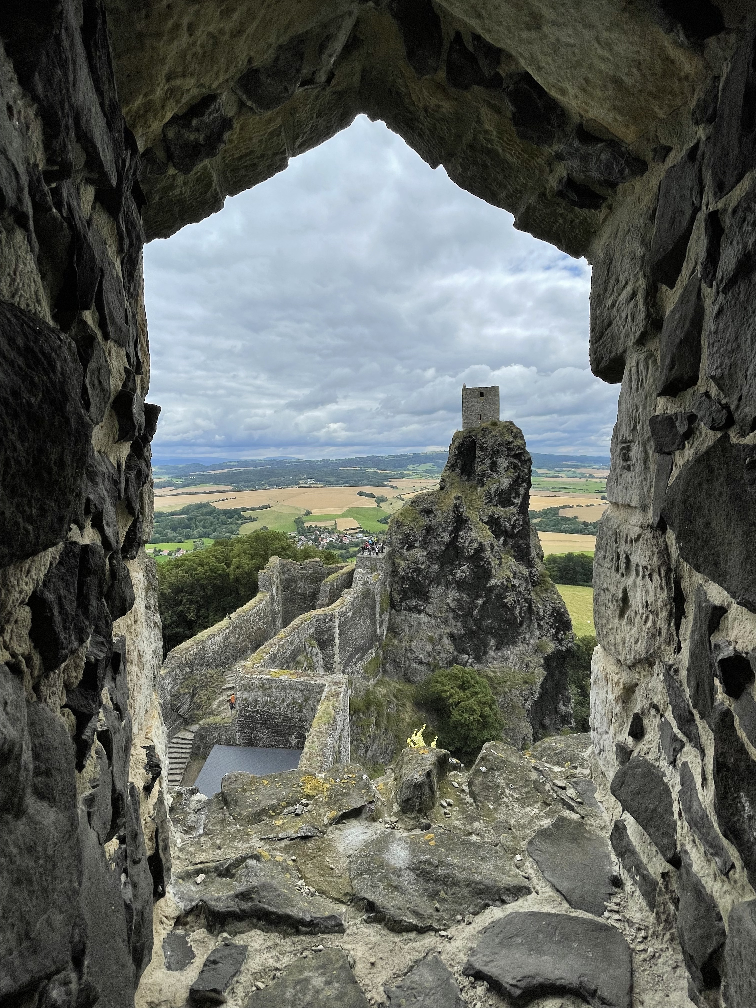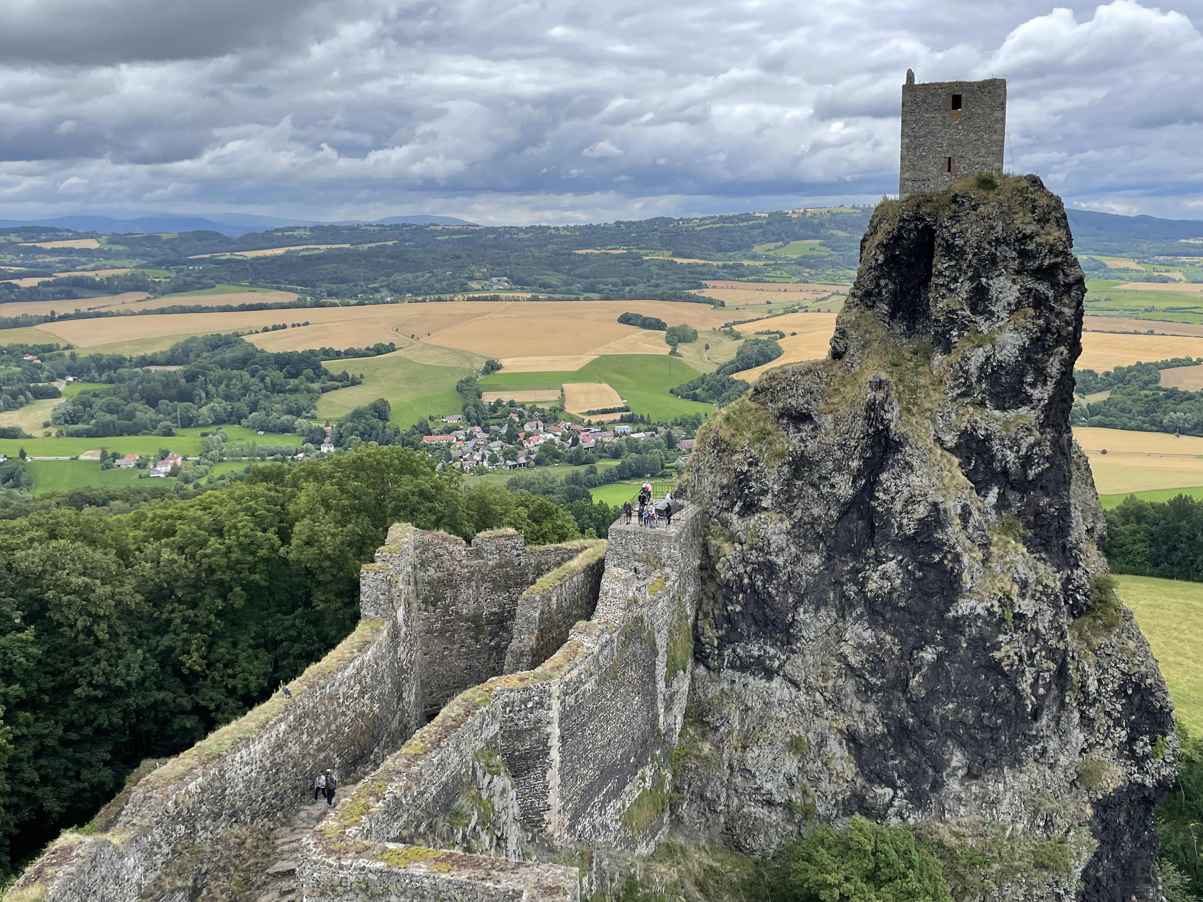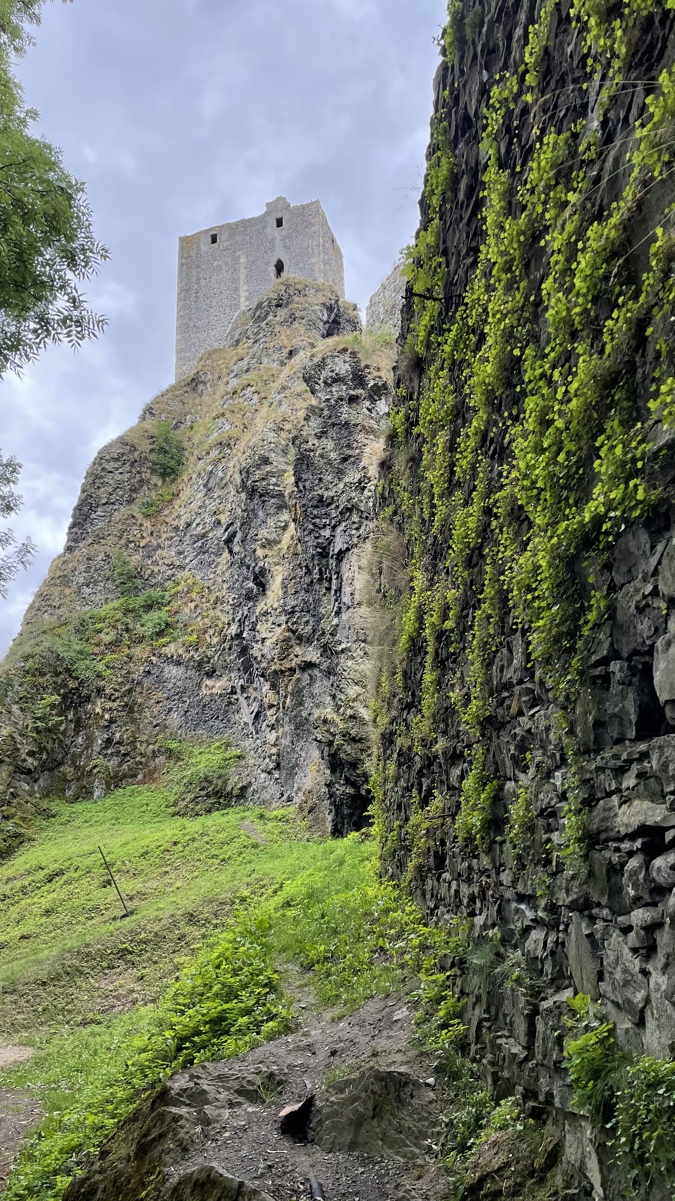 Hrad Trosky is such a radical, high-up-on-a-cliff castle that it was breathtaking. Literally, when you climbed the stairs to the top of one of the towers. Only one of the two towers is today reachable, the support structures and stairs for the other one are long gone. Yet, it looms high above the horizon. The castle can be found on Google Maps here. There's easy (paid) parking and restaurants, but a short steep walk to the castle.