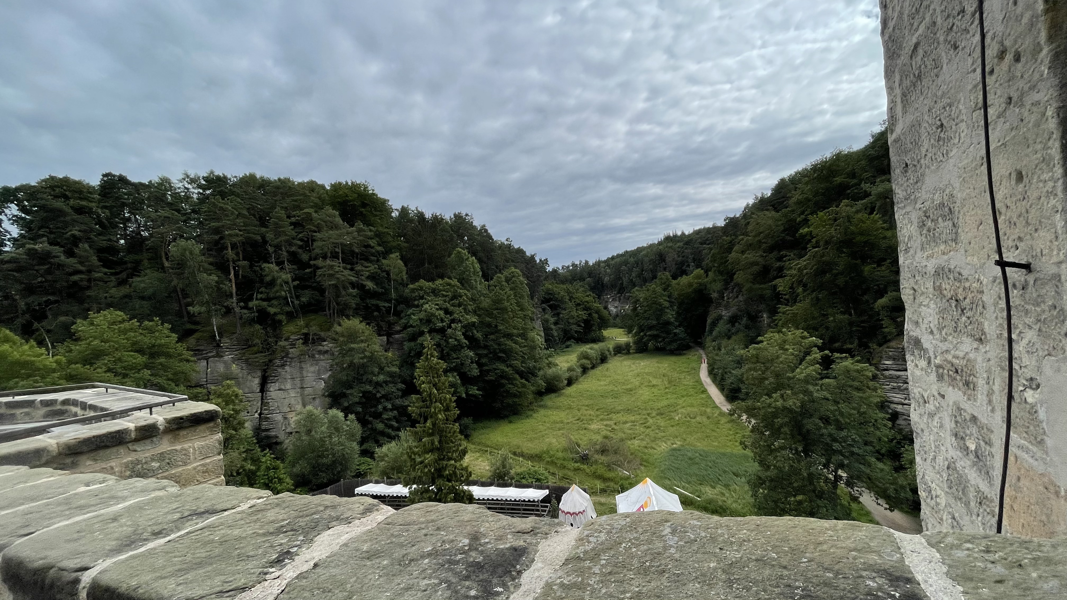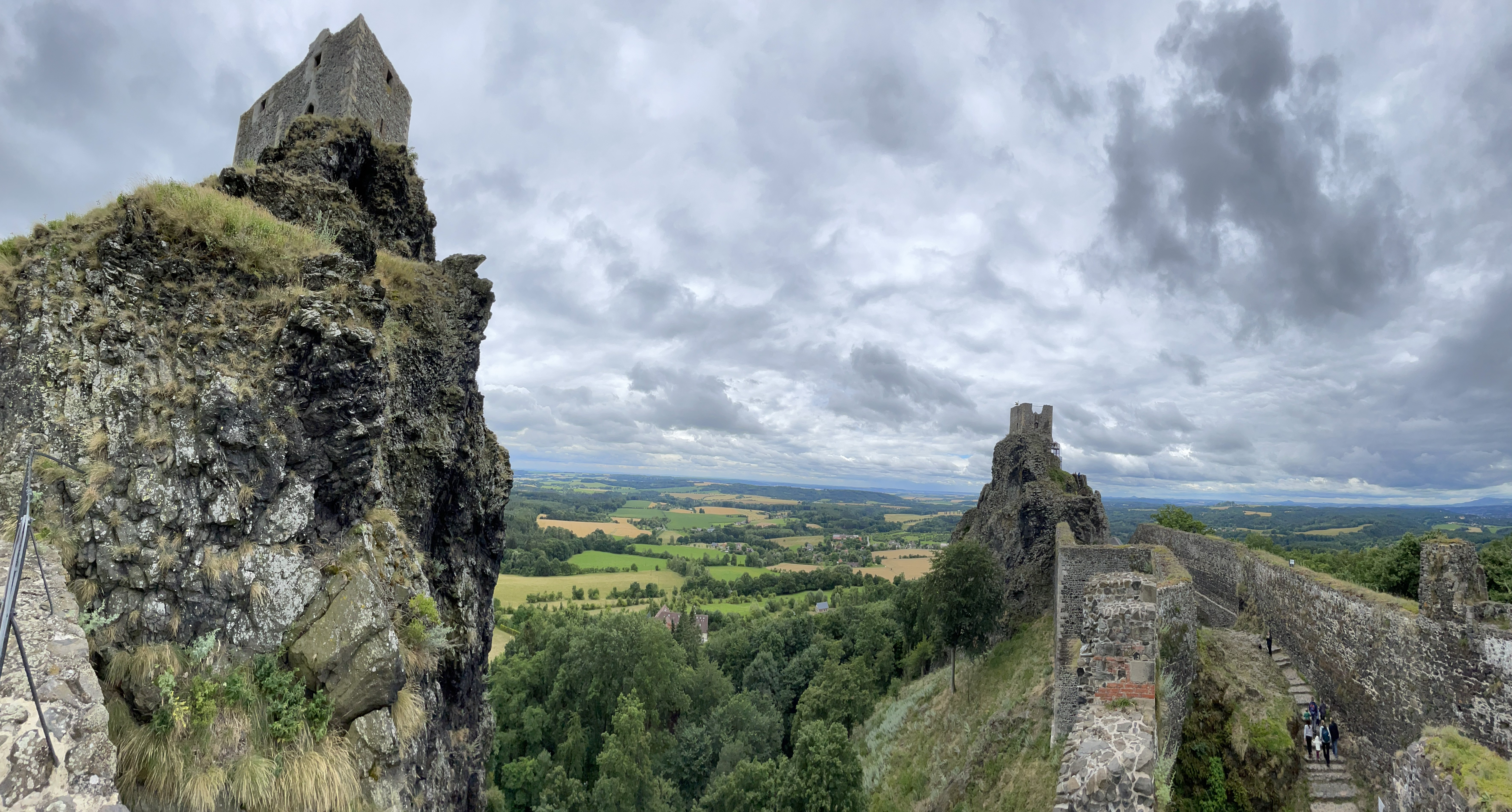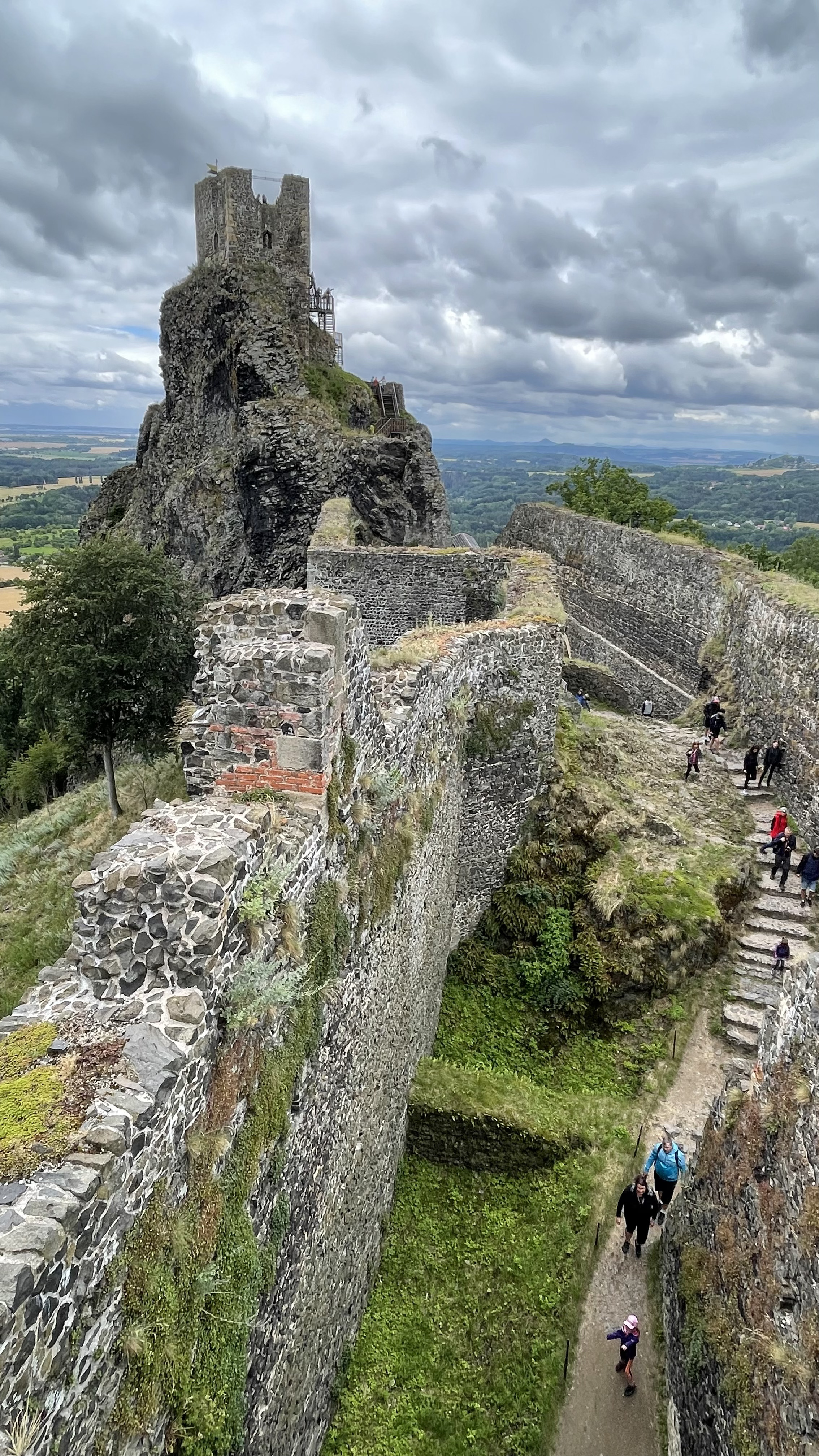 Hrad Trosky is such a radical, high-up-on-a-cliff castle that it was breathtaking. Literally, when you climbed the stairs to the top of one of the towers. Only one of the two towers is today reachable, the support structures and stairs for the other one are long gone. Yet, it looms high above the horizon. The castle can be found on Google Maps here. There's easy (paid) parking and restaurants, but a short steep walk to the castle.