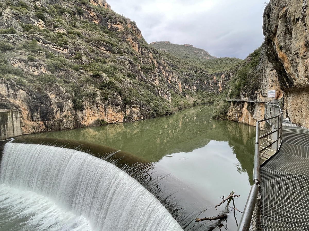 Central hidroelèctrica d'Alòs de Balaguer in Riu Segre. This is the dam. The coordinates are N 41.906208 E 0.893146. You can walk on a walking platforms a bit forward on the sides of the dam, to get a view. Wonderful views. This is a smaller dam and power station, and next to the much bigger built right across the river, the Camarasa dam and power station. There appears to be also longer walking routes on both sides of the gorge, would have been interesting to take them, but did not have time of that during my day. More information here and here.