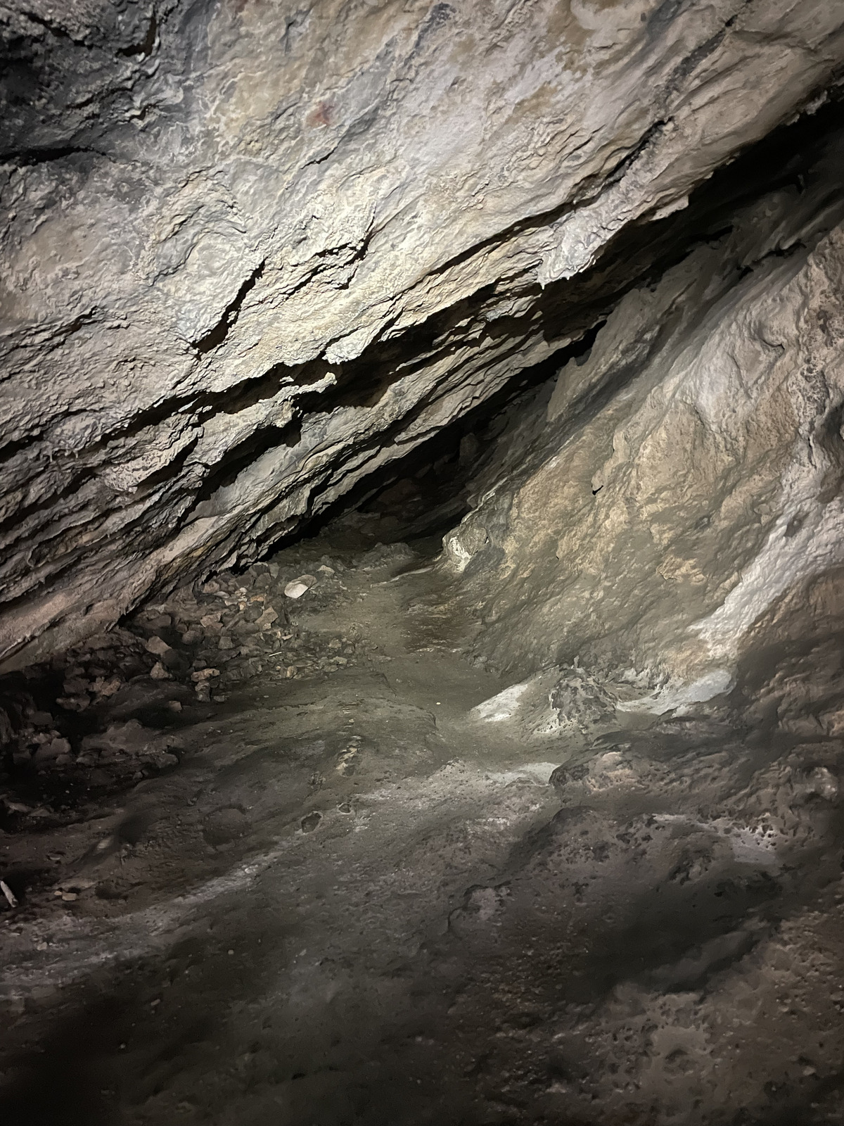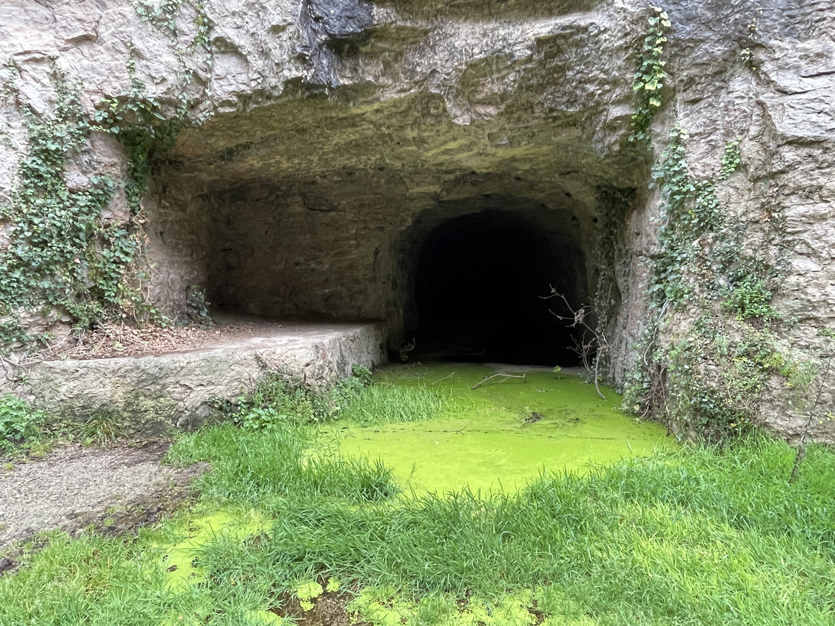Forat de l'Or in Camarasa. The coordinates are N 42.0391572 E 0.8849846. Read more here. This is something that I had researched about, easy to find, but turned out to be challenging at first to get in. The main entrance was not easy to enter due to a concrete water basin construction. I was sure I could get in but I wasn't quite sure I would have been able to get out. Fortunately I had to take a leak behind the bushes and realized that behind those bushes was actually also a second, side entrance to the cave. The cave is long, 2213 meters. But only part of it is actually accessible by on foot, as it sumps fairly quickly. I also didn't have my cave suit on, so ended up going as far as I could by walking, didn't resort to crawling through mud pools, as tempting as it would have been :-)