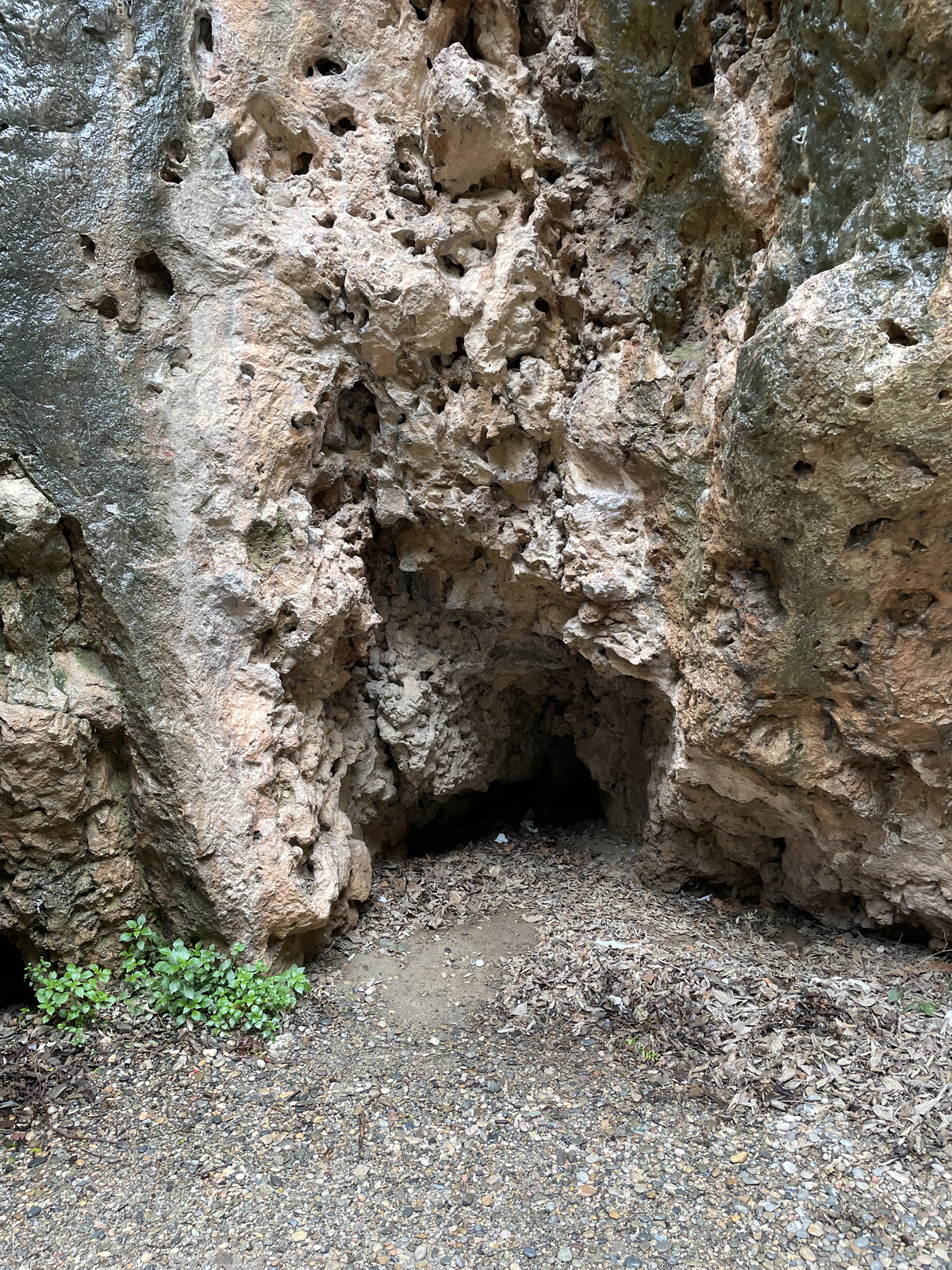 Photos, first the canyon bridge next to the cave, then the main entrance, and then the side entrance: