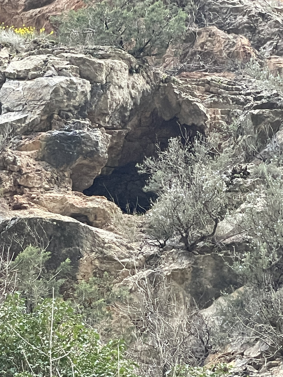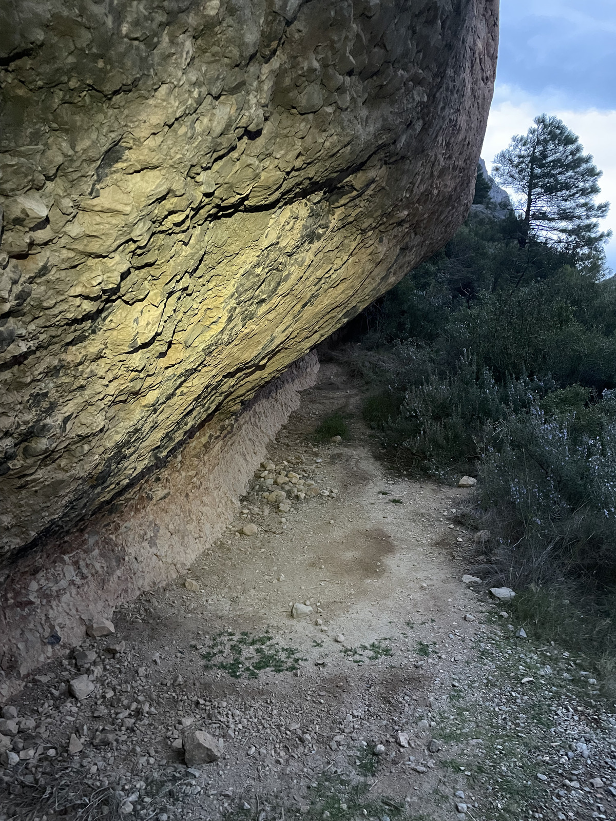 The second cave was Cova del Mirador de l'Infern in Solduga-Esplugues. It is easy to find, you can even see it from the hike up. But closer to it I actually missed the cave initially, passing right under it first as I kept trying to find it on my level rather than looking high up enough. I ended doing a sketchy climb on steep animal path until I realized I must have passed it and returned.