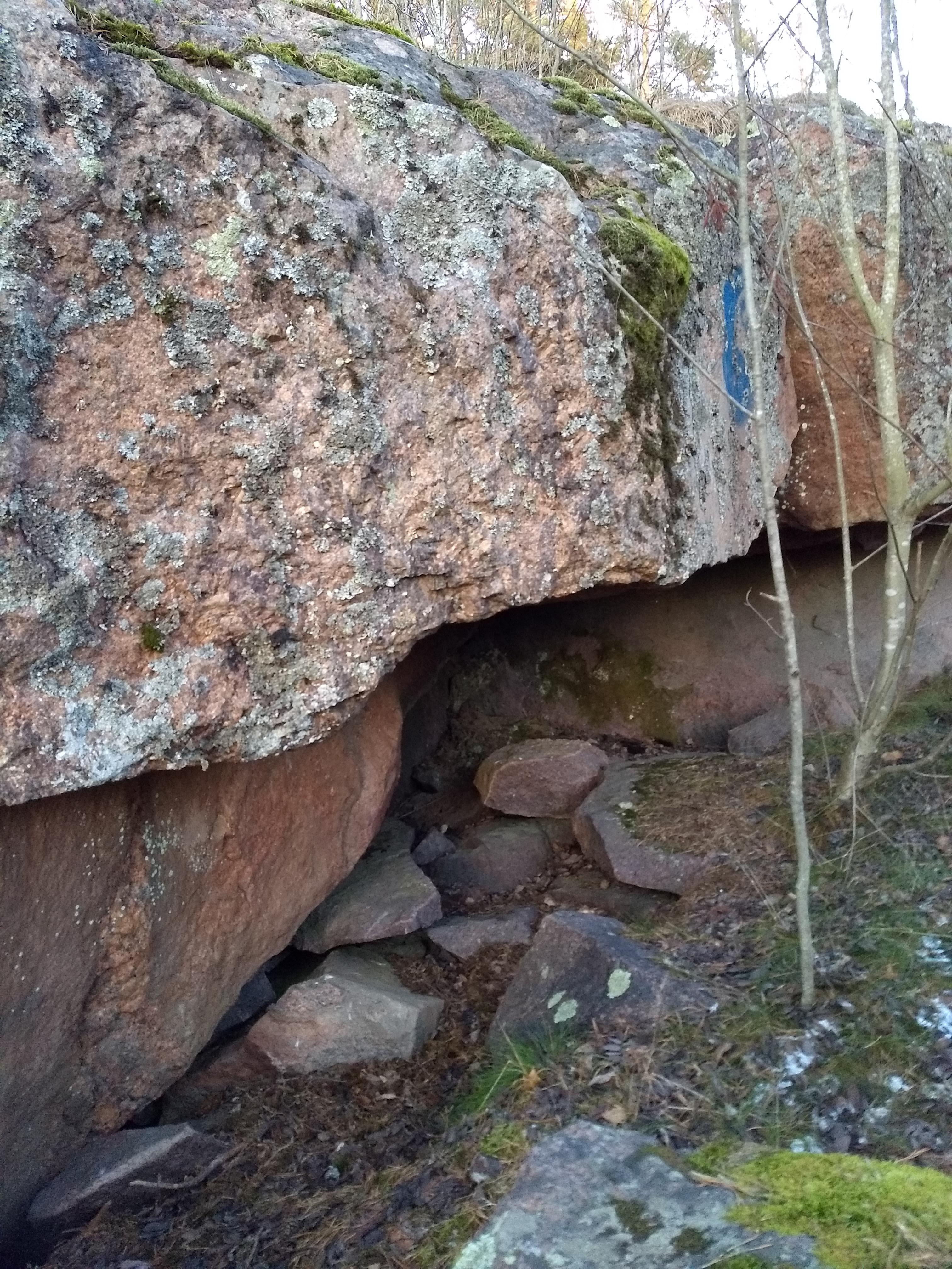 By the way, other Espoo caves that I know of are Sikalammen Luola, Meerlammen Luola and Hiidenpesän Luola in Nuuksio, Nepperin Luola north of Pitkäjärvi, possibly some space underneath a boulder in Suomenoja, and the odd hole in Saunalahti. The book "Suomen Luolat" also lists Solvallan Luolat and holes under boulders in Kattilajärvi and Perälä (all in Nuuksio).