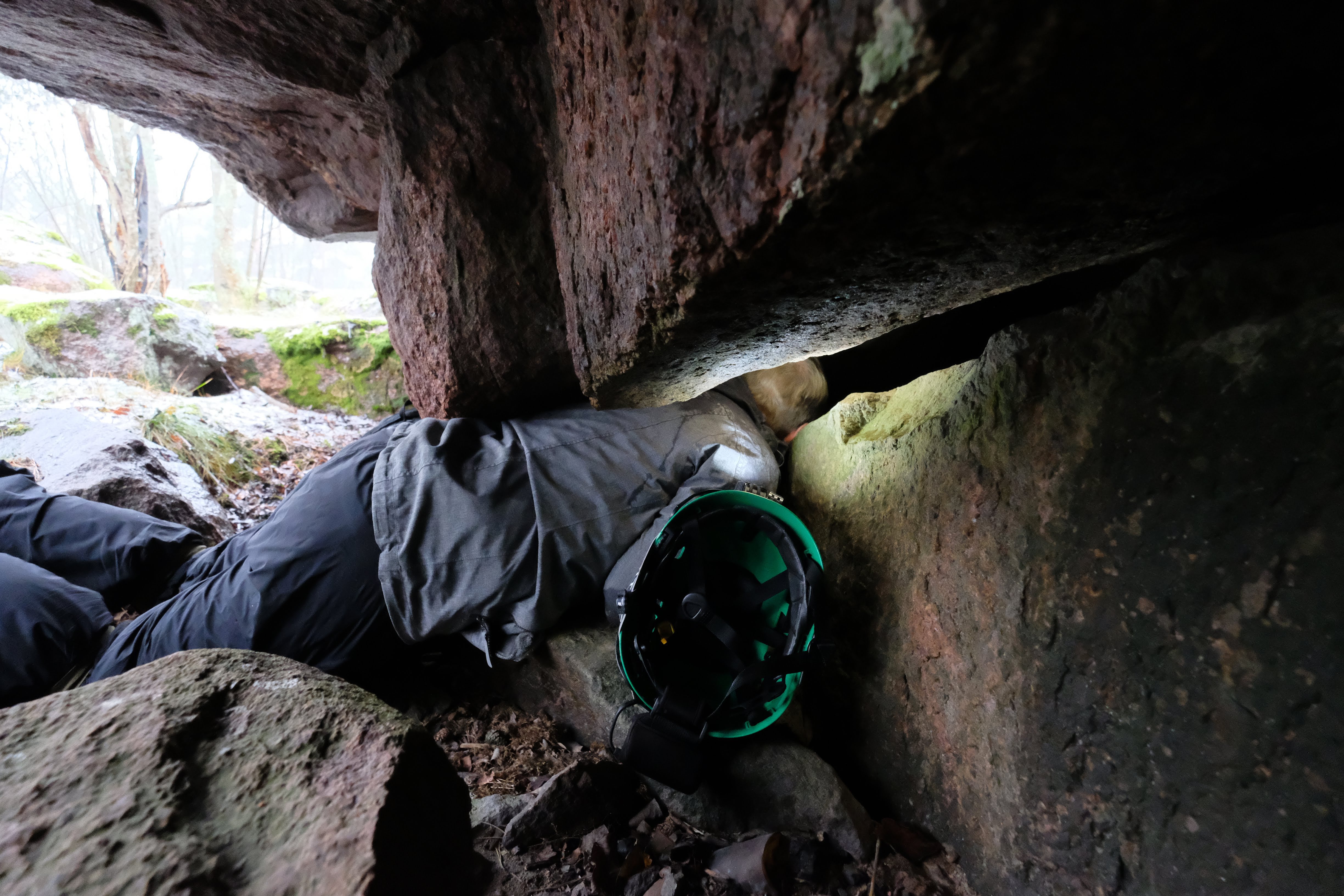 There's an odd passageway also under the blocks to the trench 3-4 meters away on the other side of the big rock roof. It could be natural crack, or the result of explosions when dealing with the rock. But it most likely isn't intentional passageway, because it is tiny, around 21cm at the widest point. We didn't think soldiers would have been able to use that, at least not with gear or in a hurry...
