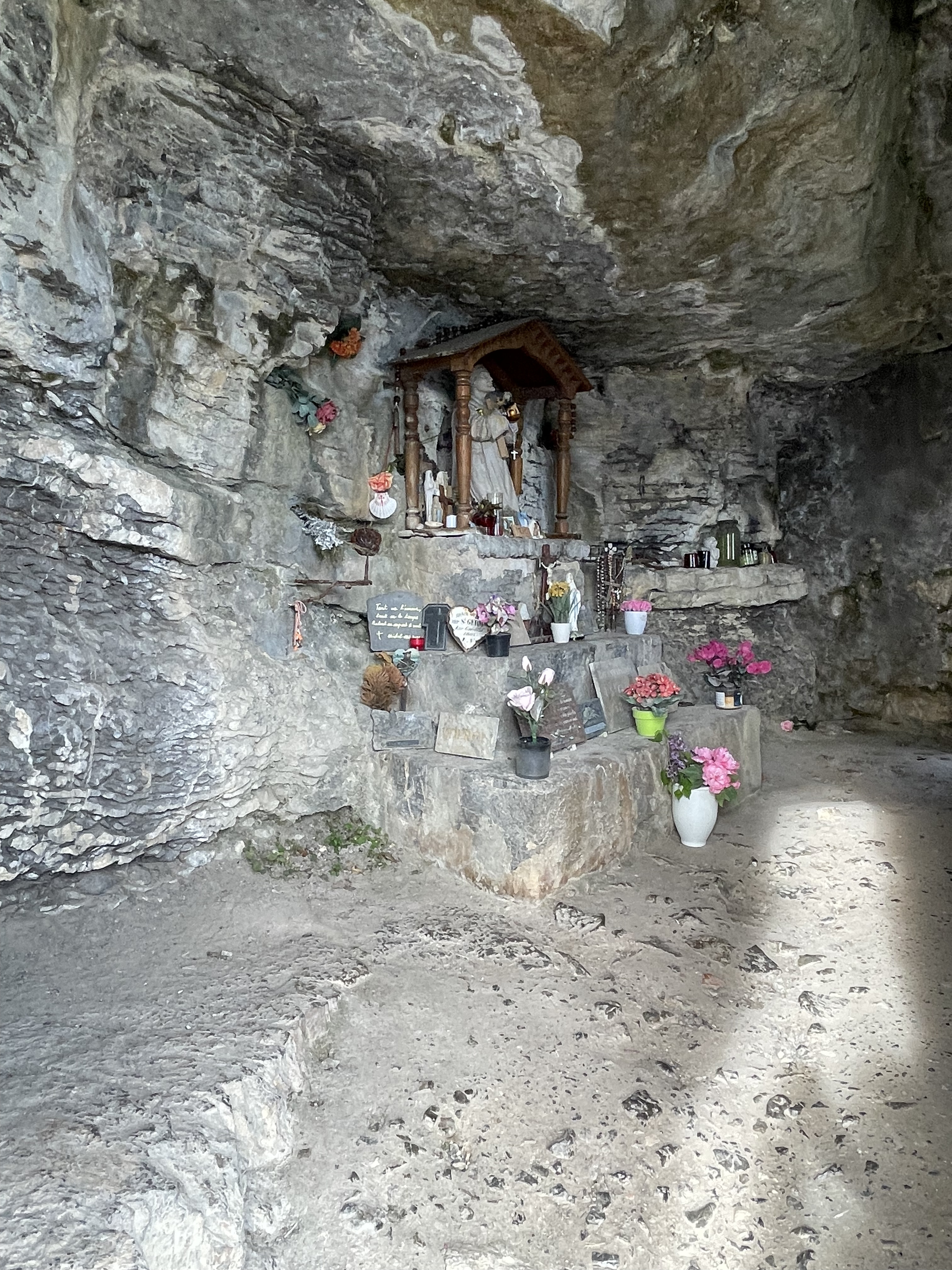 The next cave was Grotte de l'Ermitage, the one under the church. It is also in Talloires-Montmin, coordinates N 45.841974 E 6.222744.