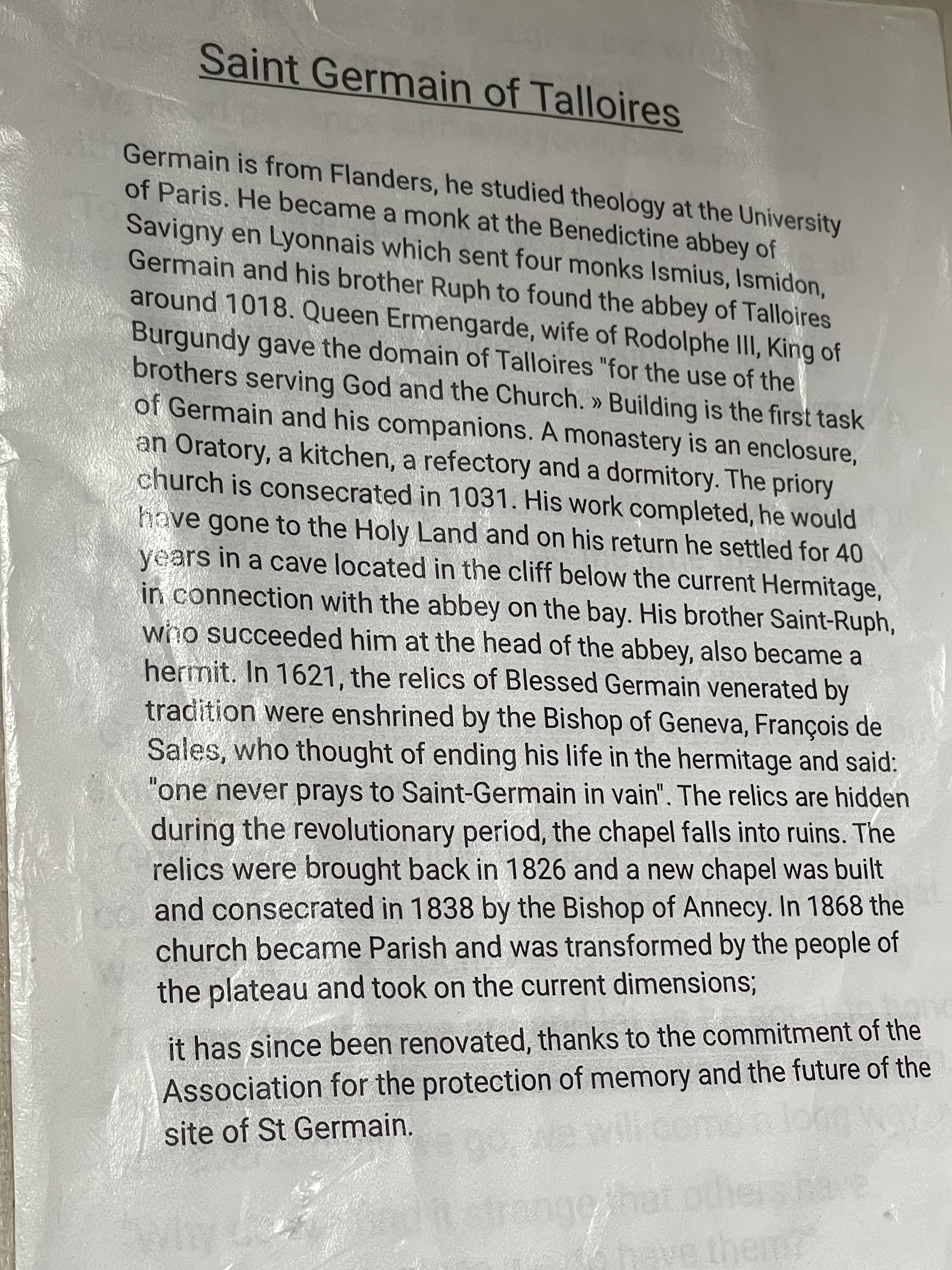 Saint Hermain, the founder of the church, lived as a hermit in this solitary spot for the last forty years of his life. The site has been visited by pilgrims for a thousand years.