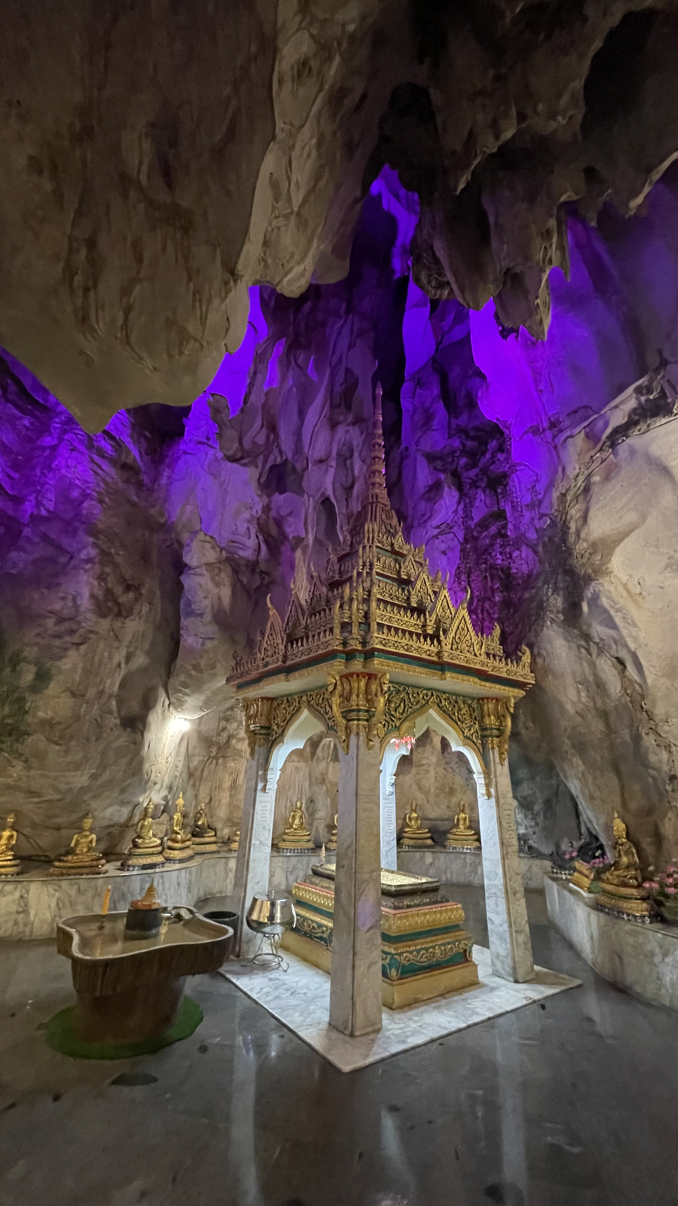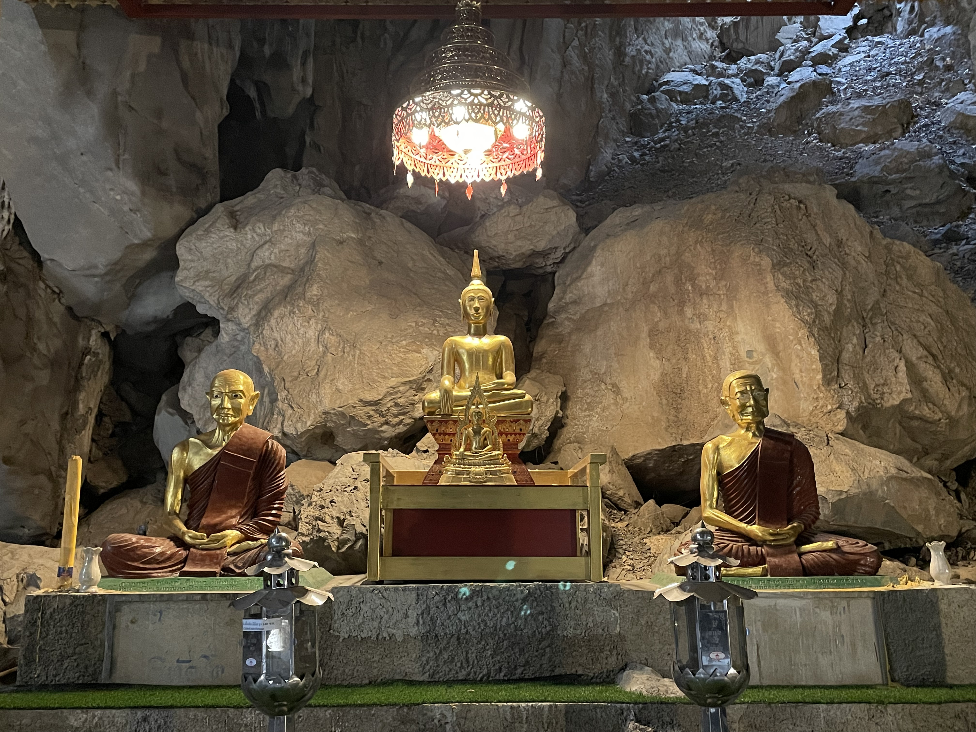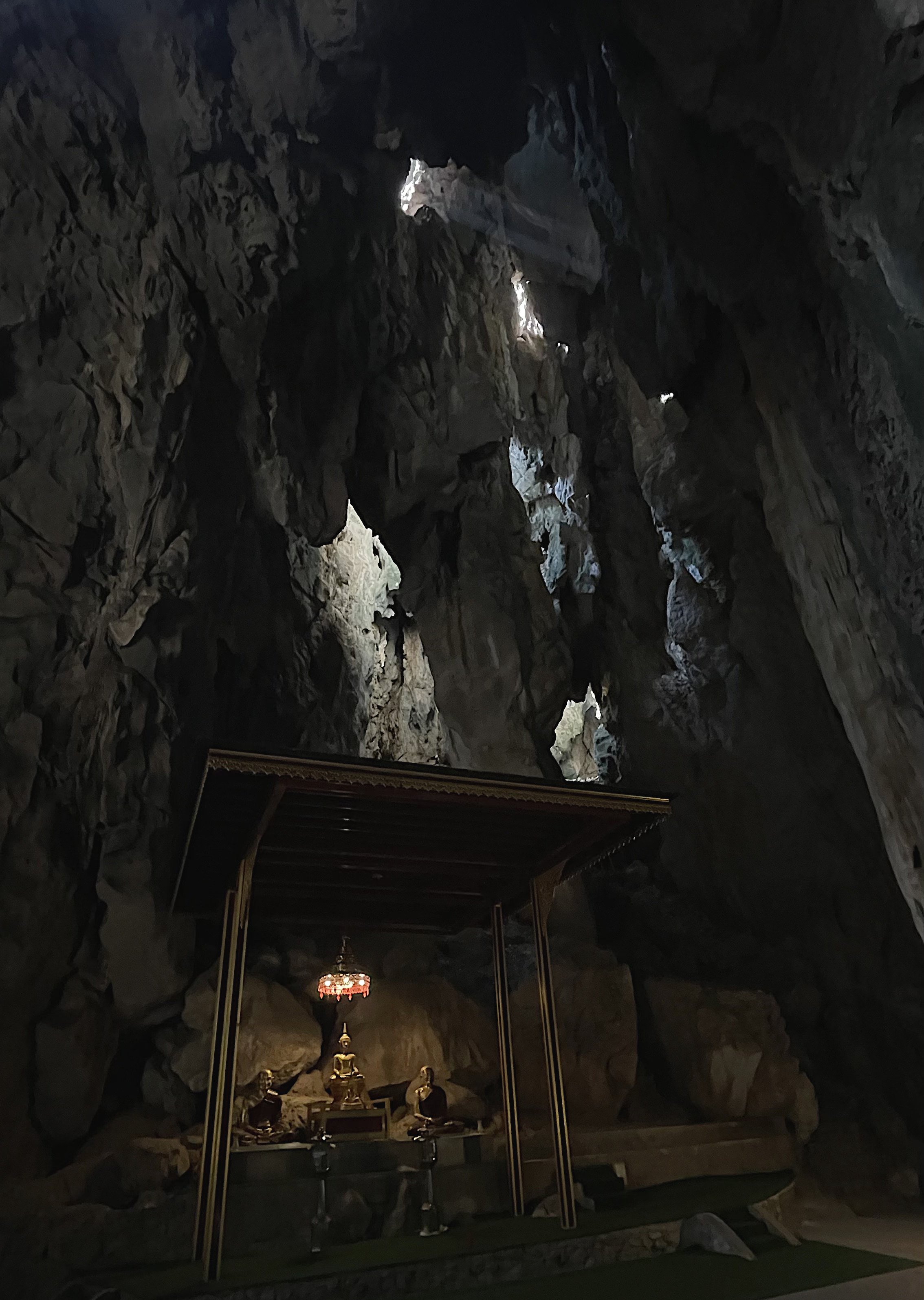 A day off on a conference trip in Bangkok. I've already skied here some years ago (in an indoor ski simulator), so what's left? Caves, of course. Caves. Hours spent in front of Google Maps and DuckDuckGo reveal though that there's nothing in Bangkok or even in the outskirts. I'll have to go further. The absolutely best and most interesting caves would be out of my reach, would require driving for five hours or even flying. But, the Ratchaburi region does offer many interesting caves, and it is only a two and a half hour drive away. I hire a driver for the day and off we go! What we find, though, is quite surprising. It turns out that half of the caves are housing buddhist temples, and even the other half has a shrine or statue or a place of quieting down.