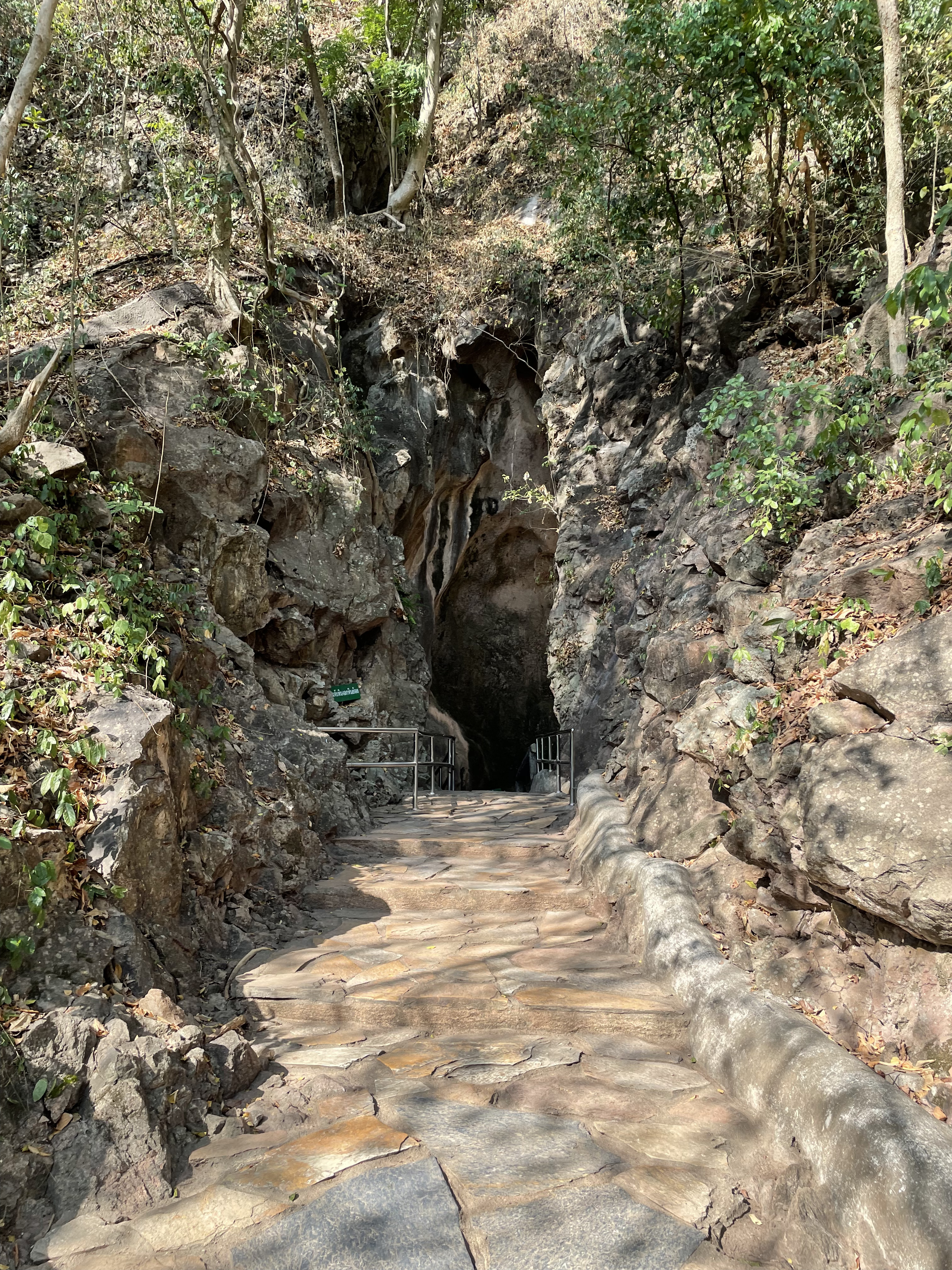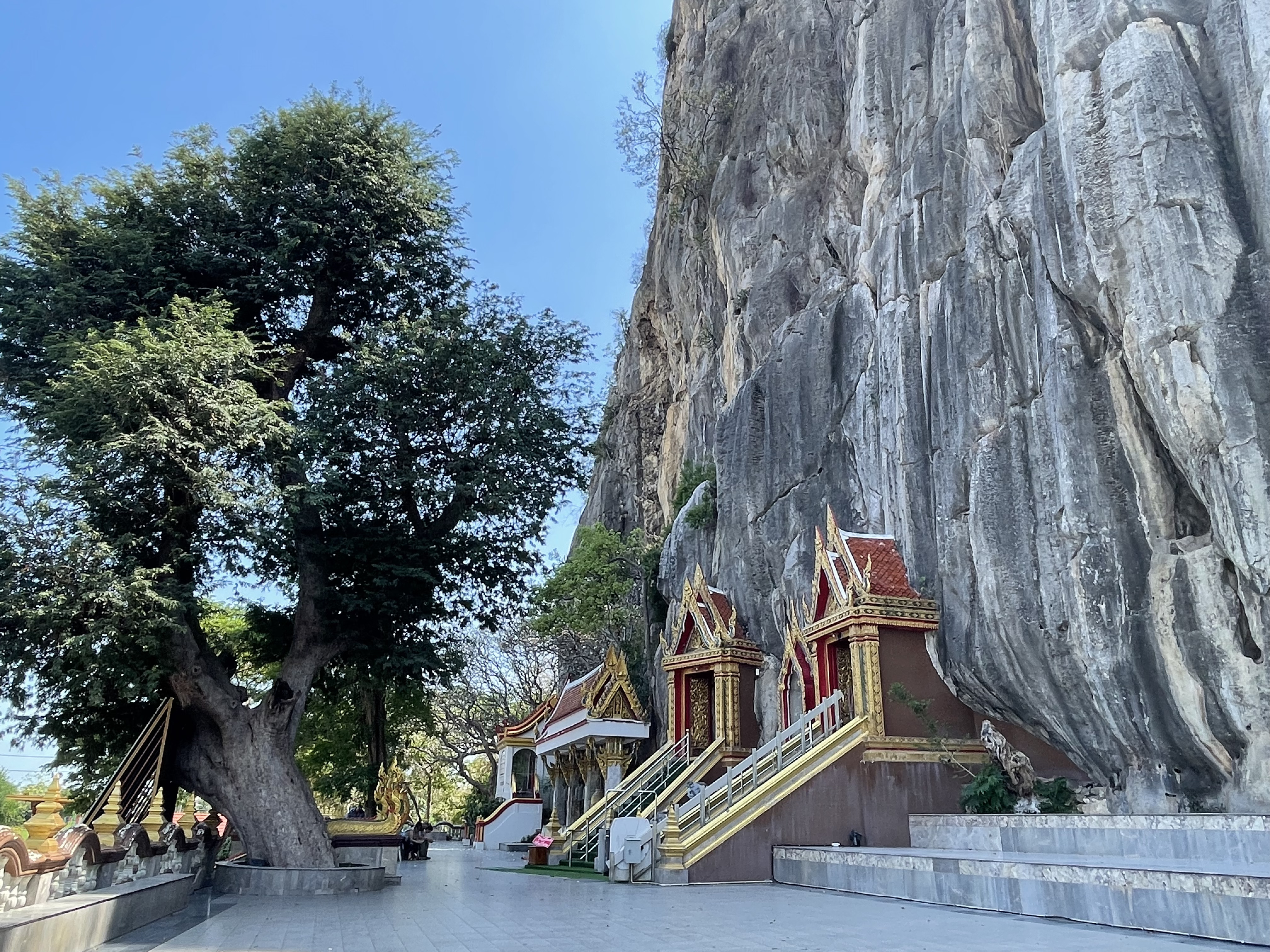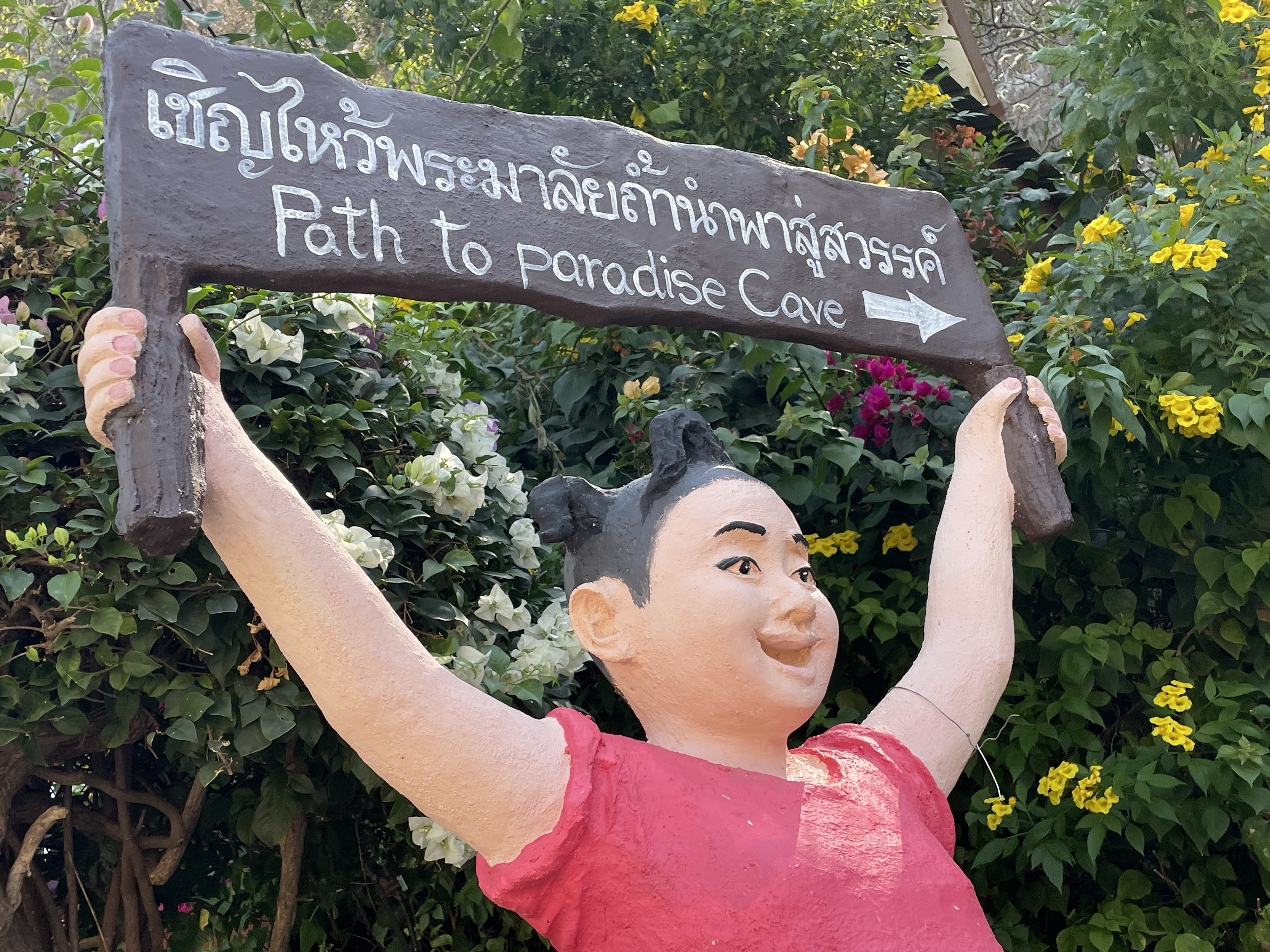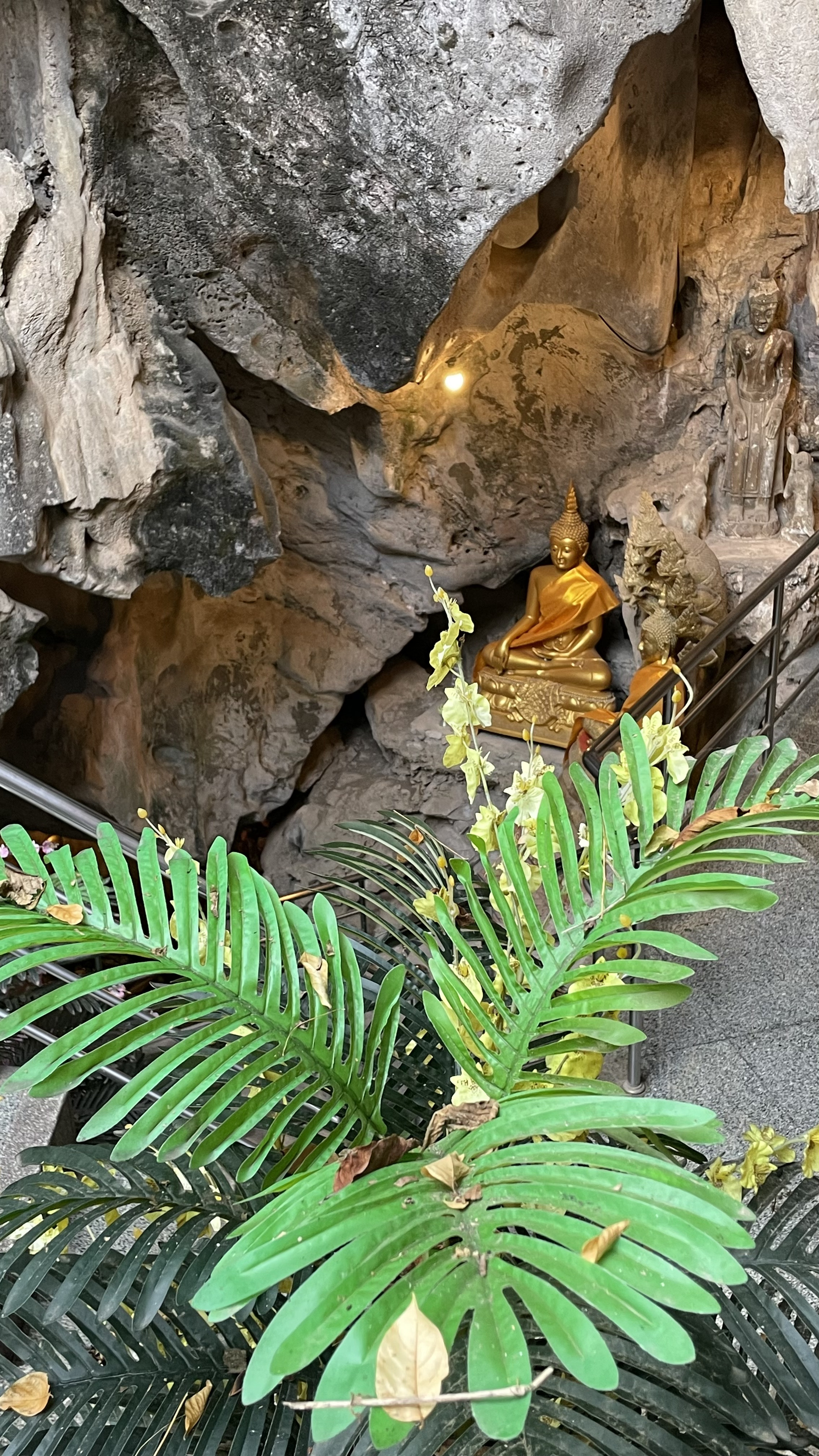 A day off on a conference trip in Bangkok. I've already skied here some years ago (in an indoor ski simulator), so what's left? Caves, of course. Caves. Hours spent in front of Google Maps and DuckDuckGo reveal though that there's nothing in Bangkok or even in the outskirts. I'll have to go further. The absolutely best and most interesting caves would be out of my reach, would require driving for five hours or even flying. But, the Ratchaburi region does offer many interesting caves, and it is only a two and a half hour drive away. I hire a driver for the day and off we go! What we find, though, is quite surprising. It turns out that half of the caves are housing buddhist temples, and even the other half has a shrine or statue or a place of quieting down.