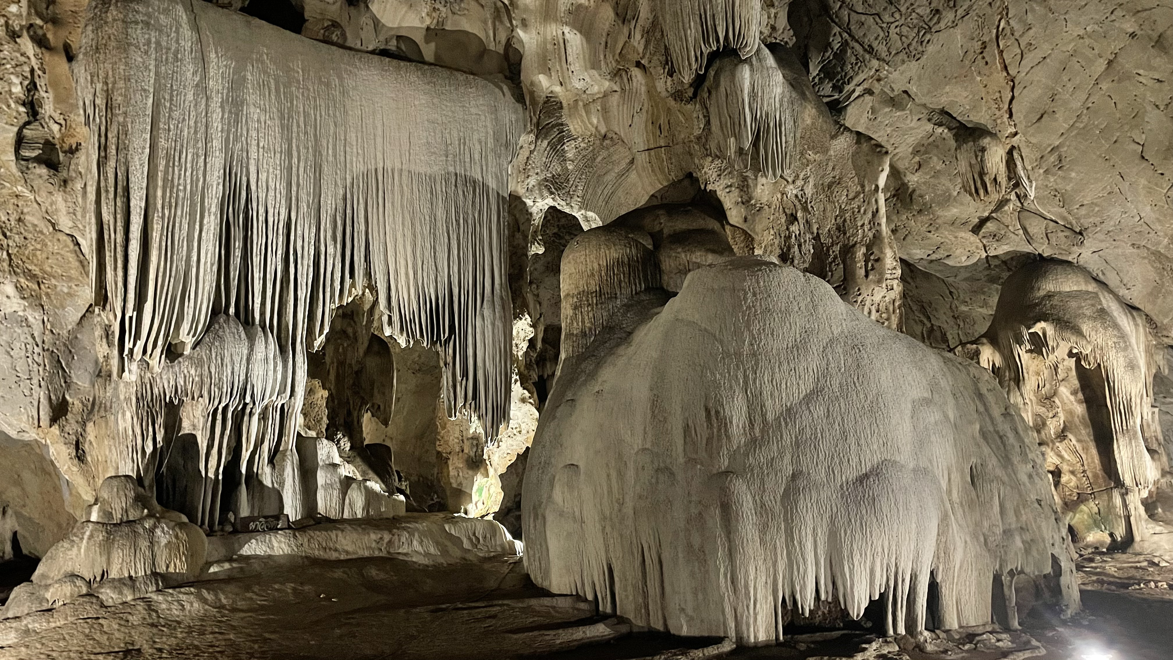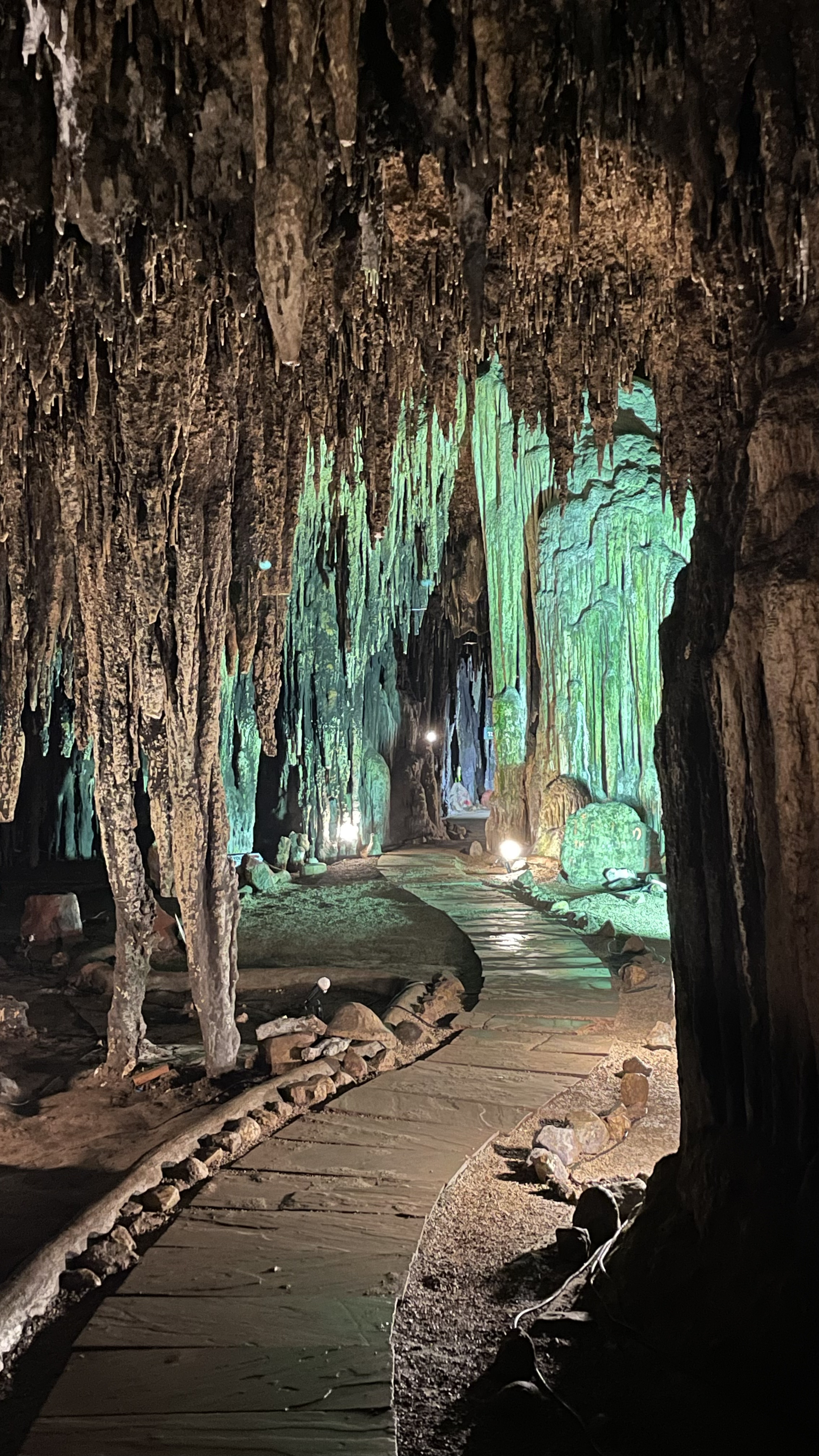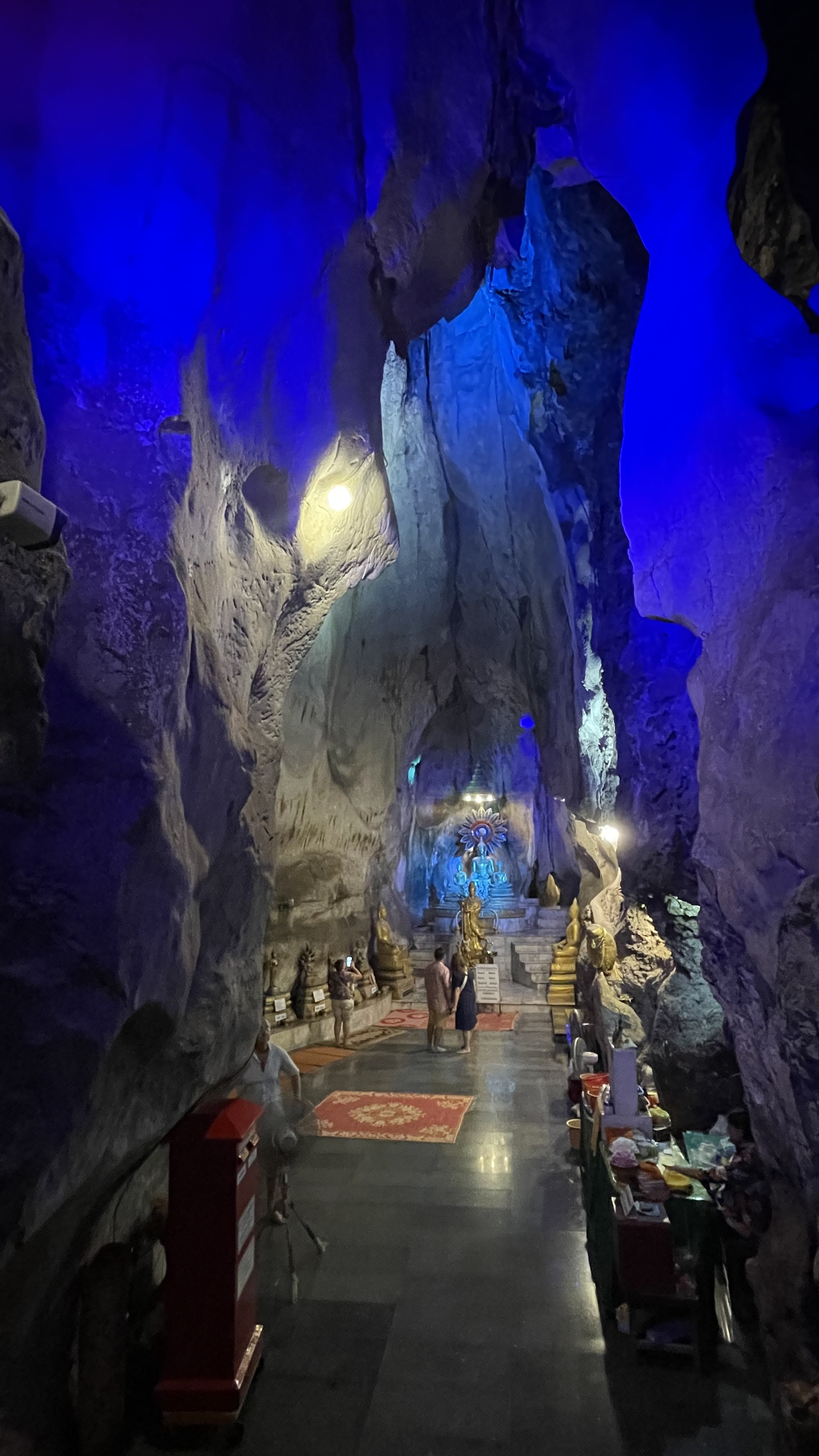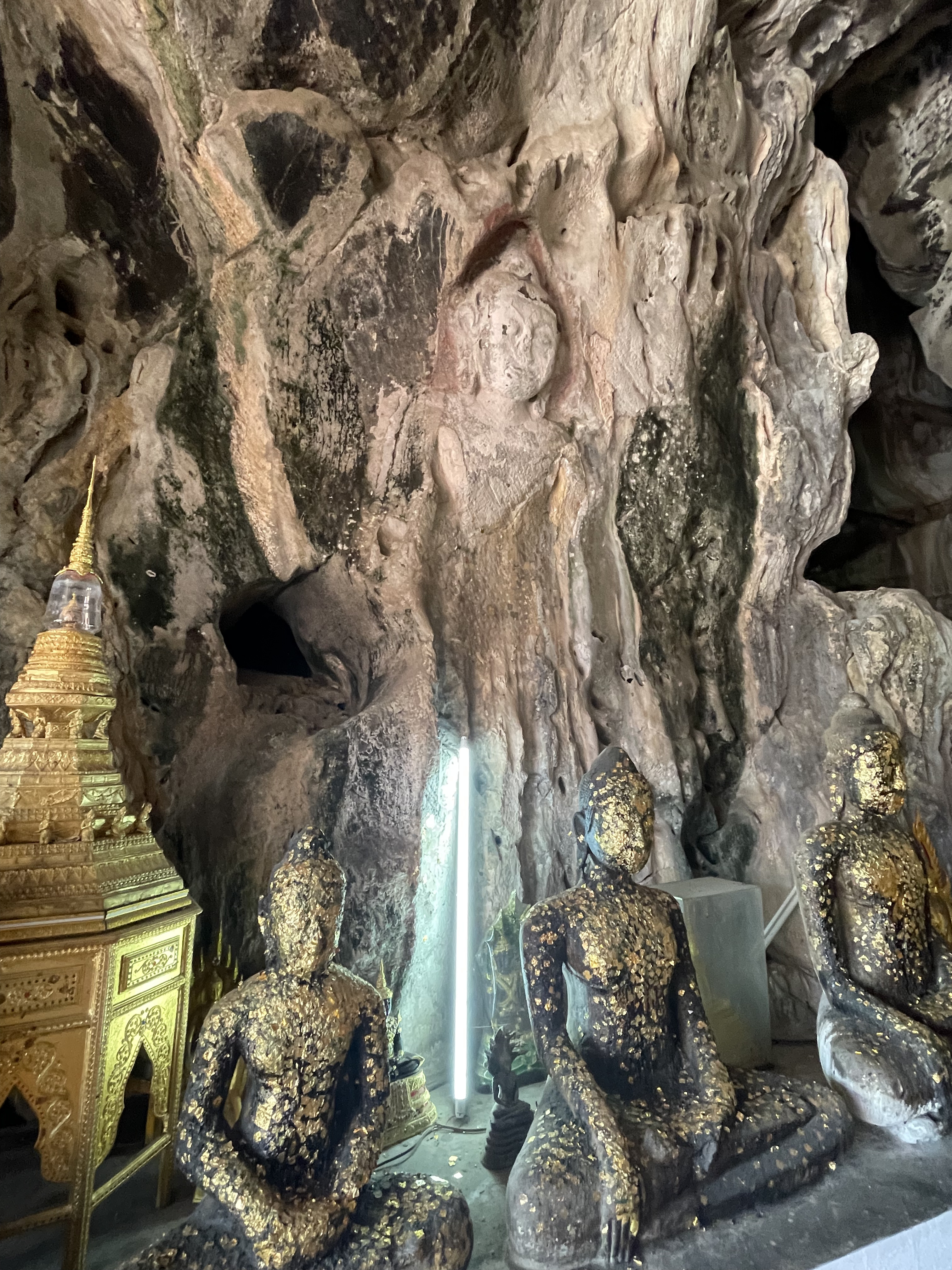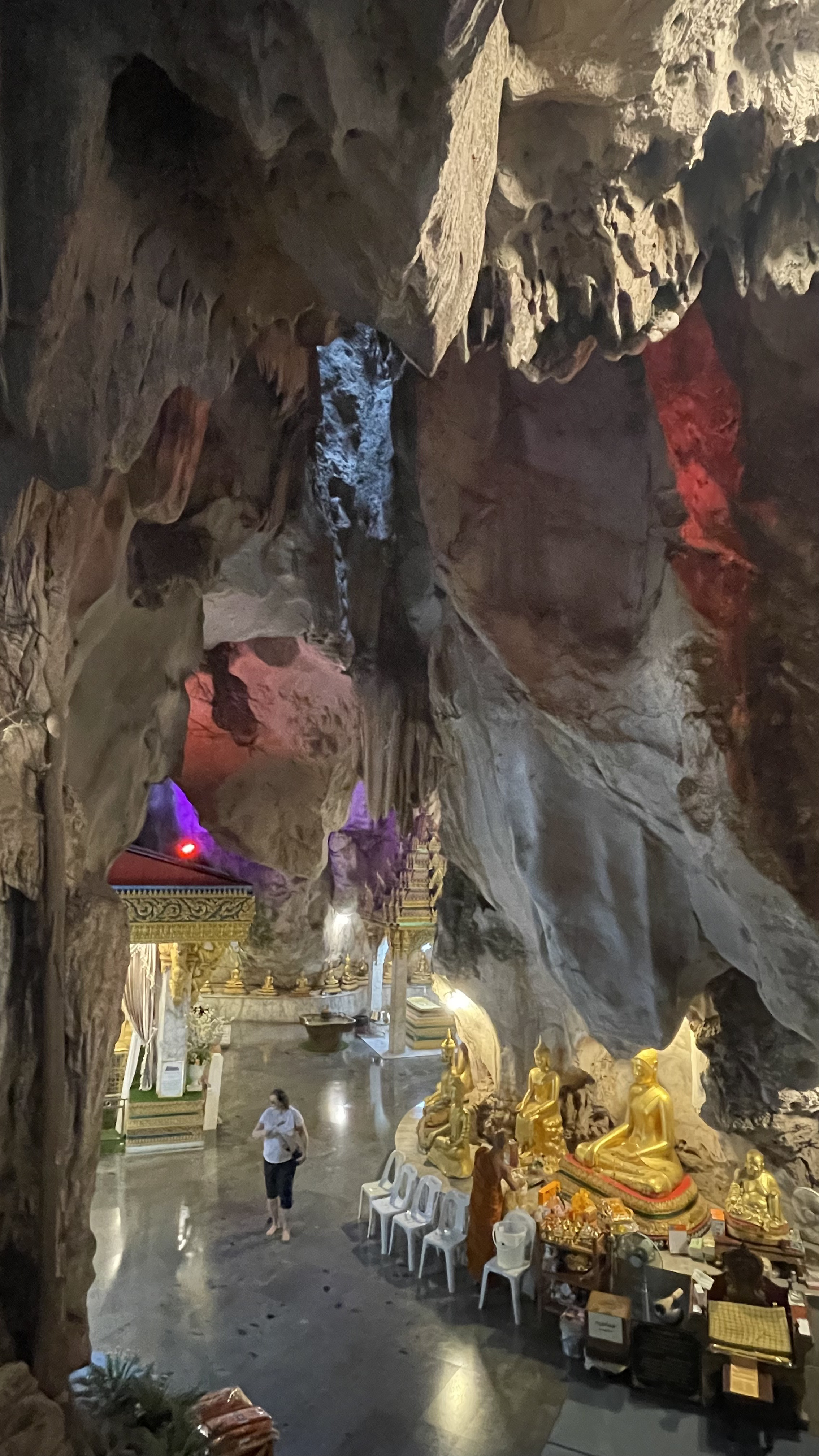 I manage to visit five caves: one commercial show cave, two wild caves but with prepared steps, signage, and even lights in the cave (and buddha statues), and two temples that are built inside caves.