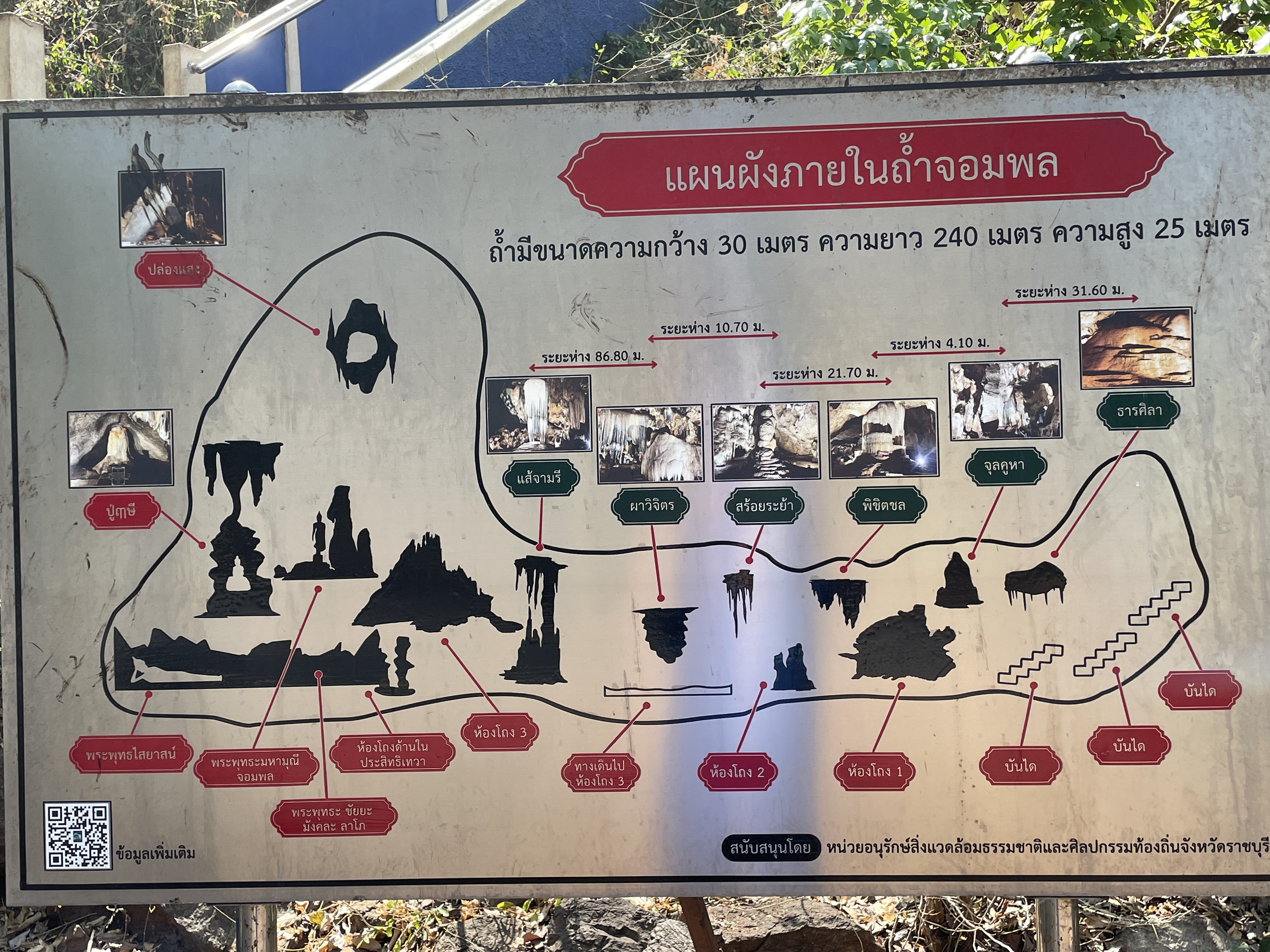 More information about this cave can be found again from the earlier Ratchaburi links as well as from a Reddit thread, Wikidata and Vivutravel, The cave length according to Patrick Le Petit is 290 m.