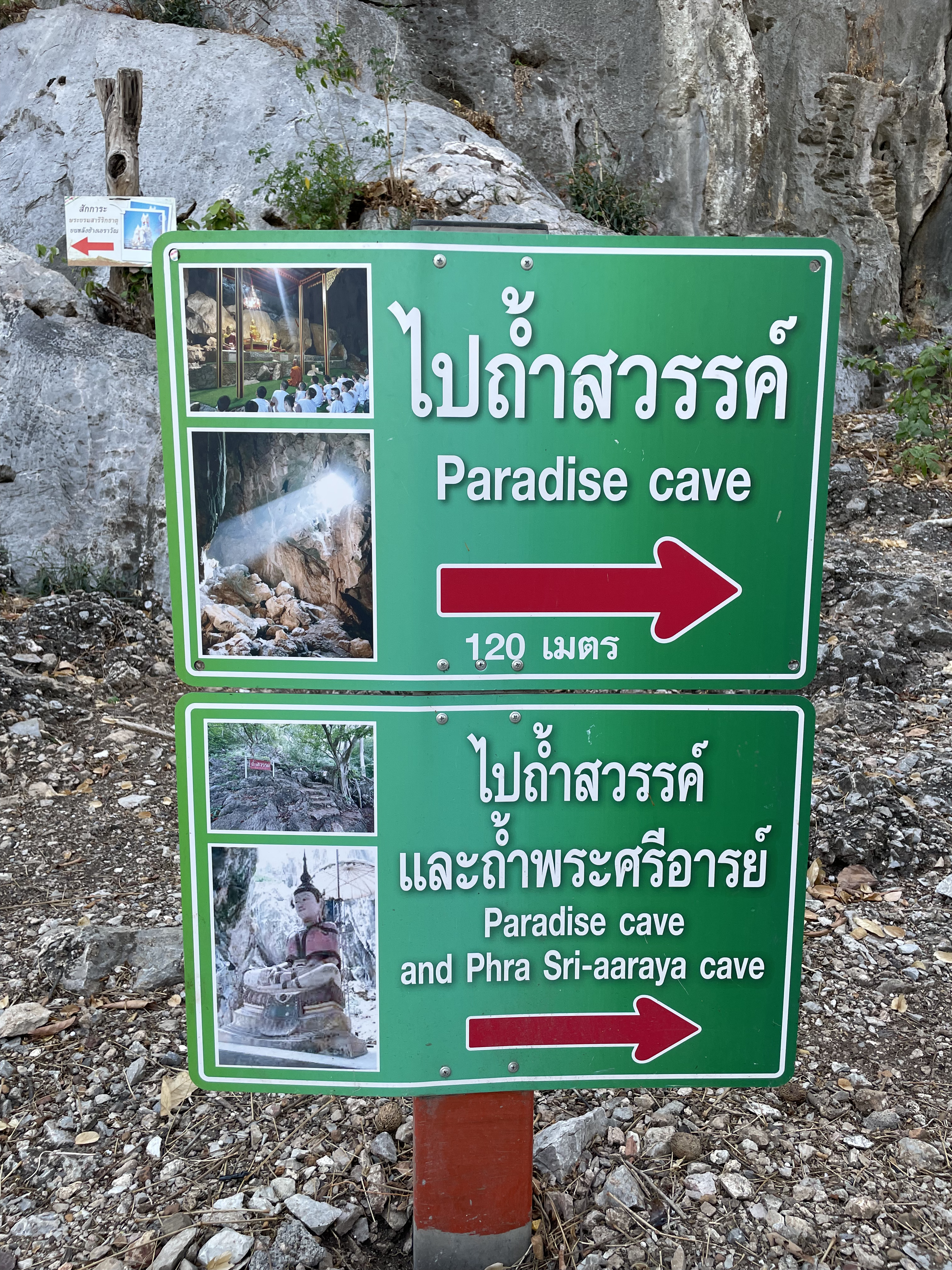 As you can see from the sign picture few further further down, there's supposed to be another cave, Phra Sri-aaraya Cave, here as well. It would have been beyond my stop on the hike to Paradise Cave, I had to return and not continue due to lack of time. But I can't find much information about that cave, except a Google Maps entry that seems to be in a wrong place, not according to the signage on site.