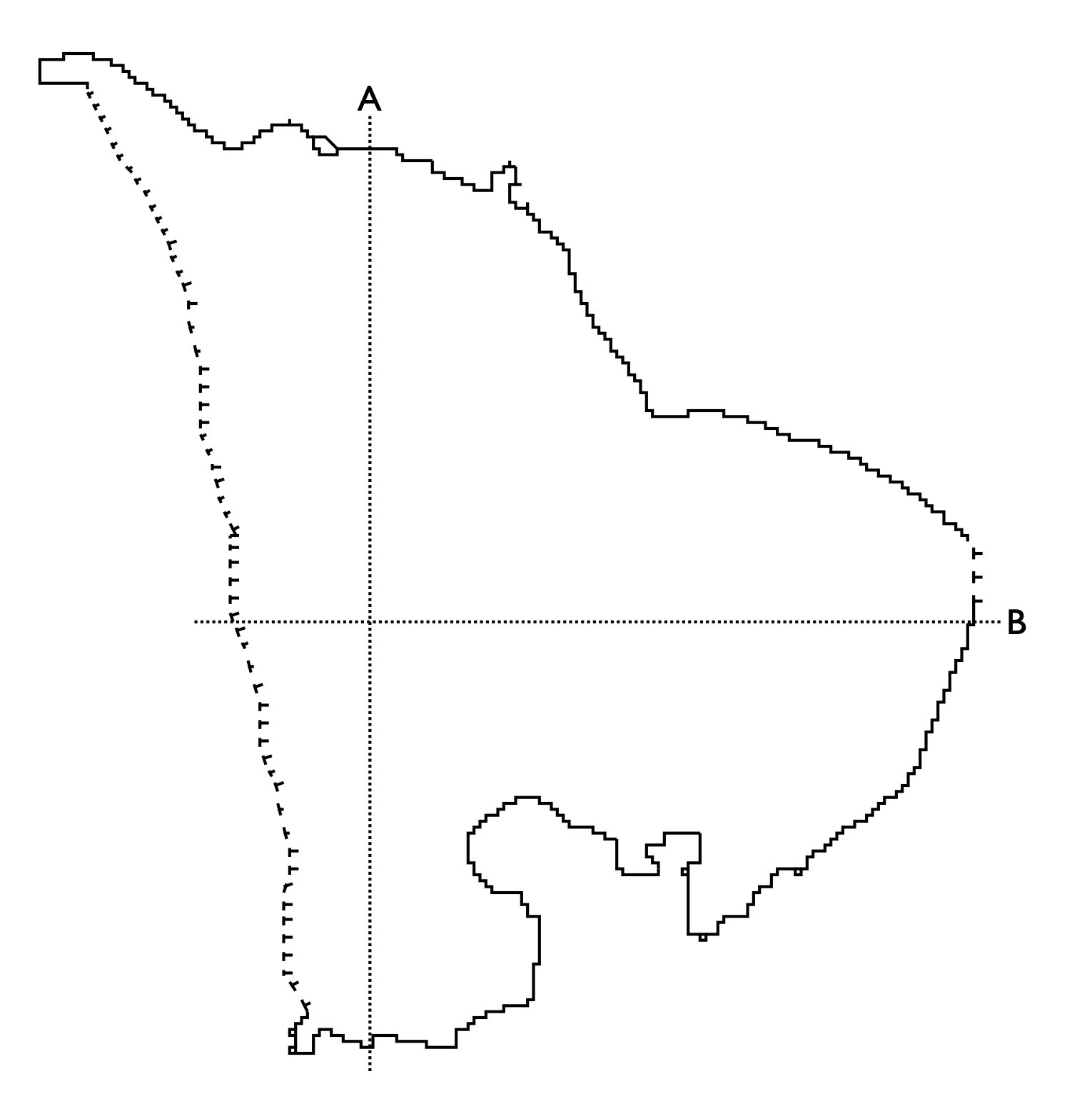 My Cave Outliner software (link) also produced a map of the cave based on the scanned model:
