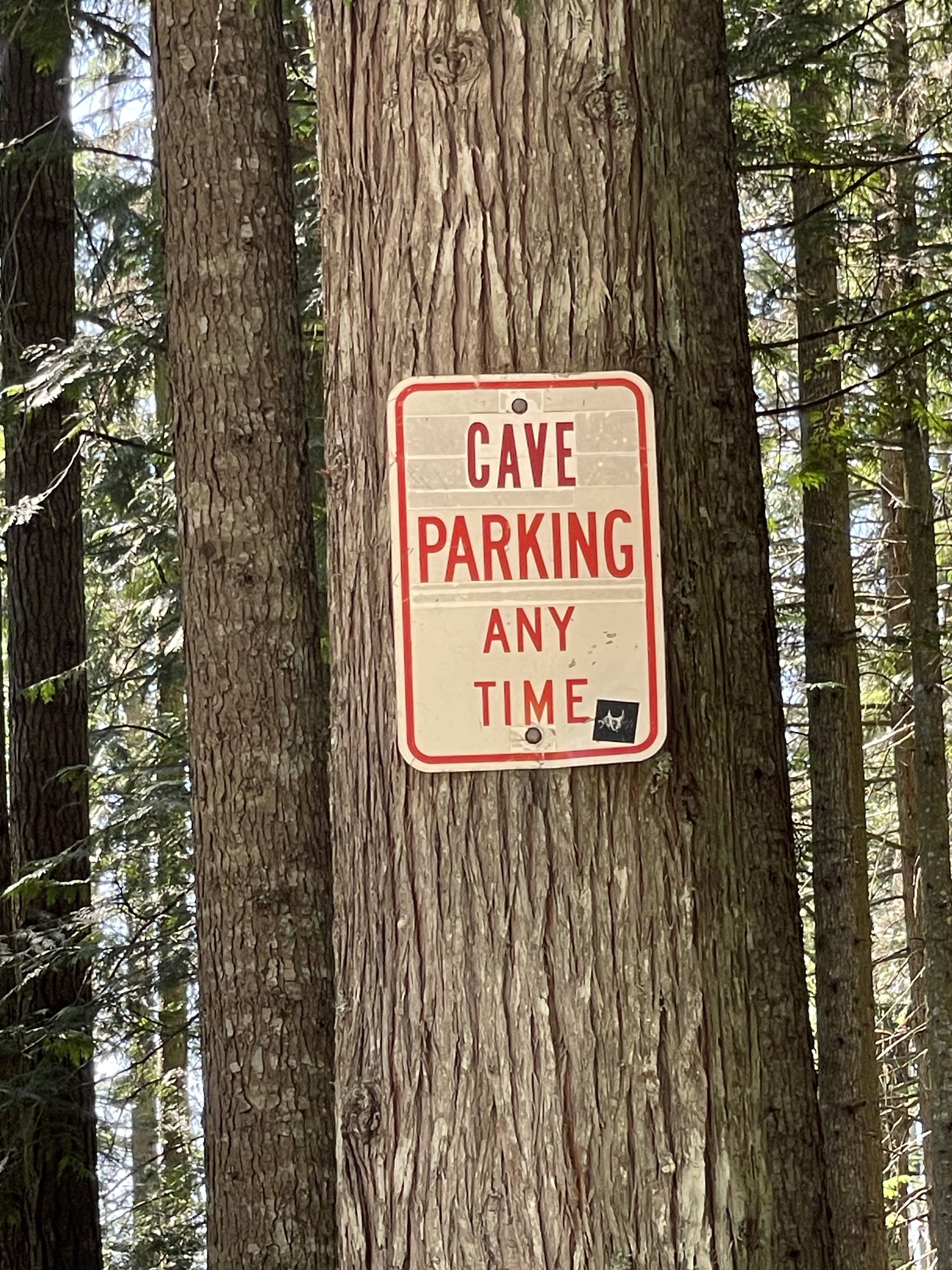 Chipmunk caves area photos are below. Here you can see how well the parking was marked! But again, it was impossible for me to find the caves. Thick forest, beautiful forest, beautiful river, but ... no cave.