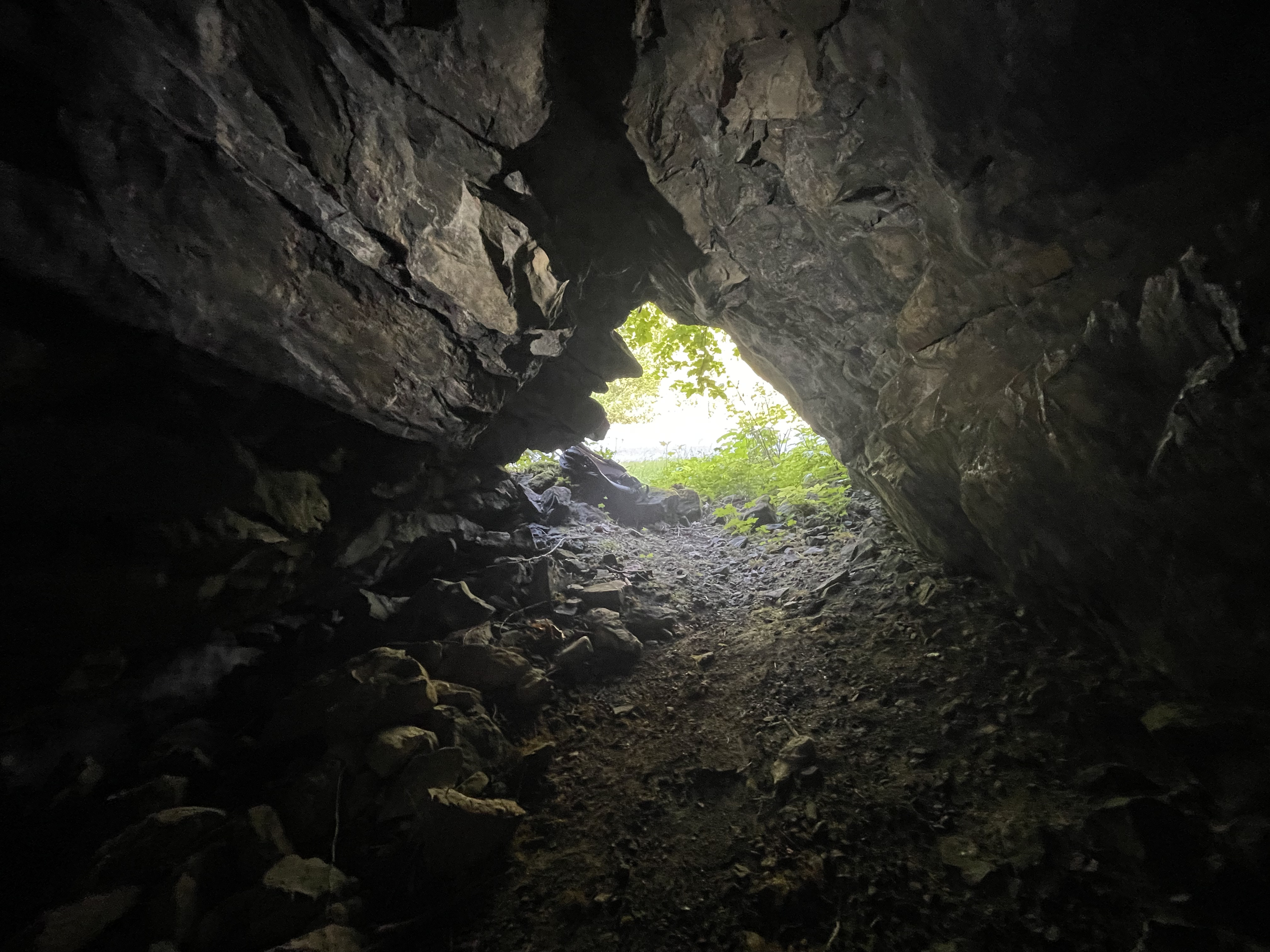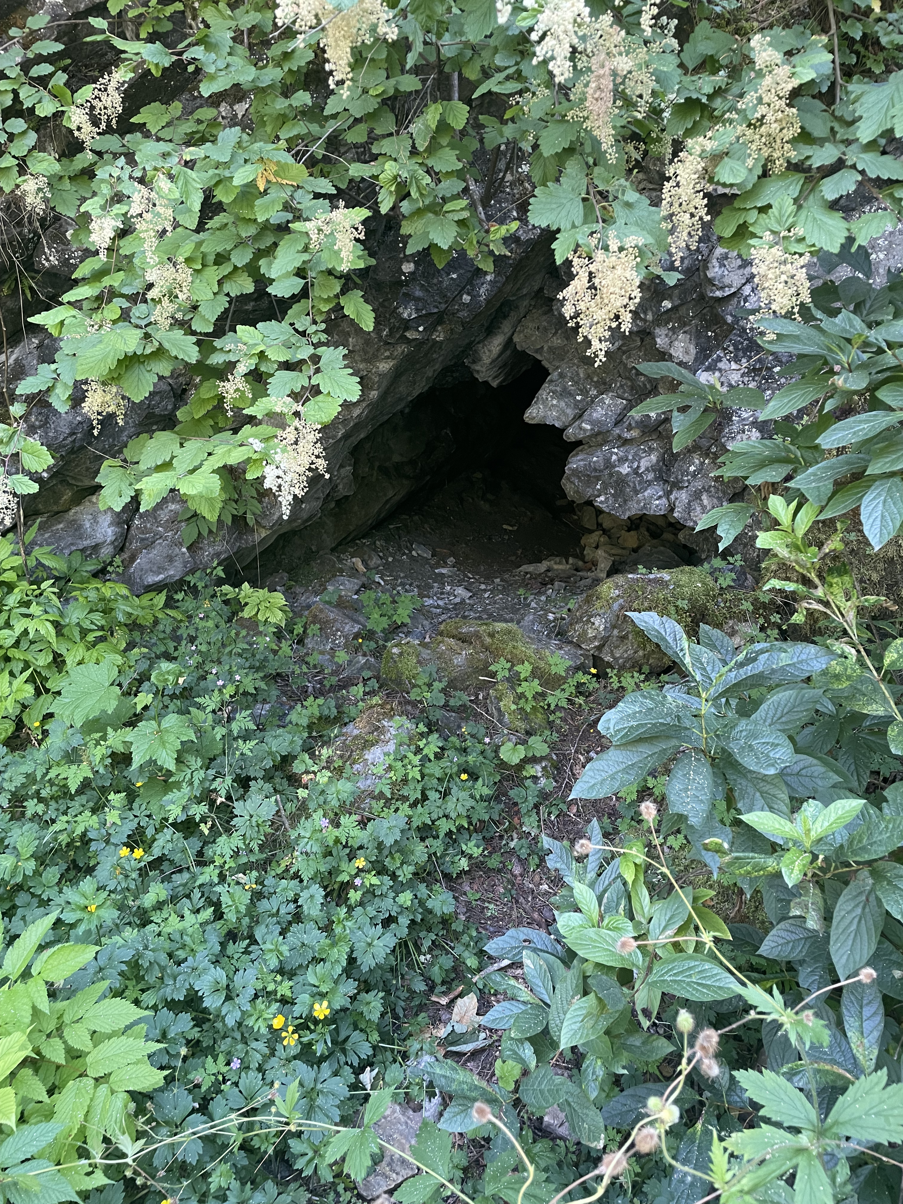 But later I learned that there's a bigger cave about 100 meters higher up the steep hill/cliff, according to this link (BrmpMaps) and this discussion (ClubTread). Sad, but on the other hand I would not have had time or energy to climb much that day, and it isn't clear there's a way up easily.